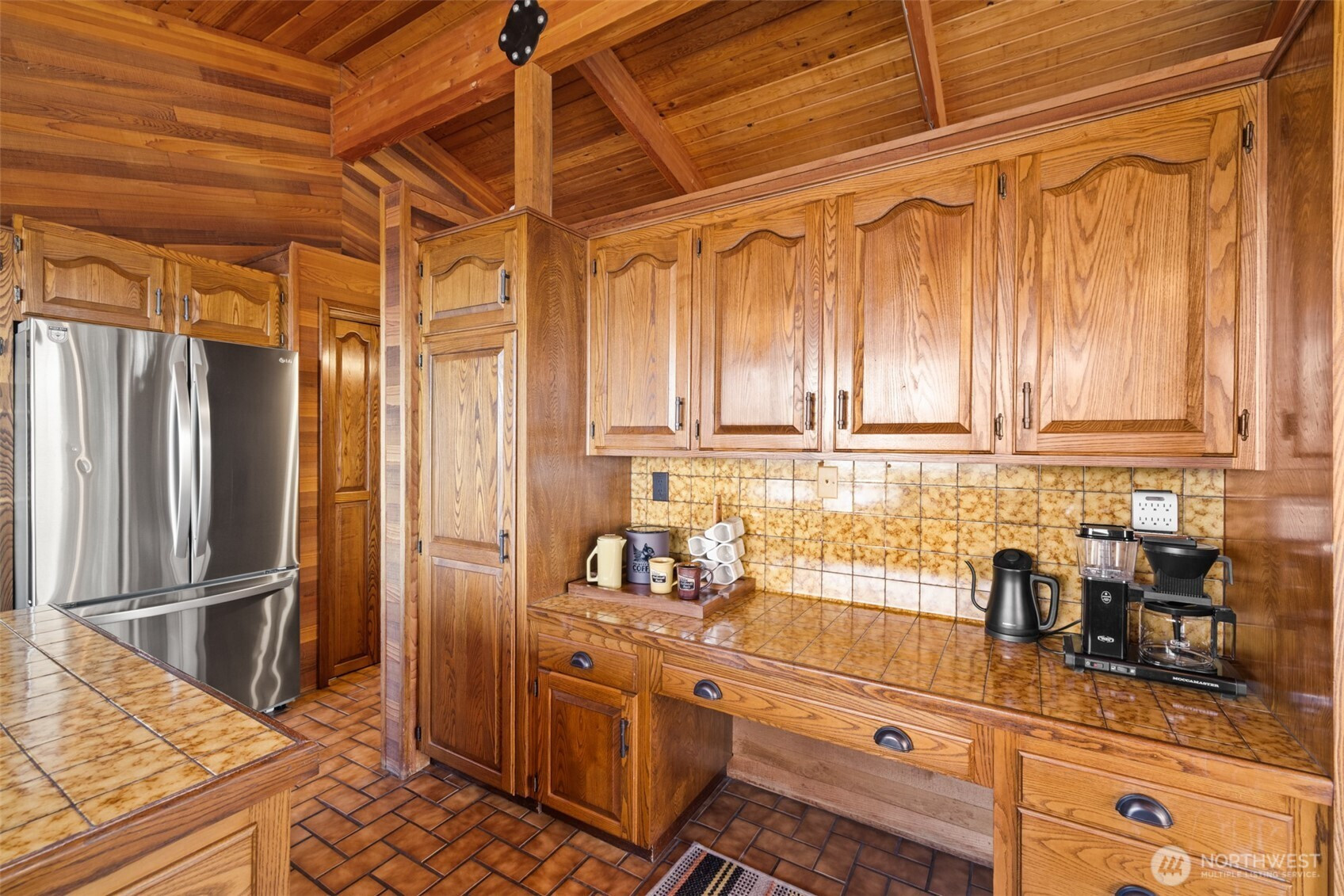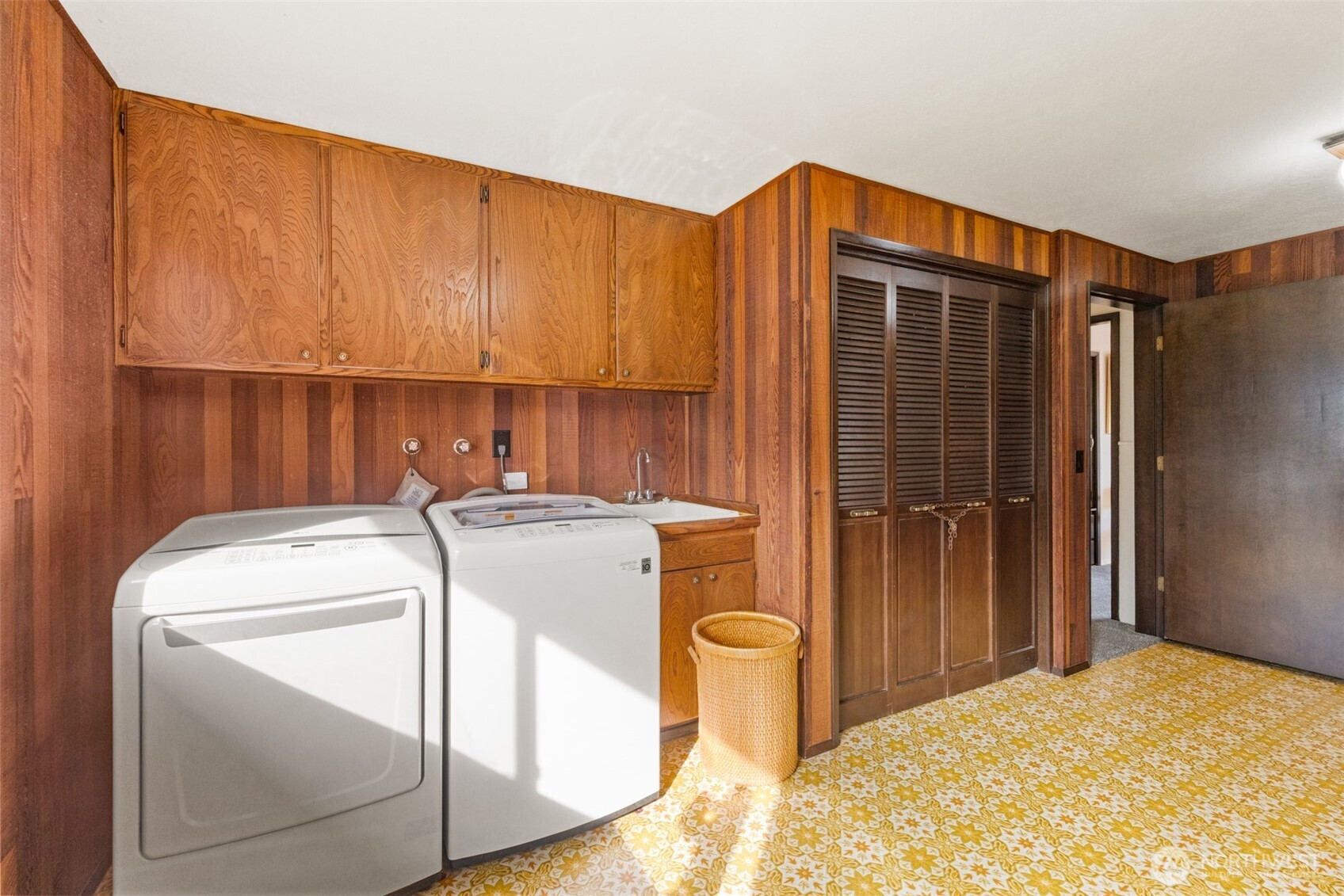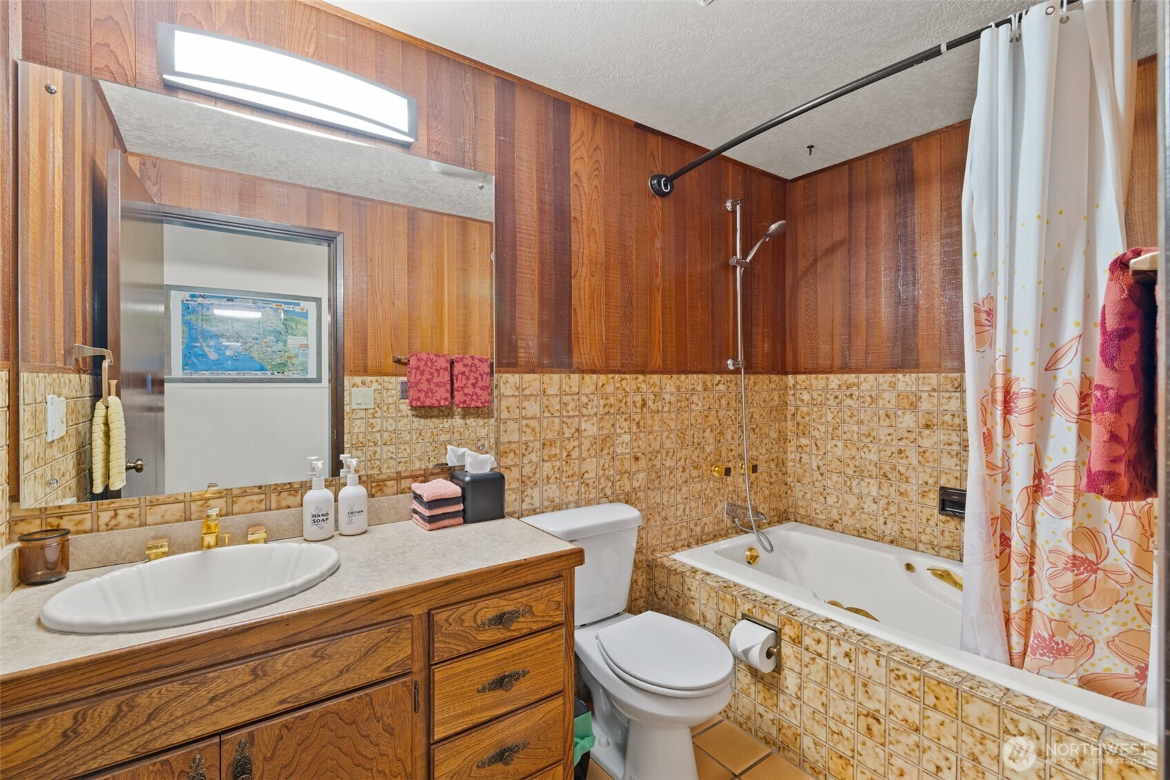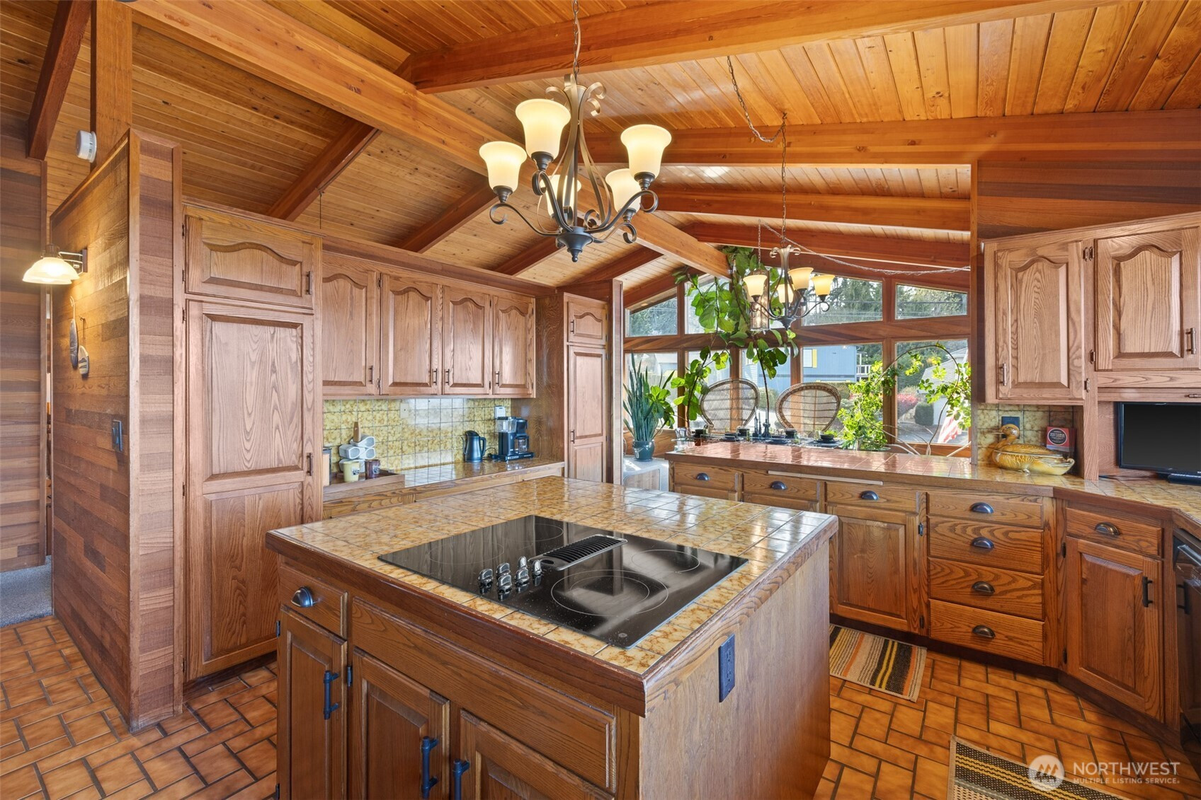 Experience a rare intersection of 1970s contemporary architecture and Pacific Northwest natural beauty. This DelGuzzi-built legacy home, located in the highly desirable Cresthaven neighborhood, is a meticulously preserved split-level masterpiece that channels a sophisticated post-modern, mid-century California vibe. The journey begins with grand stairs leading to a dramatic entry. Inside, the residence reveals soaring interiors characterized by vaulted wood ceilings and rich cedar paneling. The light-filled floor plan is defined by massive windows that frame the rugged beauty of the PNW, offering a front-row seat to stunning sunrise and sunset views over the Strait of Juan de Fuca. At the heart of the home sits an original, full-wall stone fireplace, serving as a monumental focal point for the main living area. Every corner of this property reflects the intentional design and quality craftsmanship of a bygone era, kept in pristine condition for the modern connoisseur.