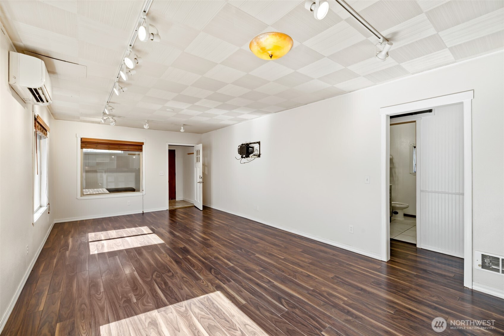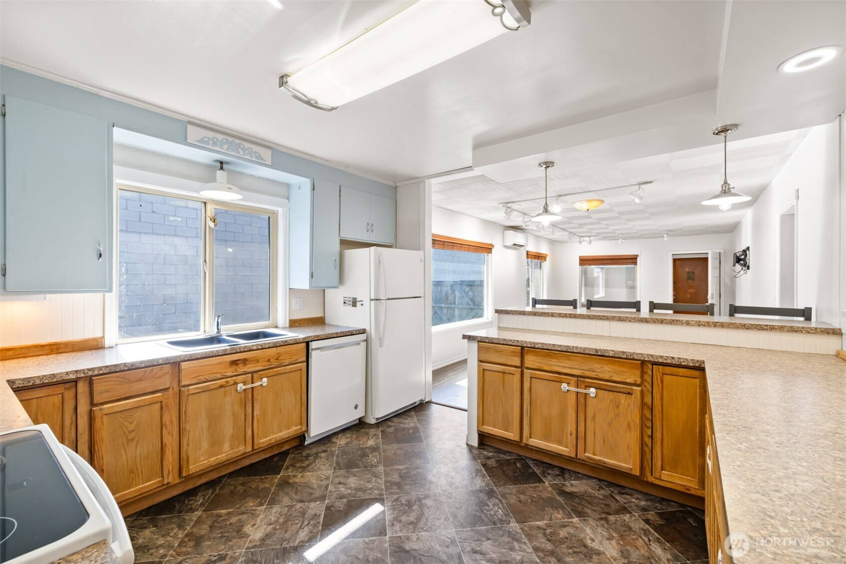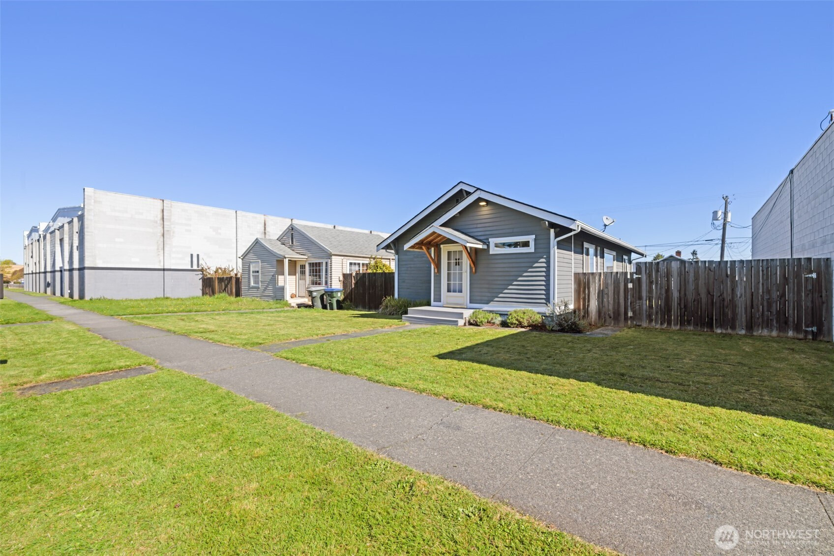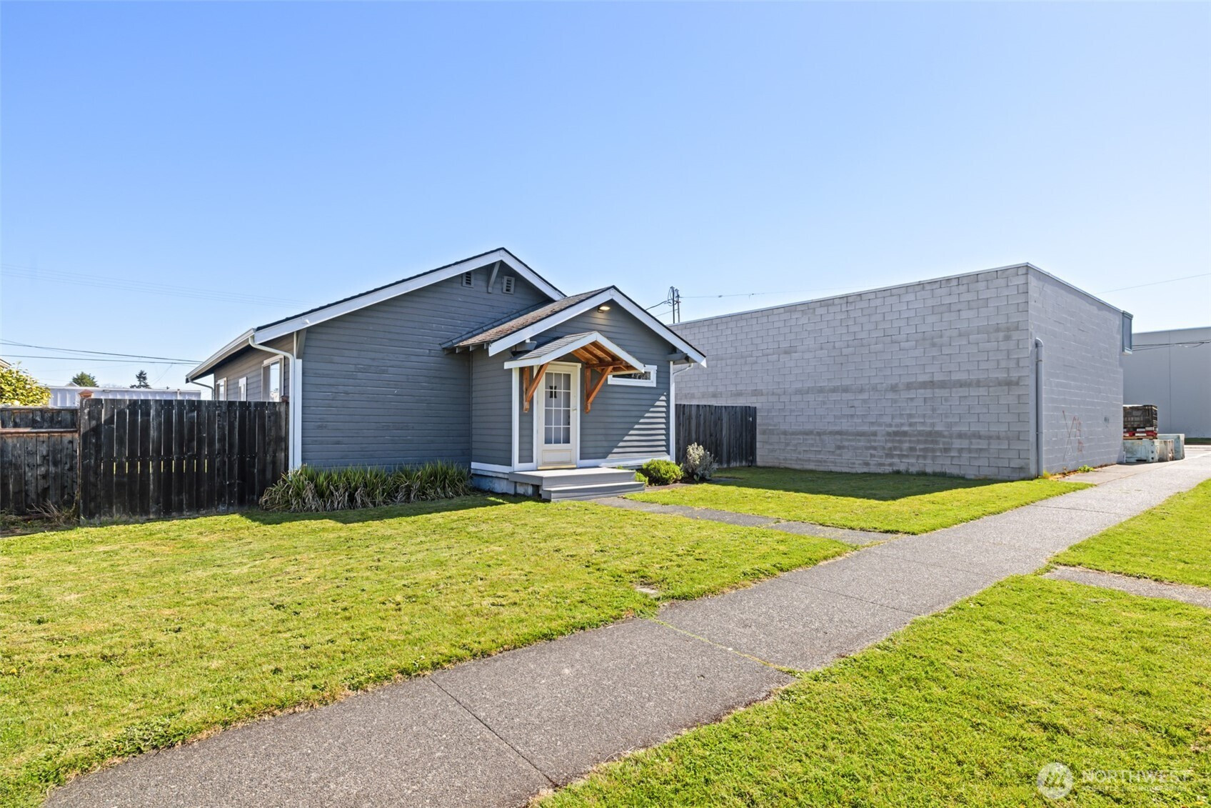 Charming, updated Craftsman in a highly convenient location! Zoned CA for added flexibility, though ideally suited for residential living, this 2BD/1BA home blends classic character with thoughtful modern upgrades. Inside, enjoy durable vinyl plank flooring, updated vinyl windows, and efficient ductless heating & cooling. The spacious kitchen features oak cabinetry, laminate counters, recessed lighting, and a peninsula with seating, perfect for everyday living and entertaining. A large mudroom/laundry/storage space adds versatility, while the remodeled bath offers a walk-in shower, tile flooring, linen storage, and stylish barn door. Both bedrooms include functional, oversized closets with organizers. Outside, a synthetic front deck and covered back porch create welcoming entry spaces. The detached garage is intentionally divided for storage and access, plus ample off-alley parking adjoining the fenced backyard. All just a short distance to the local general store, park, coffee stands, dining, and shopping!