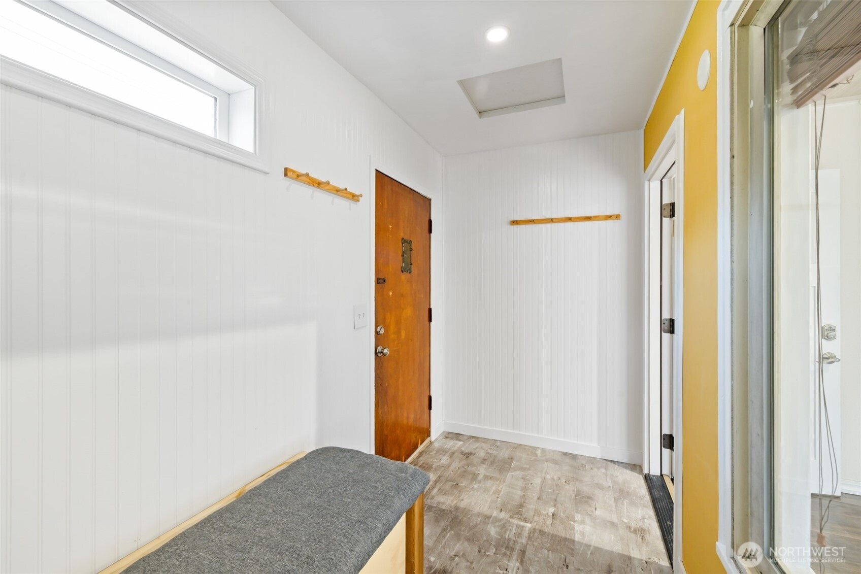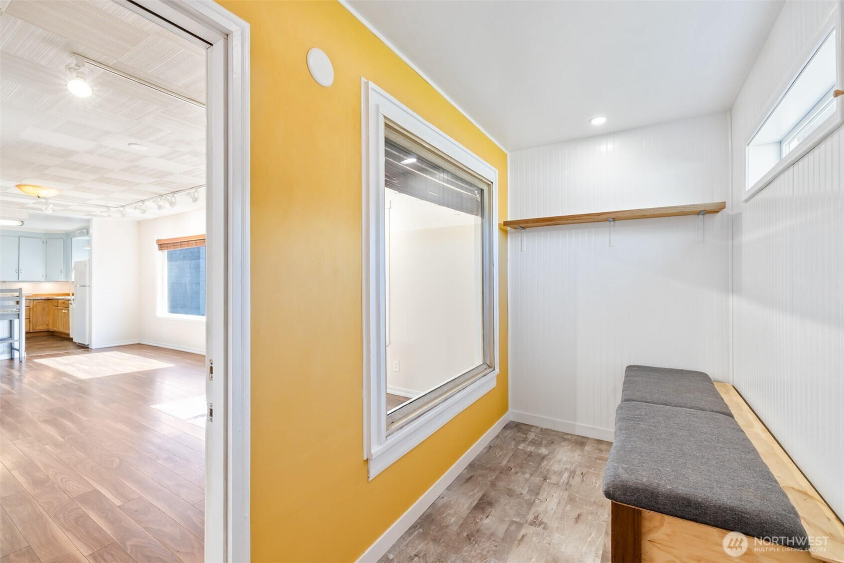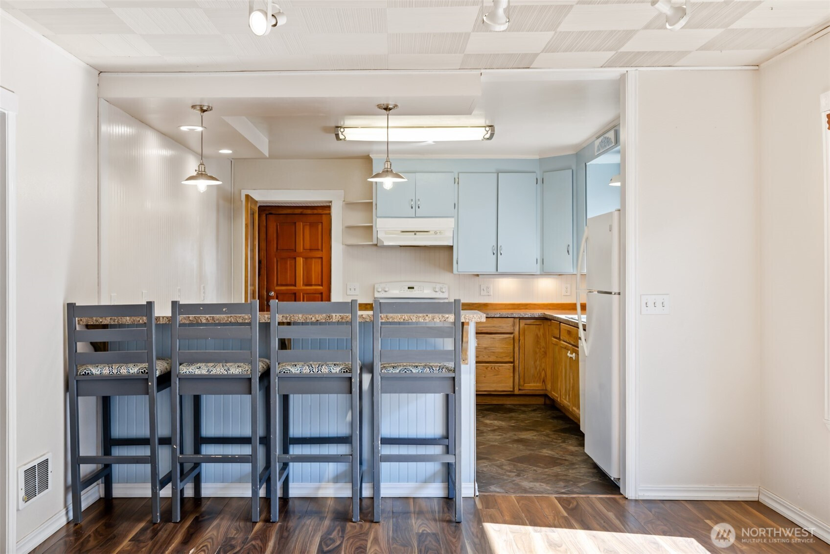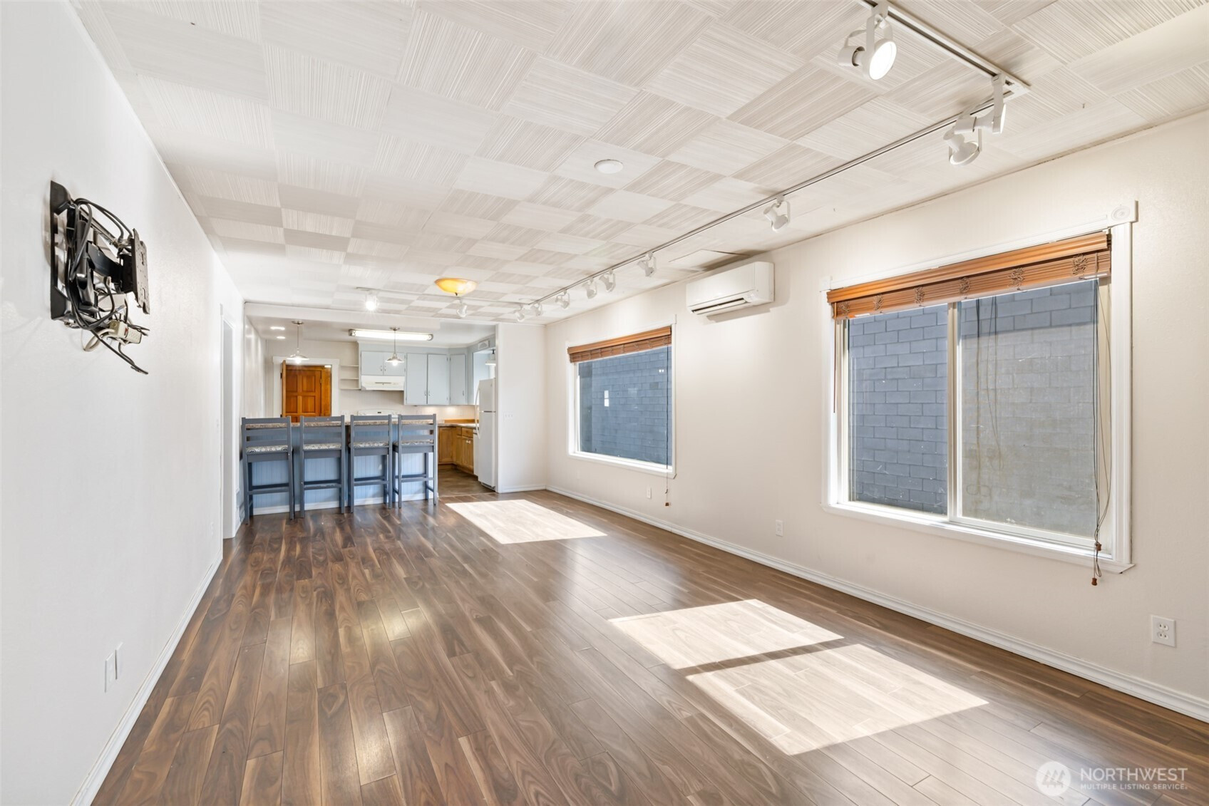 Charming, updated Craftsman in a highly convenient location! Zoned CA for added flexibility, though ideally suited for residential living, this 2BD/1BA home blends classic character with thoughtful modern upgrades. Inside, enjoy durable vinyl plank flooring, updated vinyl windows, and efficient ductless heating & cooling. The spacious kitchen features oak cabinetry, laminate counters, recessed lighting, and a peninsula with seating, perfect for everyday living and entertaining. A large mudroom/laundry/storage space adds versatility, while the remodeled bath offers a walk-in shower, tile flooring, linen storage, and stylish barn door. Both bedrooms include functional, oversized closets with organizers. Outside, a synthetic front deck and covered back porch create welcoming entry spaces. The detached garage is intentionally divided for storage and access, plus ample off-alley parking adjoining the fenced backyard. All just a short distance to the local general store, park, coffee stands, dining, and shopping!