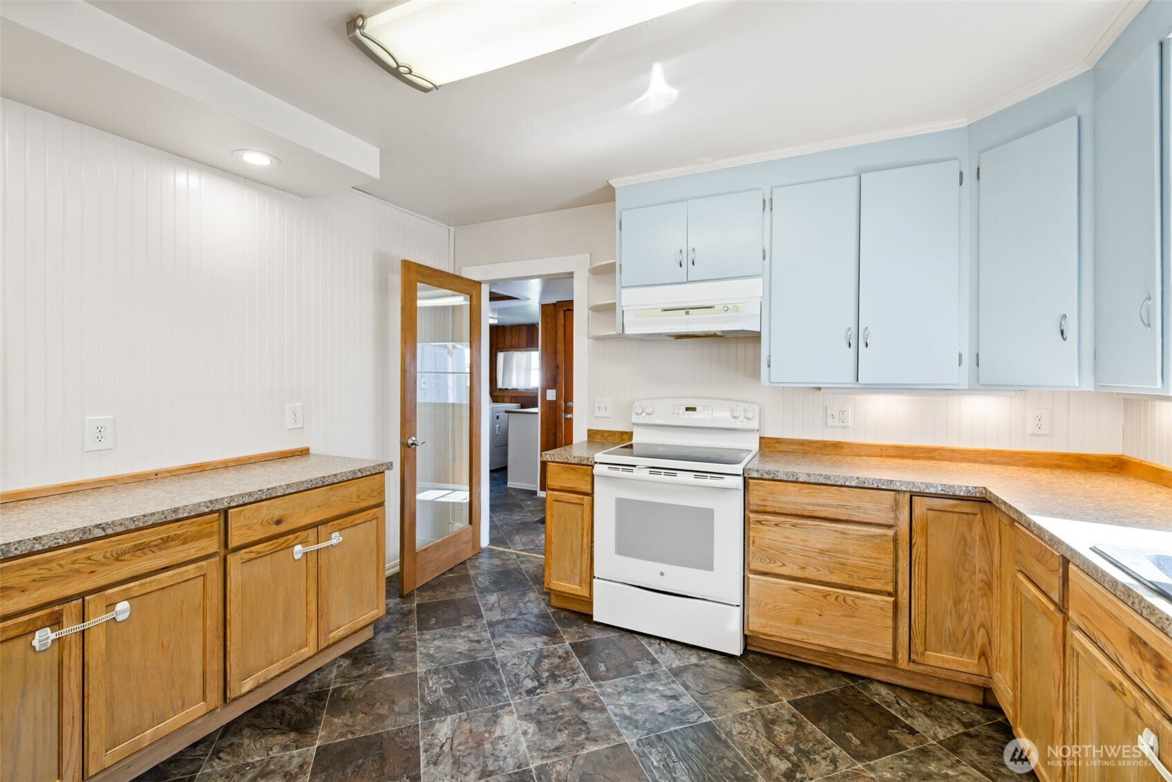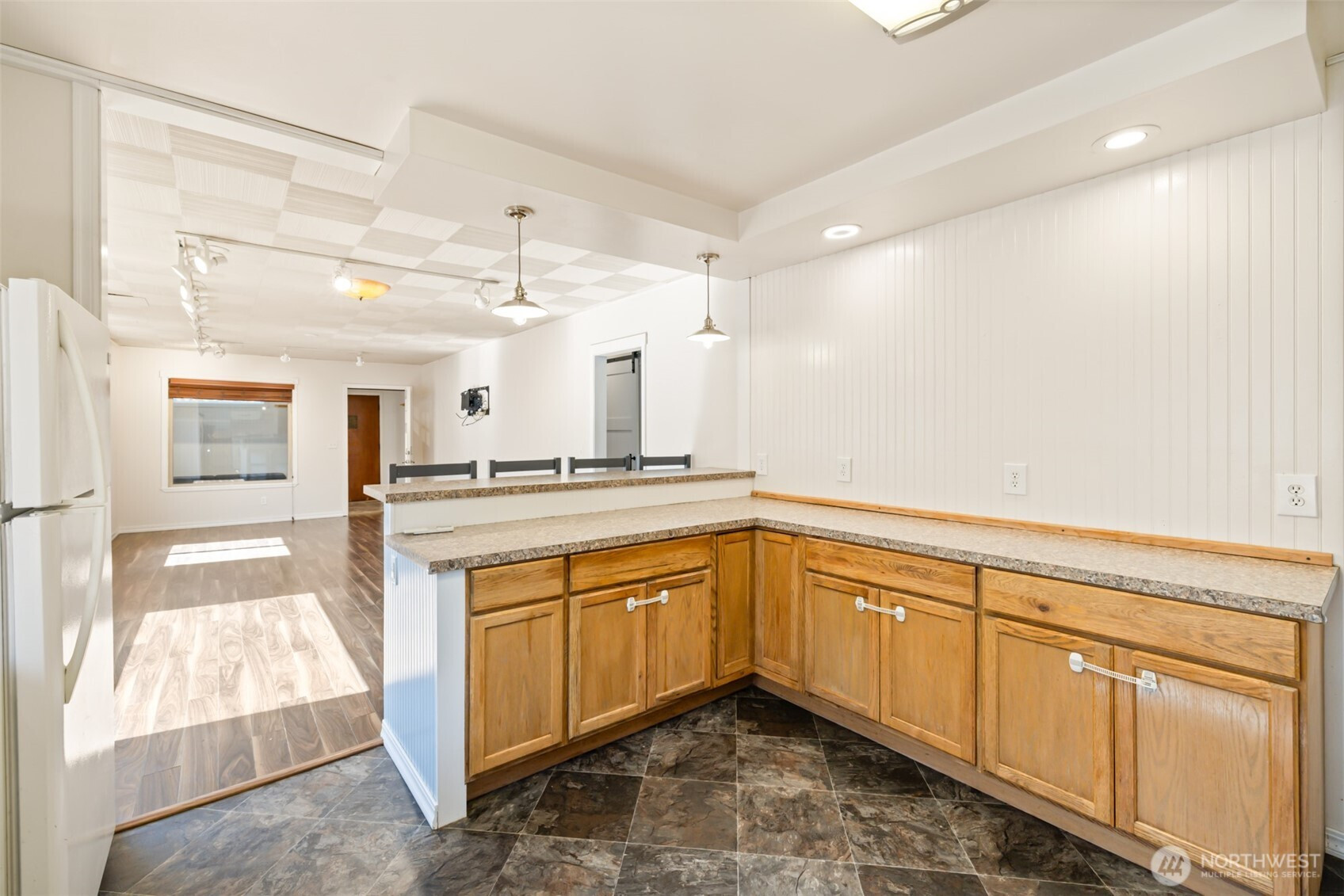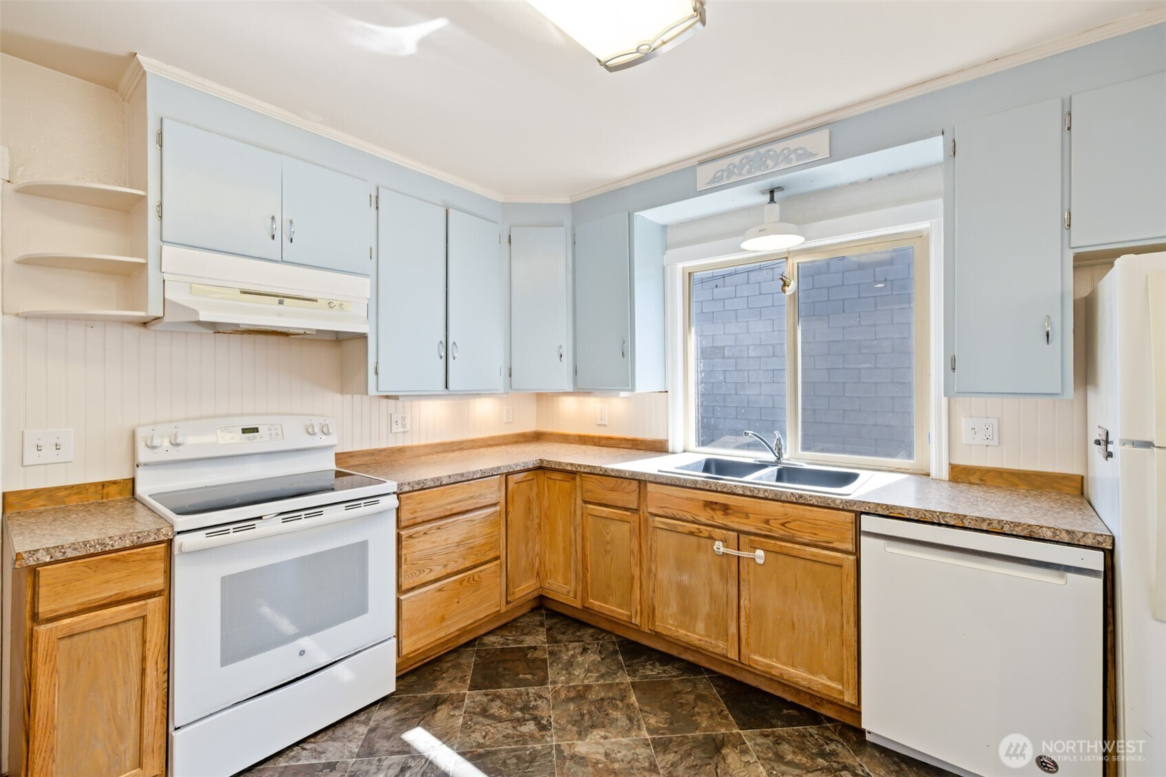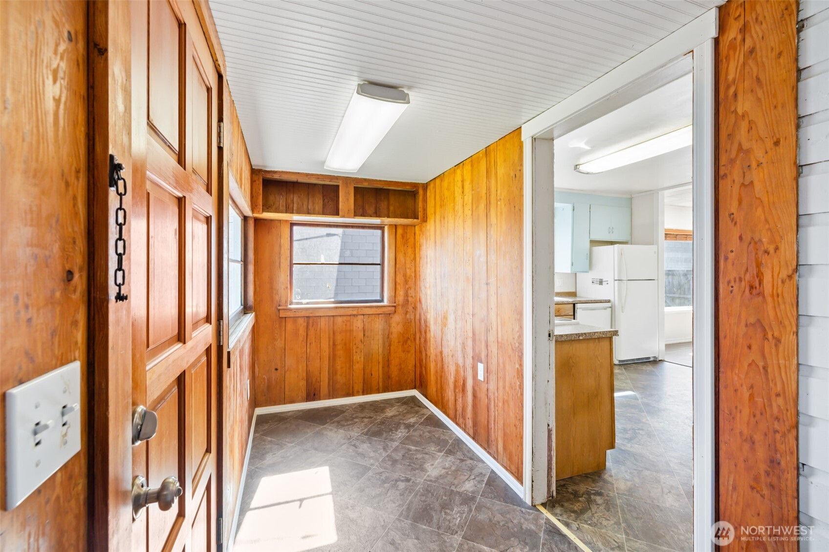 Charming, updated Craftsman in a highly convenient location! Zoned CA for added flexibility, though ideally suited for residential living, this 2BD/1BA home blends classic character with thoughtful modern upgrades. Inside, enjoy durable vinyl plank flooring, updated vinyl windows, and efficient ductless heating & cooling. The spacious kitchen features oak cabinetry, laminate counters, recessed lighting, and a peninsula with seating, perfect for everyday living and entertaining. A large mudroom/laundry/storage space adds versatility, while the remodeled bath offers a walk-in shower, tile flooring, linen storage, and stylish barn door. Both bedrooms include functional, oversized closets with organizers. Outside, a synthetic front deck and covered back porch create welcoming entry spaces. The detached garage is intentionally divided for storage and access, plus ample off-alley parking adjoining the fenced backyard. All just a short distance to the local general store, park, coffee stands, dining, and shopping!