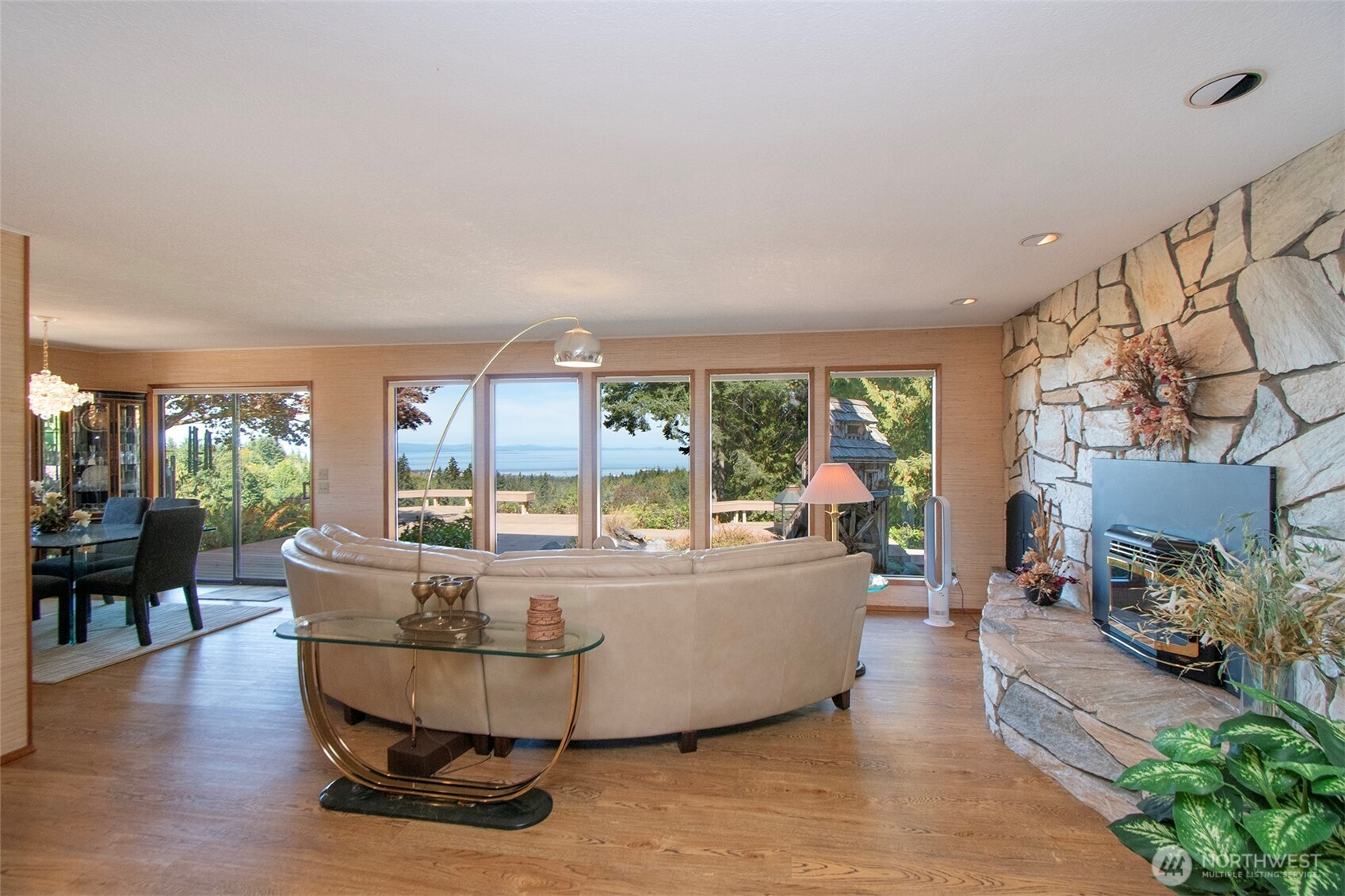 Escape to your private 10-acre Northwest oasis with breathtaking Strait and city views!Tucked away in a peaceful park-like setting just minutes from town, this serene, wooded retreat perfectly blends natural beauty with modern comfort. The inviting 3-bedroom, 3-bath home features large windows framing sweeping panoramic water and city vistas from the living and dining rooms, plus expansive decks ideal for enjoying the views. Cozy propane fireplaces in both the living room and the spacious family room create the perfect ambiance for every season.Outside amenities include a finished, heated detached garage/shop, RV carport, and fenced dog run. Modern conveniences like Starlink high-speed internet and a backup generator add reliable connectivity and peace of mind. Relax amid mature trees and tranquil grounds and enjoy your private picnic area along Valley Creek with its charming paddle wheel — the ideal spot for countless memories and outdoor adventures.This rare opportunity offers exceptional views, creekside charm, and ample space to live, explore, and unwind in your own peaceful sanctuary. Don’t miss out!