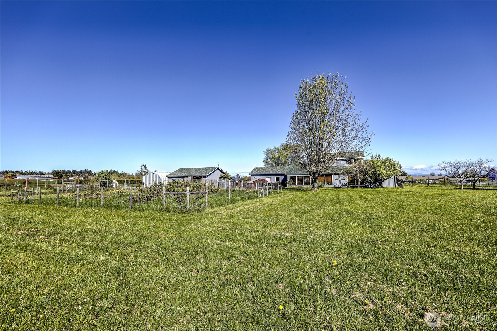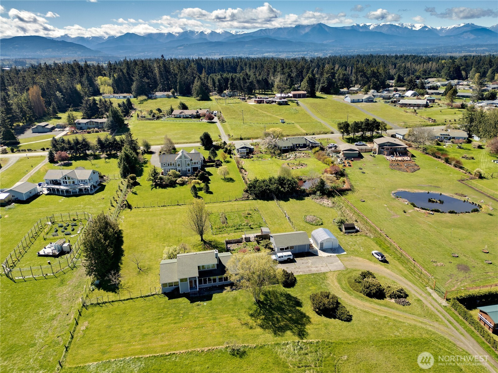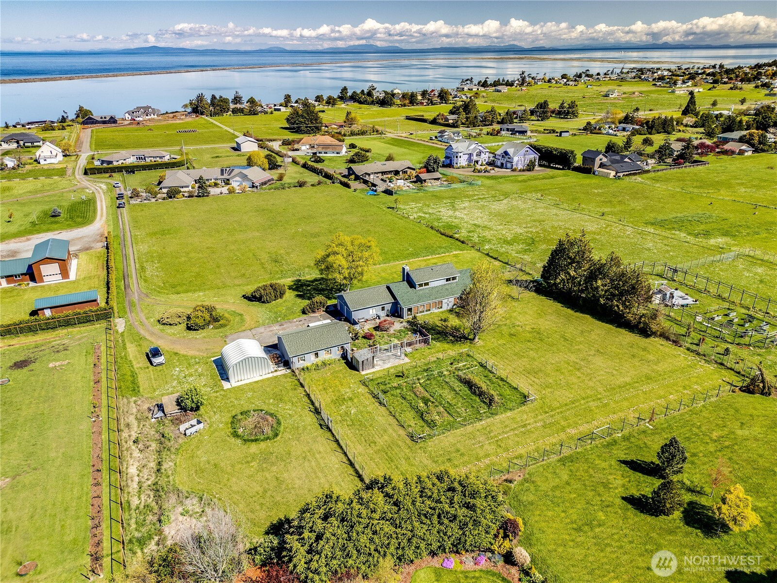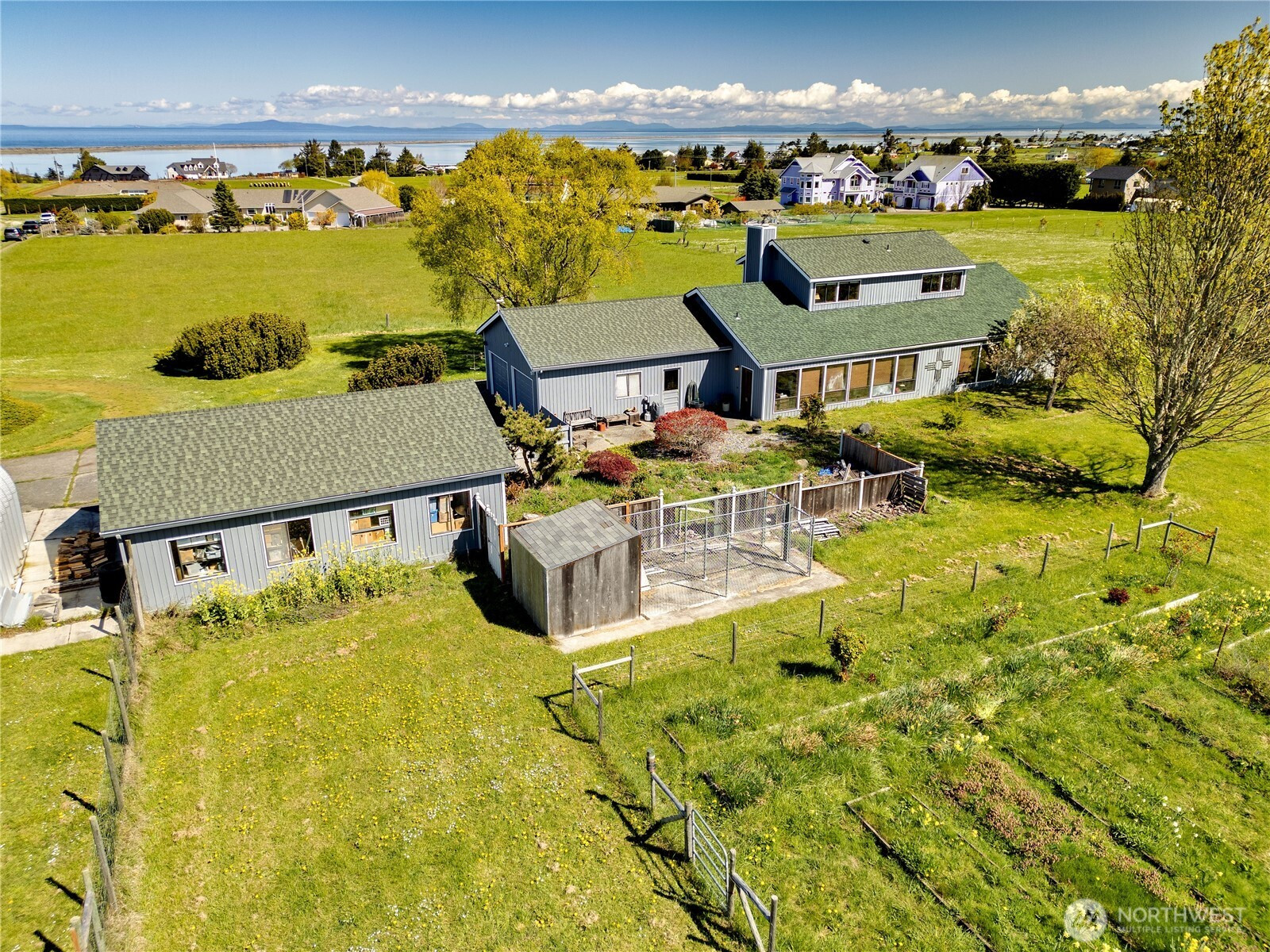 Set on 2.5+ private acres in the desirable Sequim area, this spacious 3 bed, 2 bath home offers over 2,000 sqft of comfortable living with a peaceful south-facing 600sqft enclosed patio. Tucked away at the end of a quiet road, the level property provides exceptional privacy while still being conveniently located. Inside, you’ll find vaulted ceiling entryway, a generous living area, and expansive windows that capture beautiful water views. The kitchen features abundant cabinetry, large pantry and ample prep space, and flows seamlessly into the dining area. The primary suite includes a walk-in closet and en suite bath and shower, while additional bedrooms offer flexibility for guests, office, or hobbies. Enjoy spacious south facing sunroom with plenty of room to spawl out including a built-in spa. Property highlights include attached and 768sqft detached garage spaces, shop and a 400sqft outbuilding with a garage door. Partially fenced grounds—perfect for animals, gardening, or creating your own mini-homestead. With private well, septic, and forced air heating, this home blends functionality with rural charm. A rare opportunity for space, versatility, and serene Peninsula living. Offering access to lavender farms, hiking trails, beaches, charming downtown shops and dining, plus access to the Olympic Mountains & Strait of Juan de Fuca.