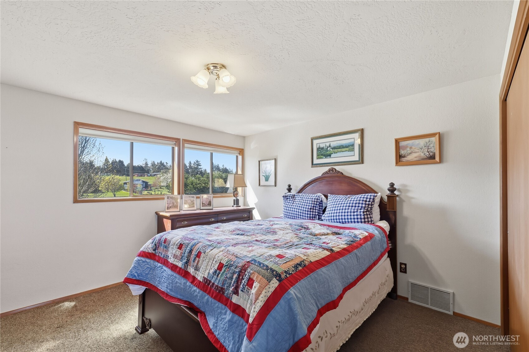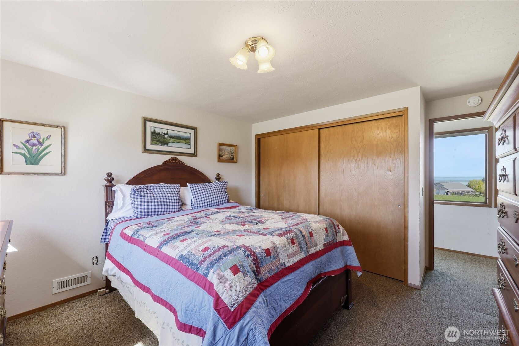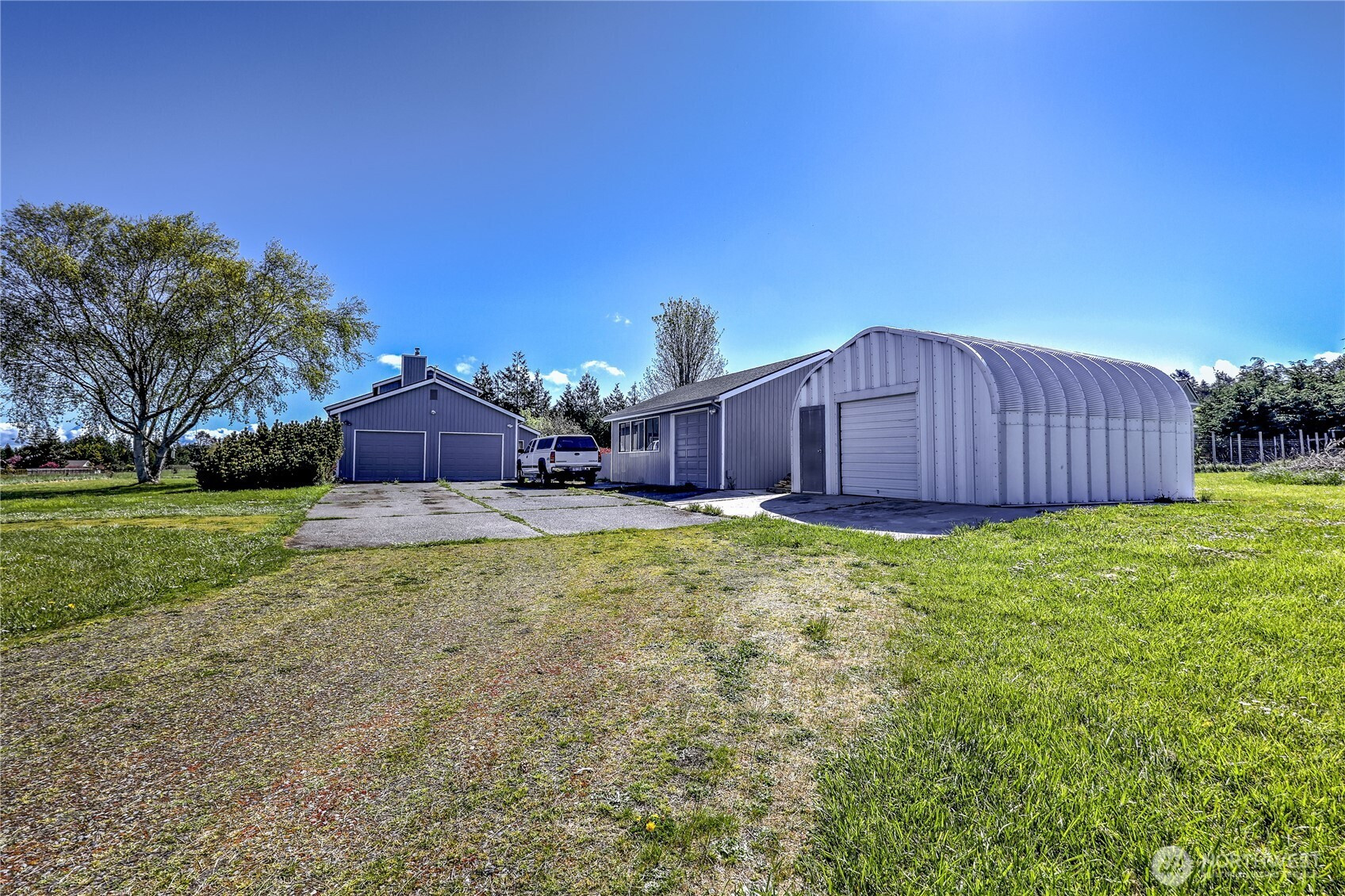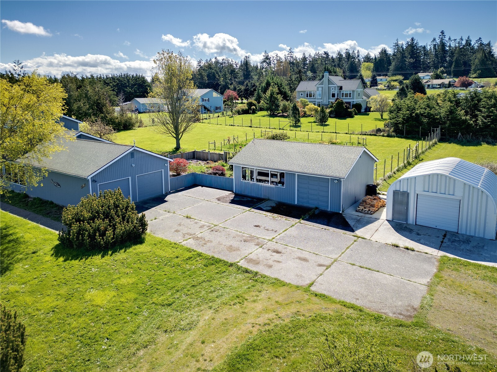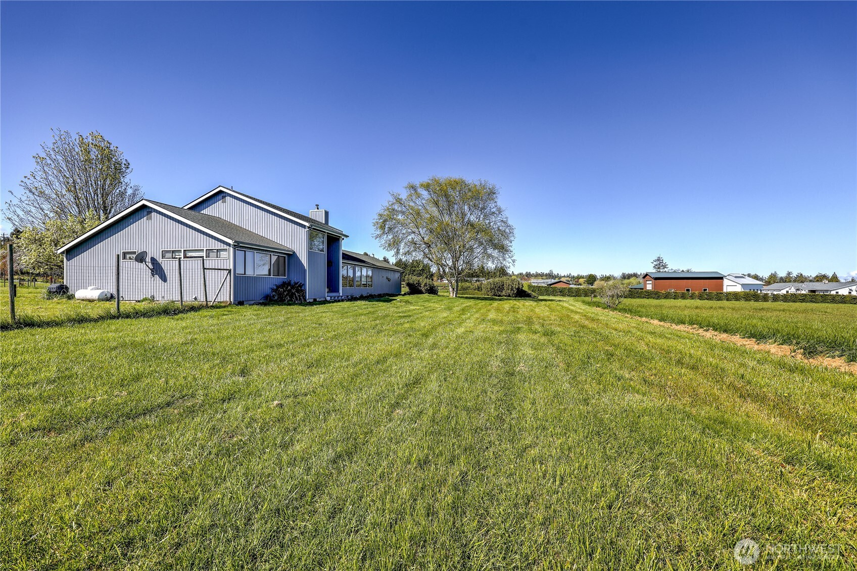 Set on 2.5+ private acres in the desirable Sequim area, this spacious 3 bed, 2 bath home offers over 2,000 sqft of comfortable living with a peaceful south-facing 600sqft enclosed patio. Tucked away at the end of a quiet road, the level property provides exceptional privacy while still being conveniently located. Inside, you’ll find vaulted ceiling entryway, a generous living area, and expansive windows that capture beautiful water views. The kitchen features abundant cabinetry, large pantry and ample prep space, and flows seamlessly into the dining area. The primary suite includes a walk-in closet and en suite bath and shower, while additional bedrooms offer flexibility for guests, office, or hobbies. Enjoy spacious south facing sunroom with plenty of room to spawl out including a built-in spa. Property highlights include attached and 768sqft detached garage spaces, shop and a 400sqft outbuilding with a garage door. Partially fenced grounds—perfect for animals, gardening, or creating your own mini-homestead. With private well, septic, and forced air heating, this home blends functionality with rural charm. A rare opportunity for space, versatility, and serene Peninsula living. Offering access to lavender farms, hiking trails, beaches, charming downtown shops and dining, plus access to the Olympic Mountains & Strait of Juan de Fuca.