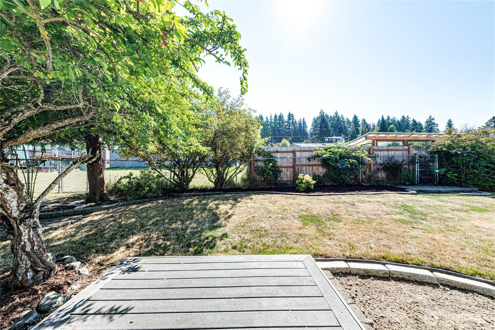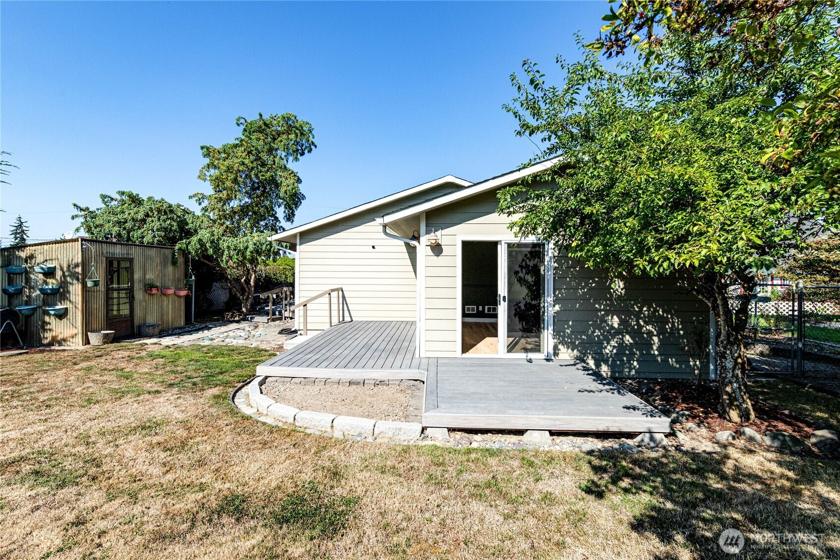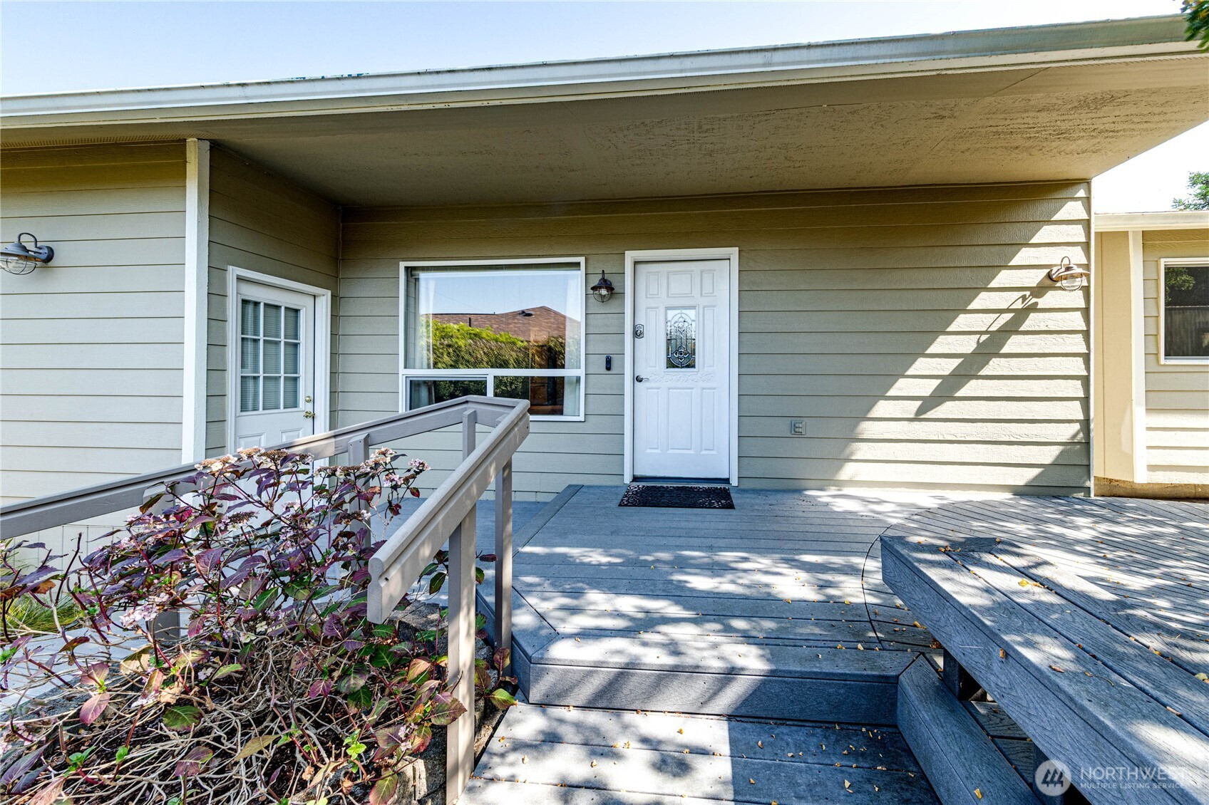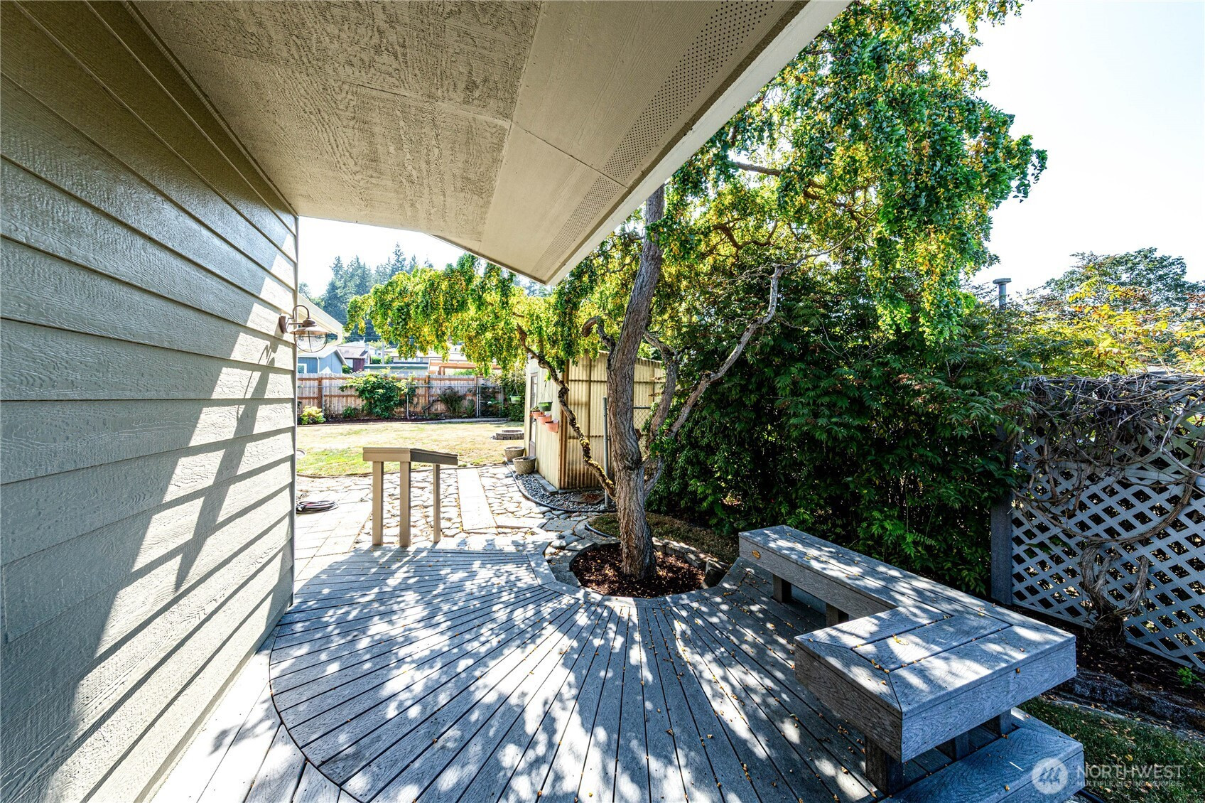 Versatile Living Meets Garden Paradise: This beautifully maintained 3 bed, 2 bath w/ office boasts stunning engineered hickory floors throughout adding warmth, durability & easy maintenance. The heart of the home is this charming kitchen w/ white wood cabinets, butcher block countertops & stainless appliances for ease & function. A thoughtfully placed window over the sink offers charming peek a boo water views while you whip up your culinary delights or entertain guests. Connect with nature when you step outside to your own private sanctuary, where lush, thoughtfully designed landscaping creates beauty as well as privacy. Nurture your inner gardener while you tend plants/herbs in your own little greenhouse complete w/ raised garden beds.