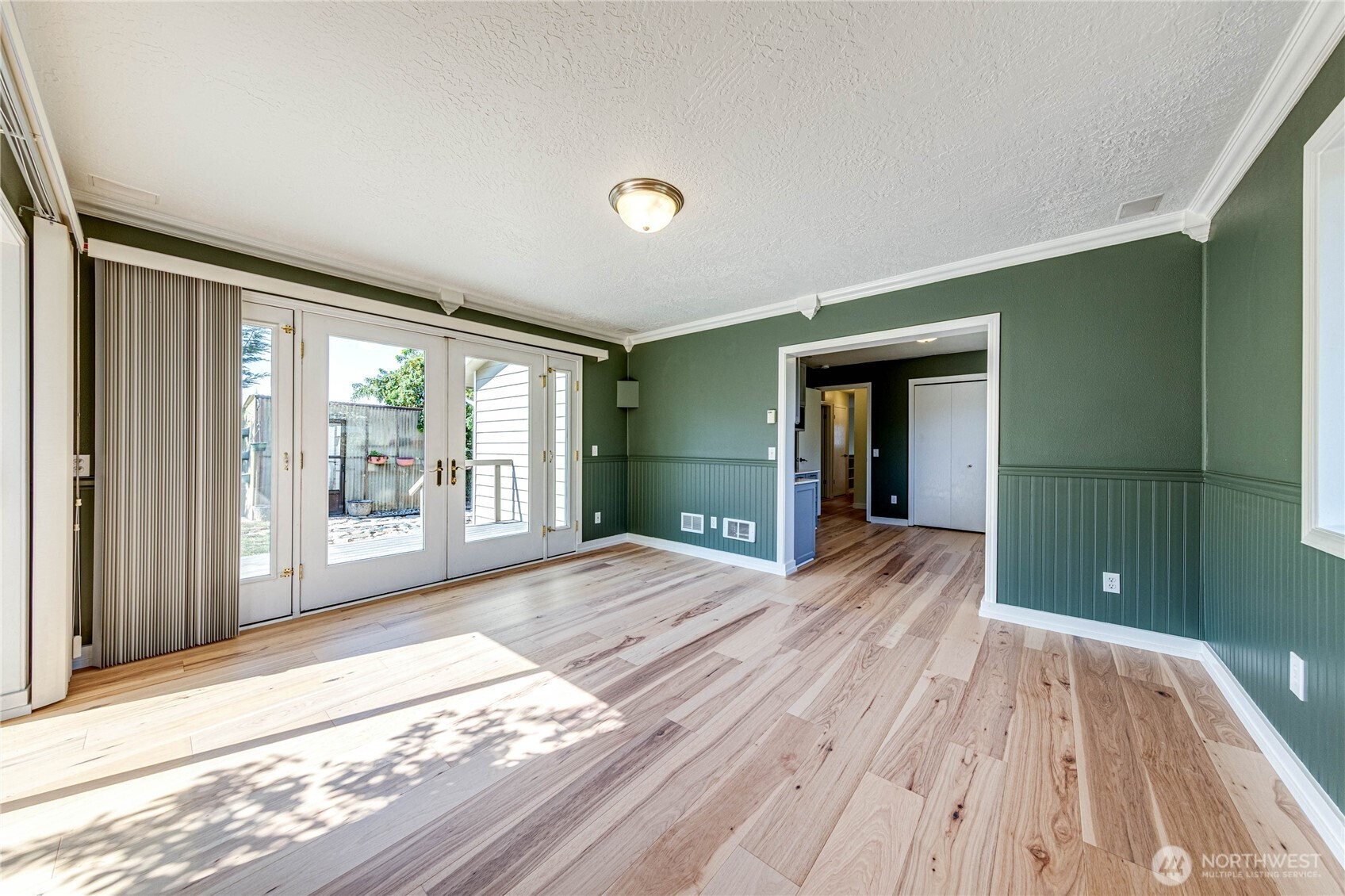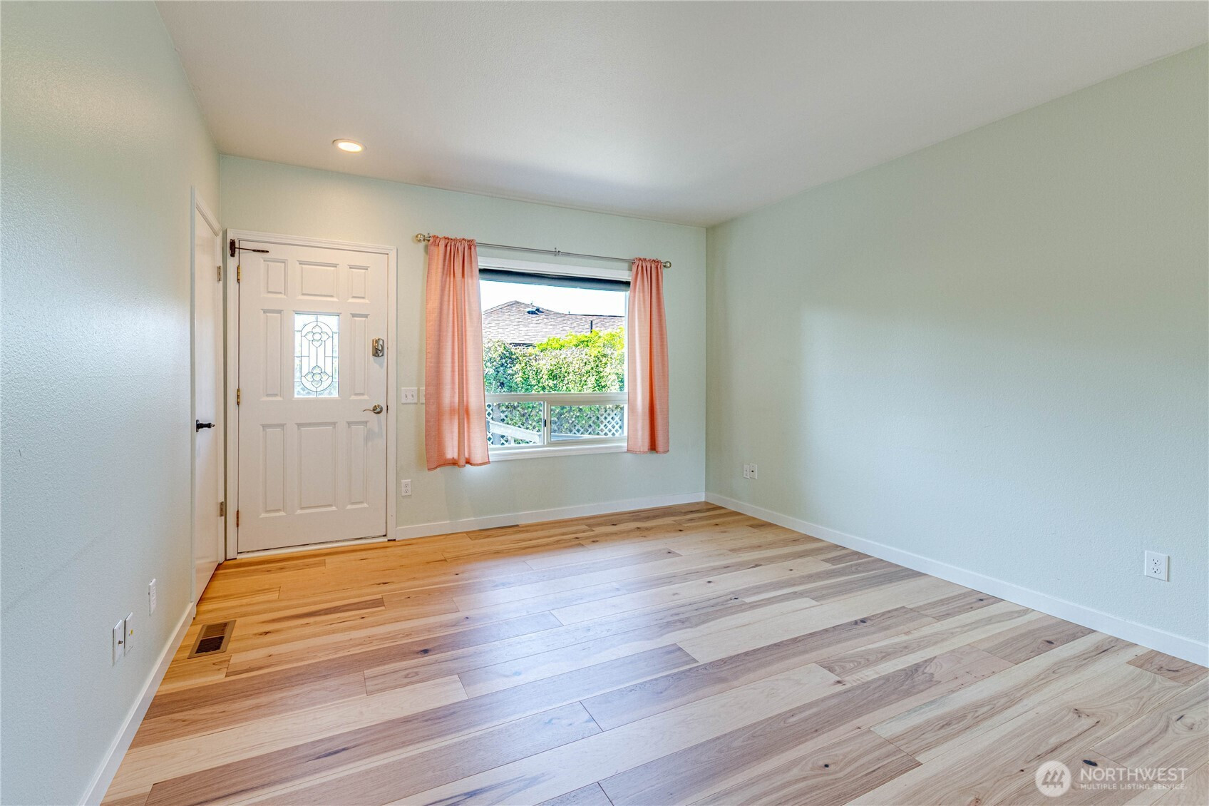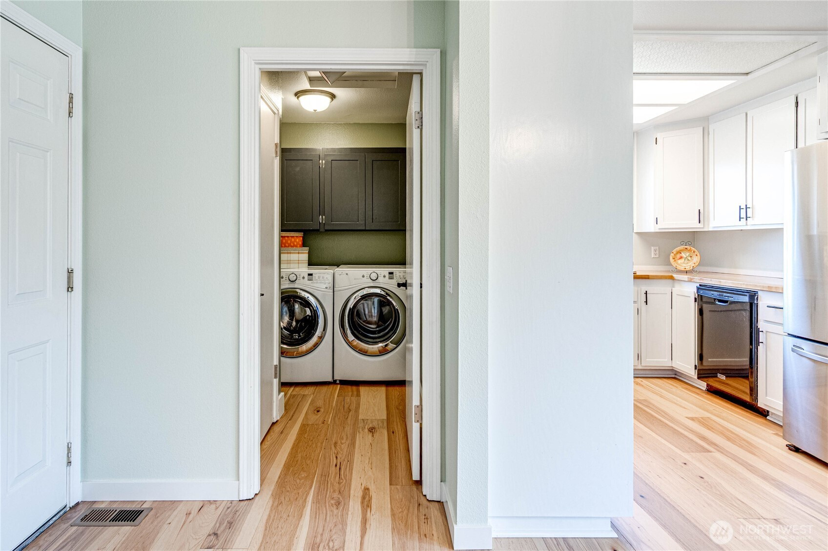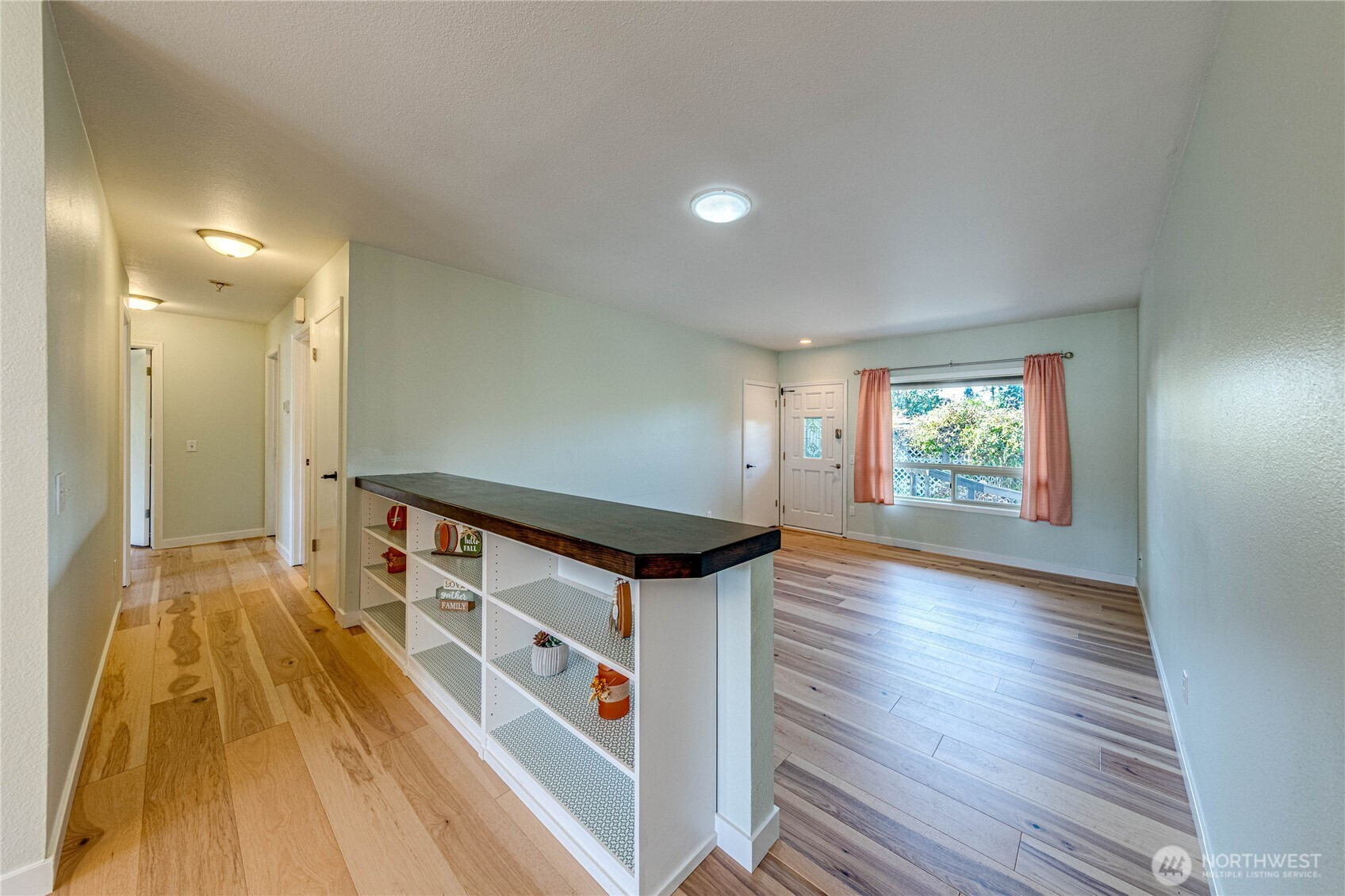 Versatile Living Meets Garden Paradise: This beautifully maintained 3 bed, 2 bath w/ office boasts stunning engineered hickory floors throughout adding warmth, durability & easy maintenance. The heart of the home is this charming kitchen w/ white wood cabinets, butcher block countertops & stainless appliances for ease & function. A thoughtfully placed window over the sink offers charming peek a boo water views while you whip up your culinary delights or entertain guests. Connect with nature when you step outside to your own private sanctuary, where lush, thoughtfully designed landscaping creates beauty as well as privacy. Nurture your inner gardener while you tend plants/herbs in your own little greenhouse complete w/ raised garden beds.