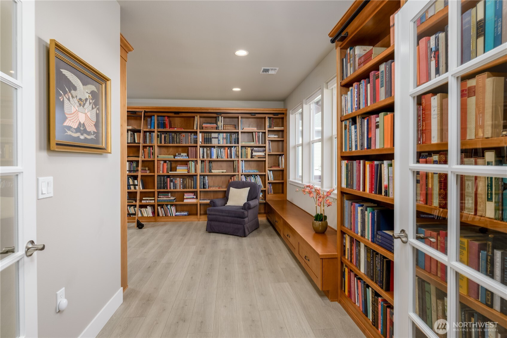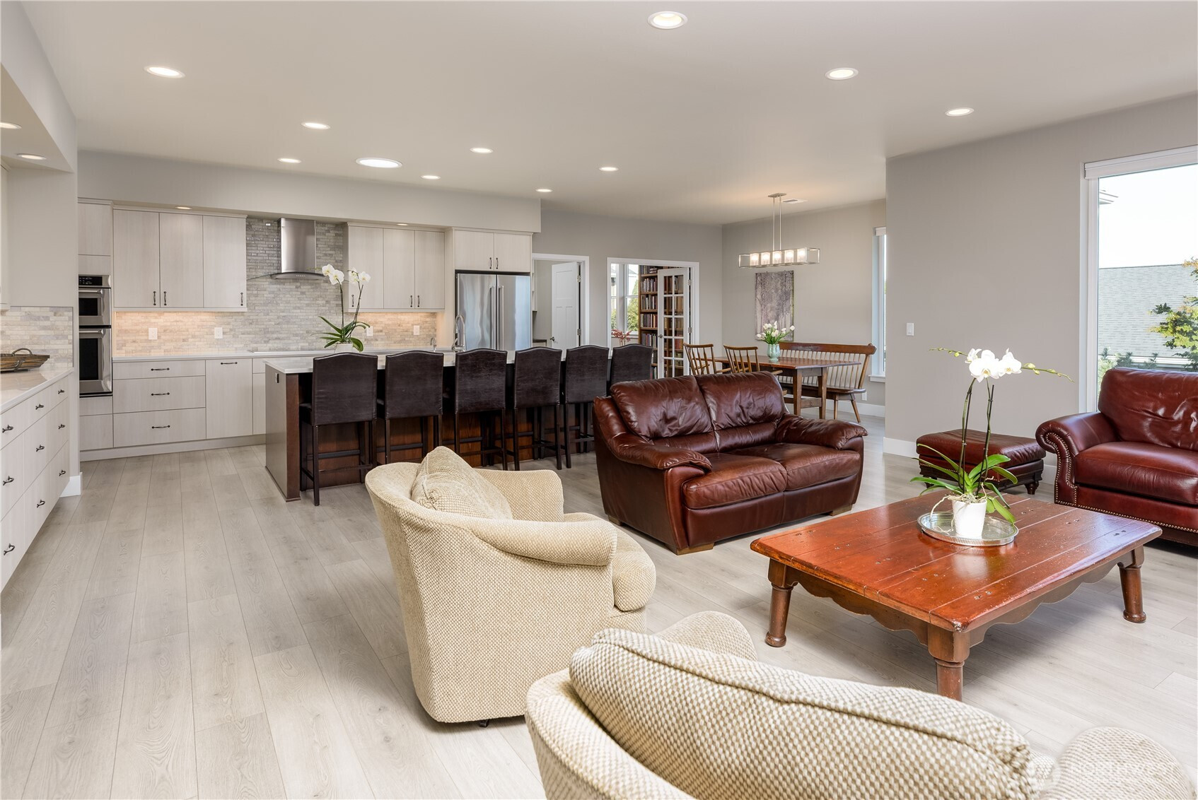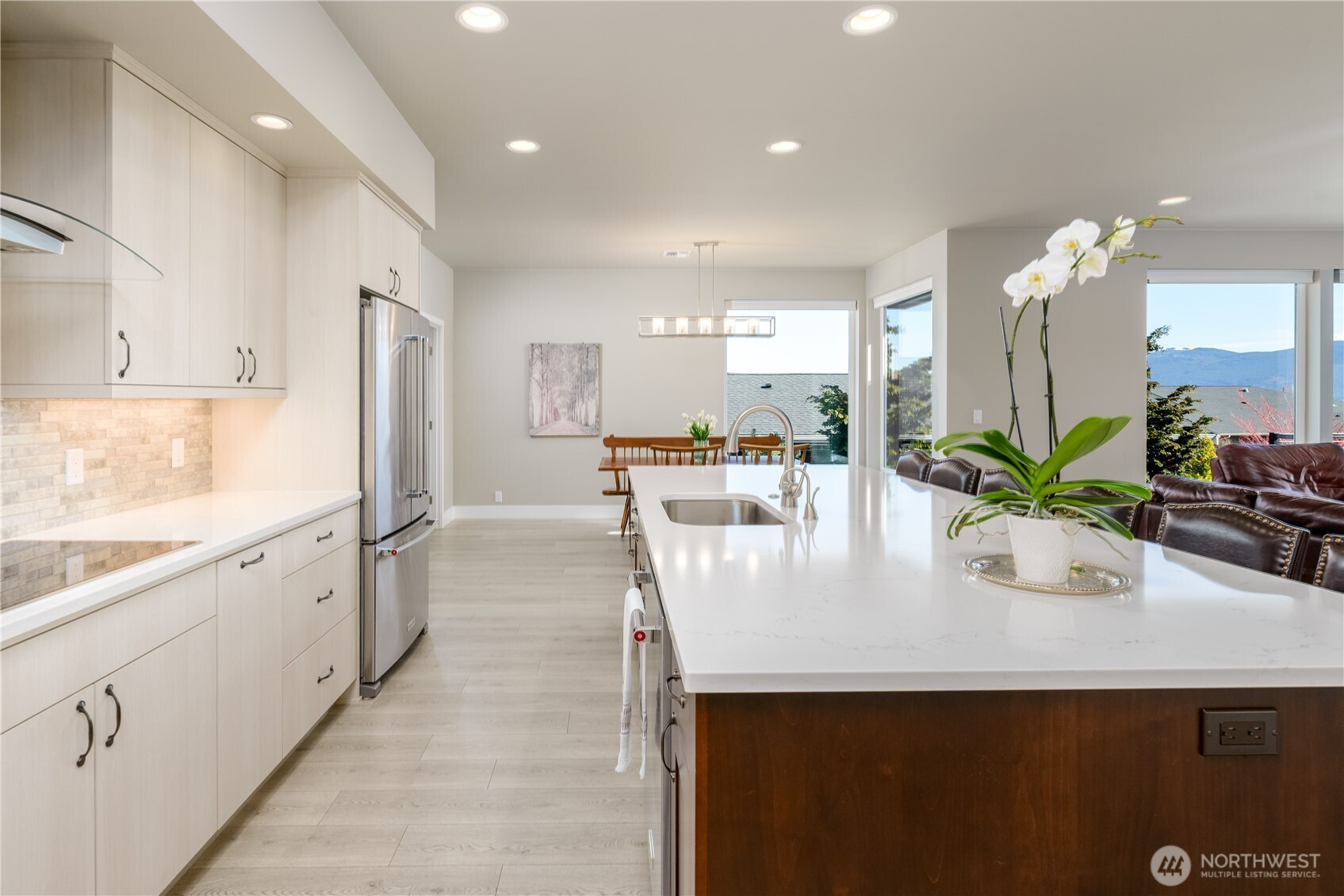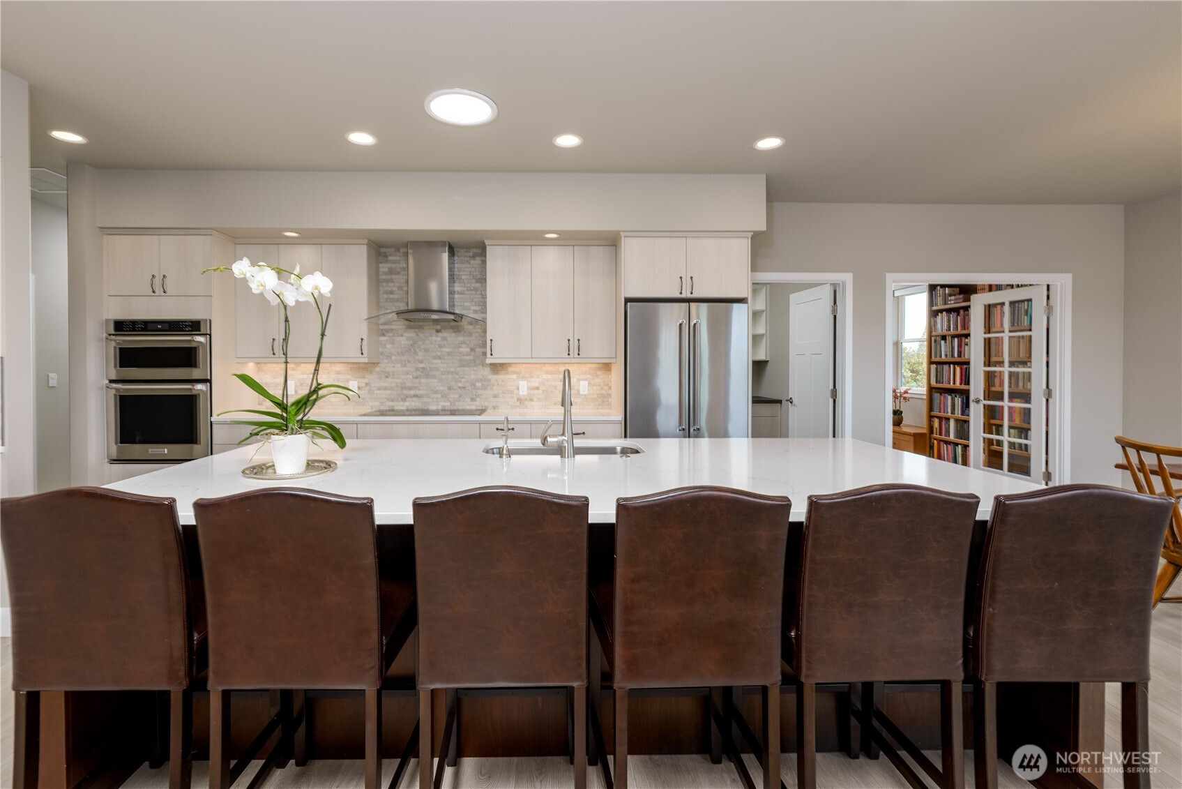 Absolutely stunning single level home in one of Sequim's best neighborhoods - Cedar Ridge. Set on a large corner lot, this home boasts all of the modern amenities you covet, superb style and beauty, and plenty of space to live comfortably. Enter through a covered entry with tongue and groove cedar ceilings into a spacious entry that will welcome any lucky guest. Step into the welcoming great room featuring a propane fireplace w/views out to covered deck area equipped with yet another propane fireplace. Open to the great room is a spacious chef's kitchen with huge Quartz island that seats five, induction stove, gorgeous subway tile accents and enormous walk-in pantry. Dining off of the kitchen area with views to beautiful fenced in backyard with colorful, low maintenance landscaping. The primary bedroom, situated away from all of the main living areas checks all of the boxes with a large walk-in closet, door out to the deck, and a spa like bathroom featuring more quartz, vanity, soaking tub and stunning tile shower. A private 2nd BR is tucked away with easy access to another gorgeous bathroom. A beautiful library/office off of the great room with shelving of rich wood, sliding ladder to access all of your favorite books and built in desk. A large laundry room w/more custom wood cabinetry plus an impeccable half bath w/quartz counters. Oversized garage with storage room. Large back deck with handsome metal railings w/covered deck area w/propane fireplace. Minutes to downtown.