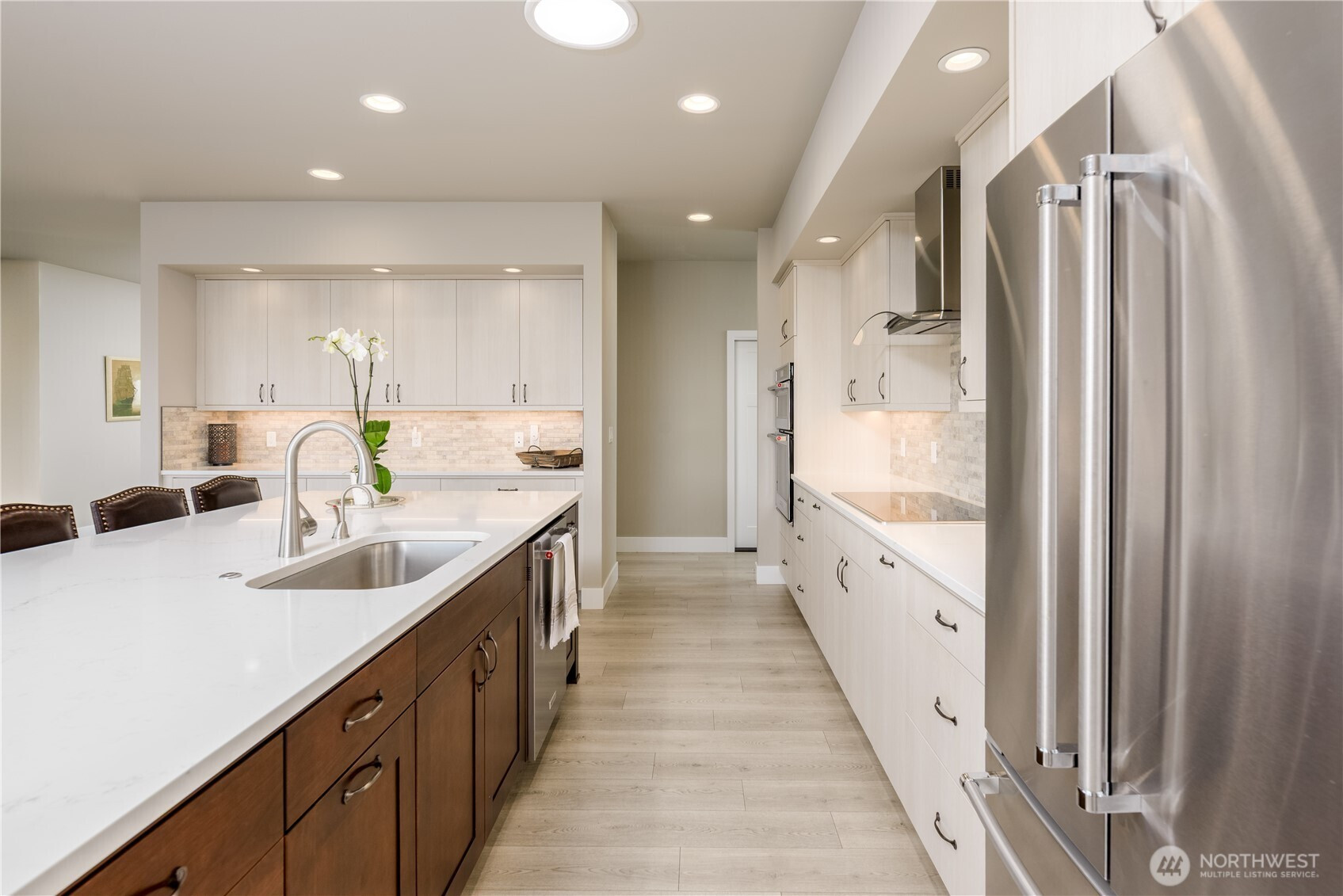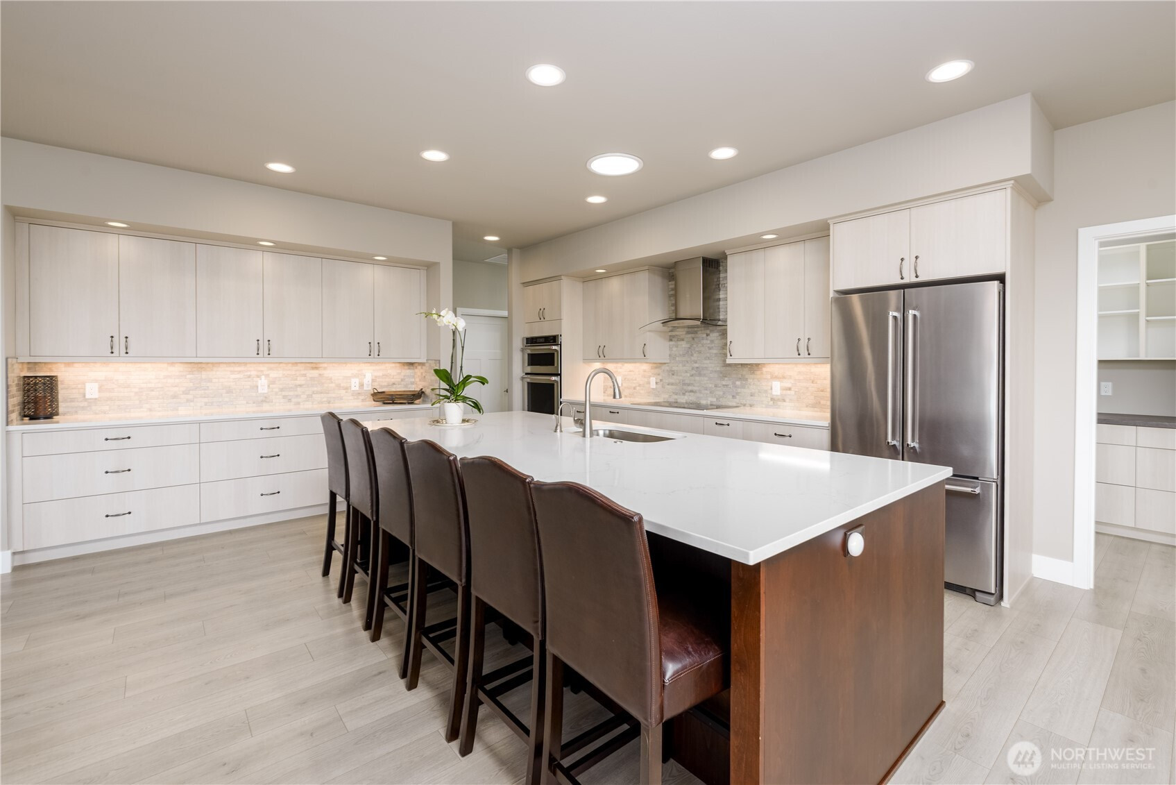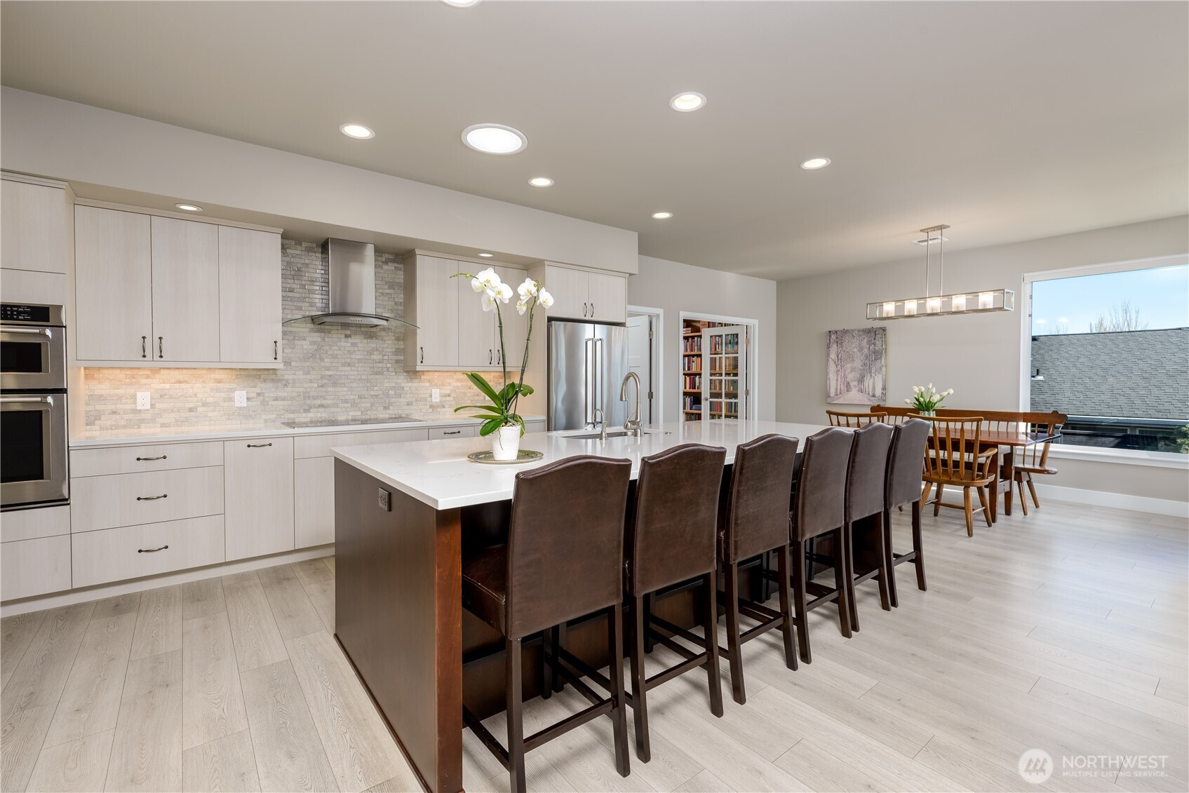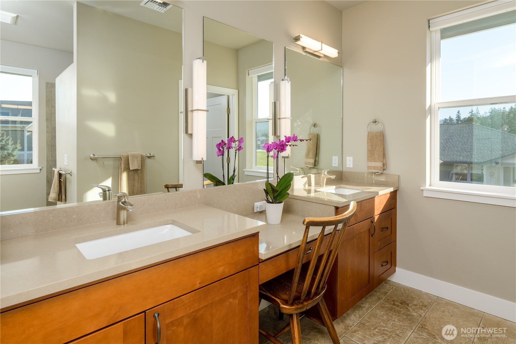 Absolutely stunning single level home in one of Sequim's best neighborhoods - Cedar Ridge. Set on a large corner lot, this home boasts all of the modern amenities you covet, superb style and beauty, and plenty of space to live comfortably. Enter through a covered entry with tongue and groove cedar ceilings into a spacious entry that will welcome any lucky guest. Step into the welcoming great room featuring a propane fireplace w/views out to covered deck area equipped with yet another propane fireplace. Open to the great room is a spacious chef's kitchen with huge Quartz island that seats five, induction stove, gorgeous subway tile accents and enormous walk-in pantry. Dining off of the kitchen area with views to beautiful fenced in backyard with colorful, low maintenance landscaping. The primary bedroom, situated away from all of the main living areas checks all of the boxes with a large walk-in closet, door out to the deck, and a spa like bathroom featuring more quartz, vanity, soaking tub and stunning tile shower. A private 2nd BR is tucked away with easy access to another gorgeous bathroom. A beautiful library/office off of the great room with shelving of rich wood, sliding ladder to access all of your favorite books and built in desk. A large laundry room w/more custom wood cabinetry plus an impeccable half bath w/quartz counters. Oversized garage with storage room. Large back deck with handsome metal railings w/covered deck area w/propane fireplace. Minutes to downtown.