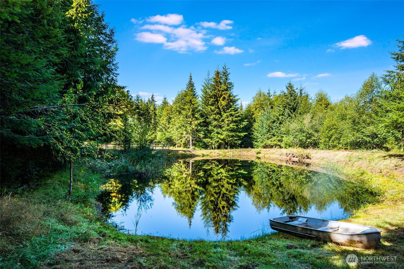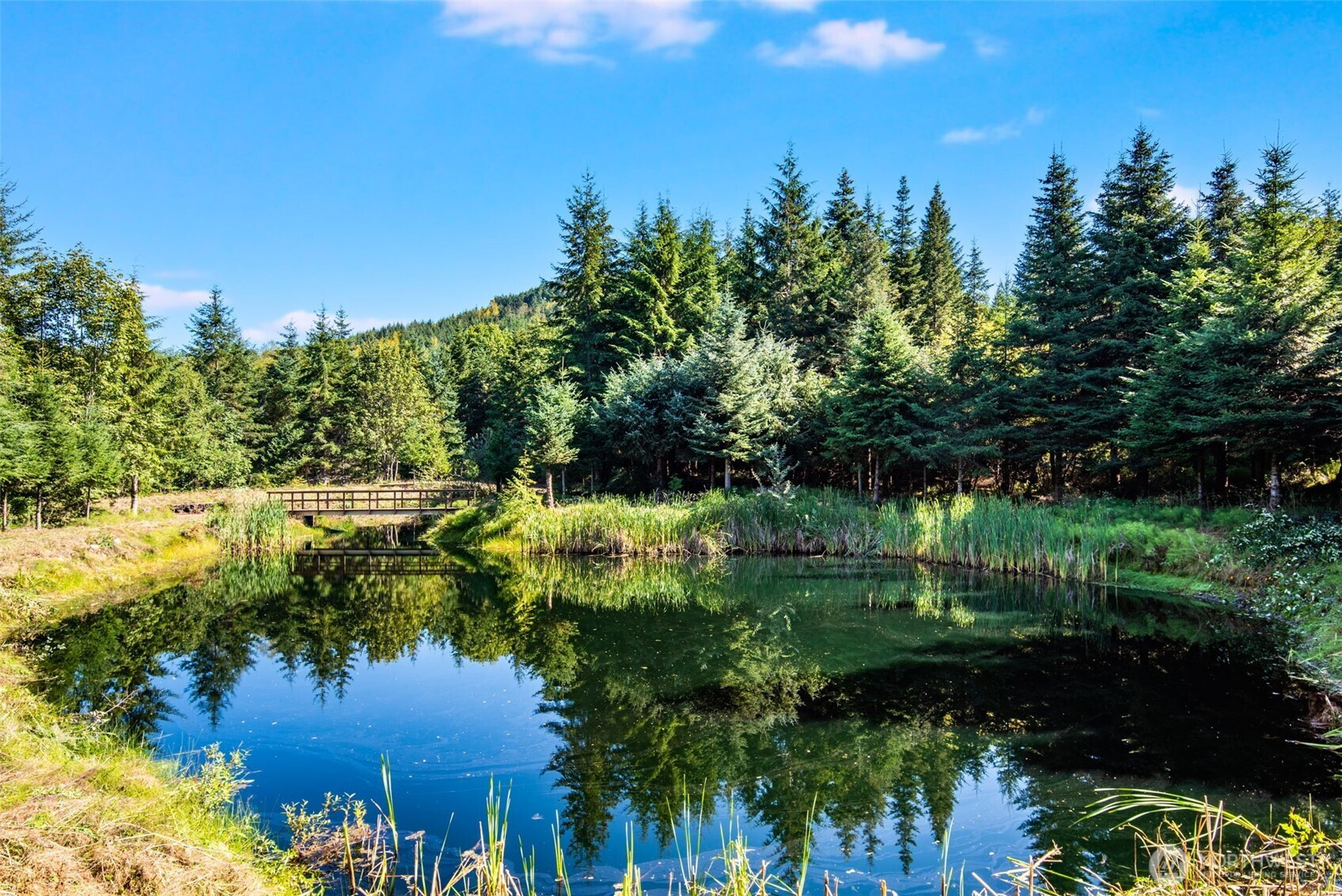 Nestled in the highly coveted Blue Mountain Estates, this rare sanctuary offers sweeping views of the Olympic Mountains and the Strait of Juan de Fuca. A world of its own—private, expansive, and breathtakingly beautiful.The estate features an elevated build site with water views through selective tree clearing, a charming cabin perched beside a sparkling pond, fruit trees and an amphitheater. Extensive roads and trails wind through the property, inviting endless exploration. Infrastructure is already in place: a level building site, power, private well with ZERO water restrictions, RV hookup, and over $200K in custom rock and road work. This isn’t just land—it’s a canvas for your vision, an experience, and a dream ready to be realized.