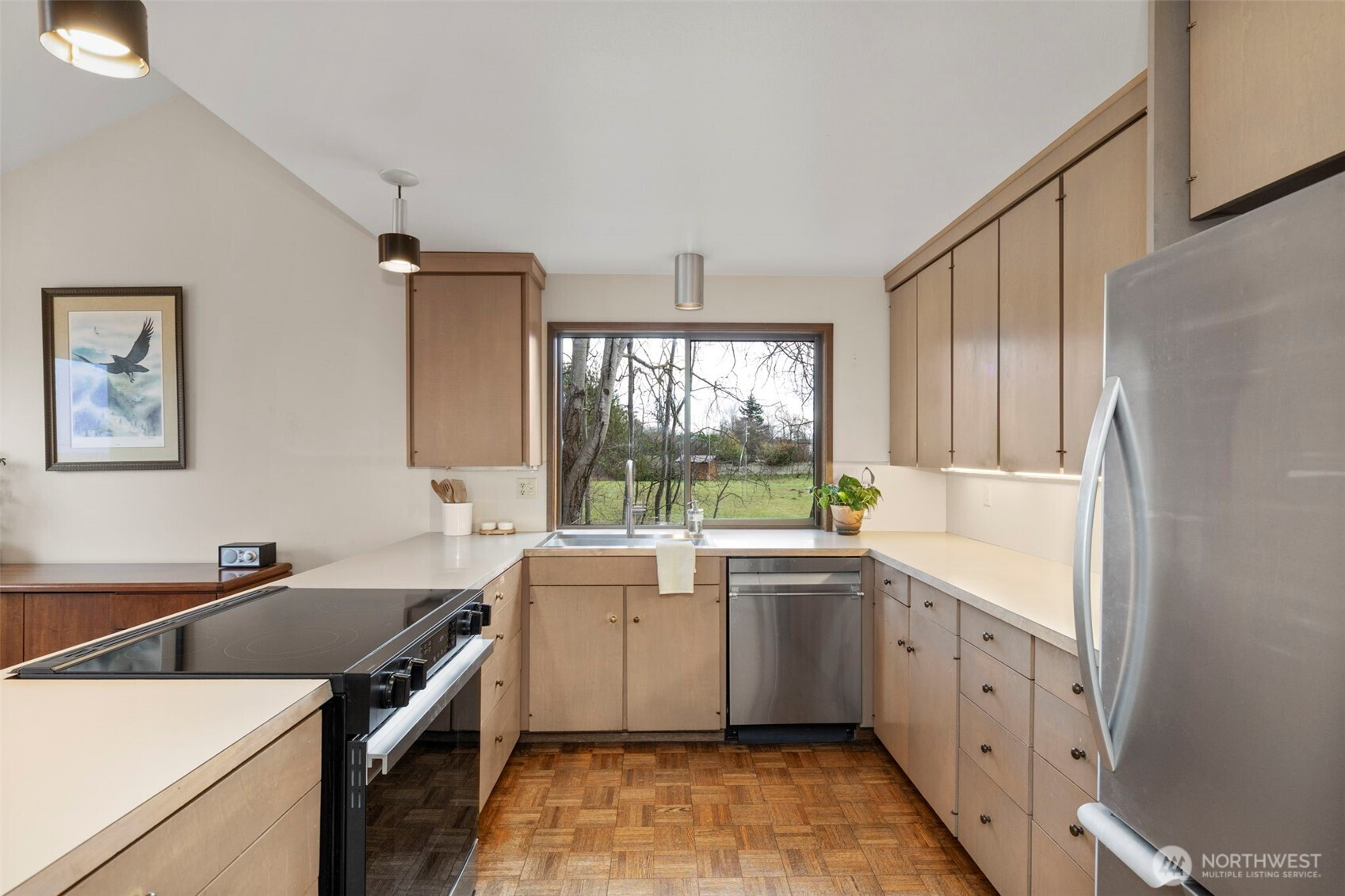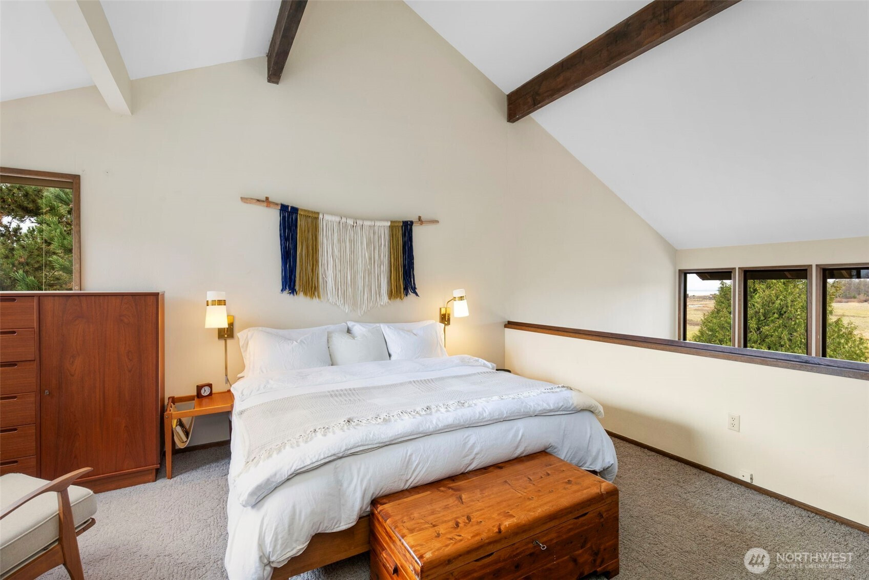 Designed by a prominent PNW architect, this contemporary home offers serene water views and stunning mountain vistas. Just minutes from the Lower Dungeness River—with its trails, fishing, and abundant wildlife—it’s a true bird-watching paradise. The light-filled great room features a cozy propane fireplace and expansive windows that bring the outdoors in, with French doors opening to a new oversized deck ideal for entertaining or relaxing. Upstairs you’ll find three bedrooms and a full bath. Additional features include a sauna, 1-car garage, and an enclosed carport that can serve as a bonus room, workshop, studio, or creative space. 10 minutes from downtown Sequim and all of it's conveniences. A one-of-a-kind retreat style home!