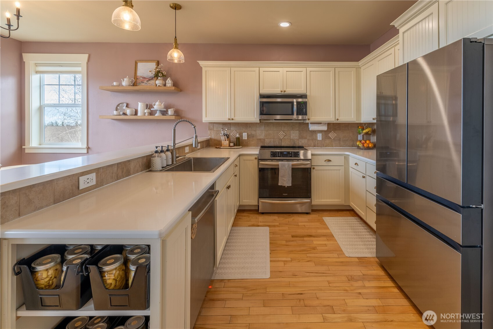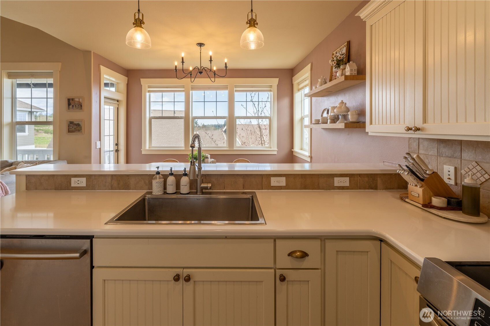 * Substantial price reduction! *Stylish & turnkey, this Sequim craftsman is sure to impress. Quality updates include new interior paint throughout, new light fixtures inside & out, Corian countertops, SS appliances including induction range, & more. Bright & welcoming, natural light pours in and the 9' ceilings make every room feel spacious & comfortable. Downstairs you'll find a walk out with living room, one bedroom, & full bath- perfect for multi-generational/VRBO/or a personal escape. Large flex-room great for hobbies or shop space. Outdoor features include spacious main-level deck for outdoor entertaining + fenced backyard area. Community club house next door w/workout room & more!