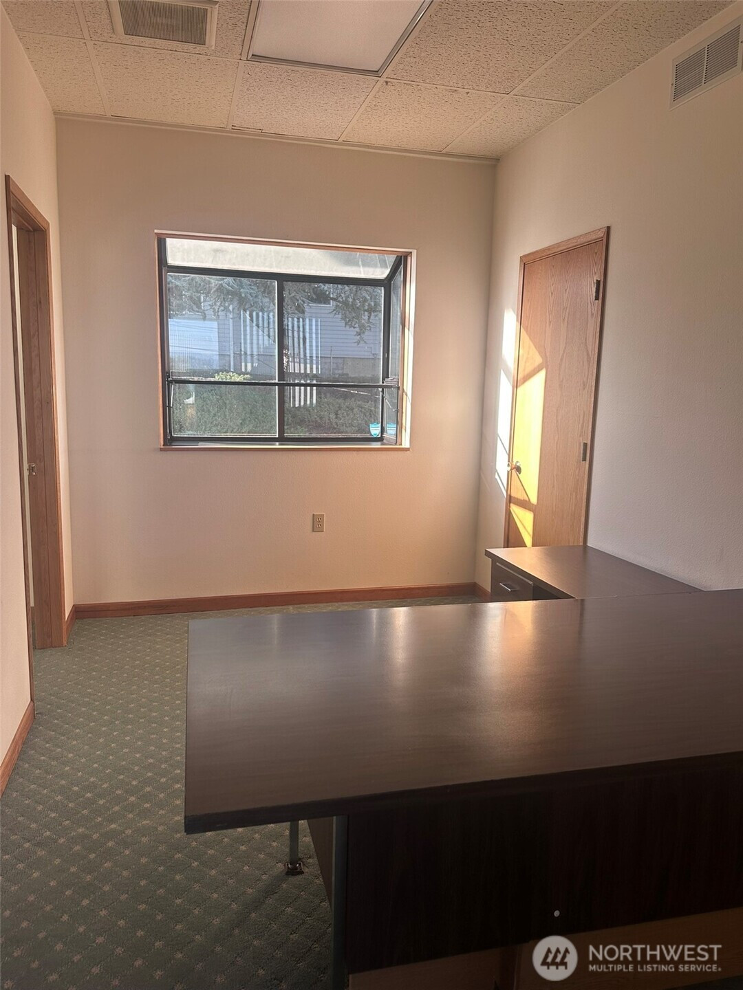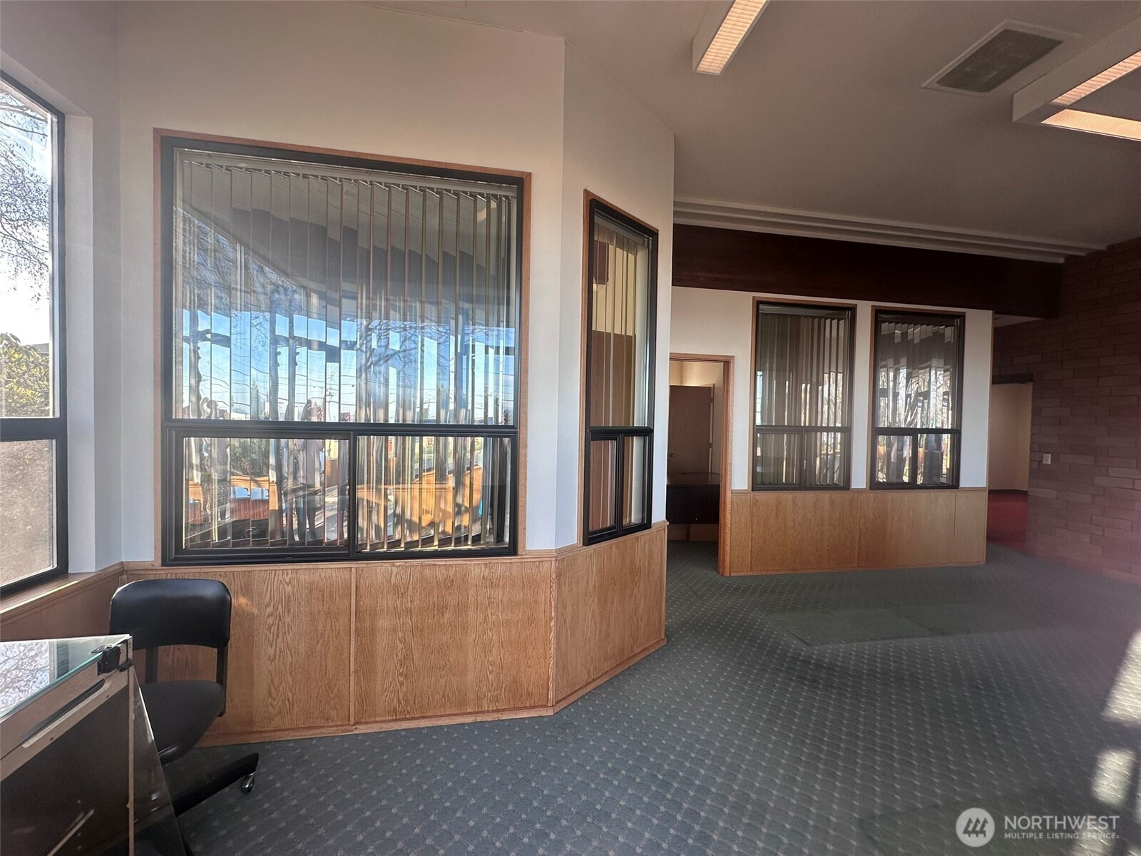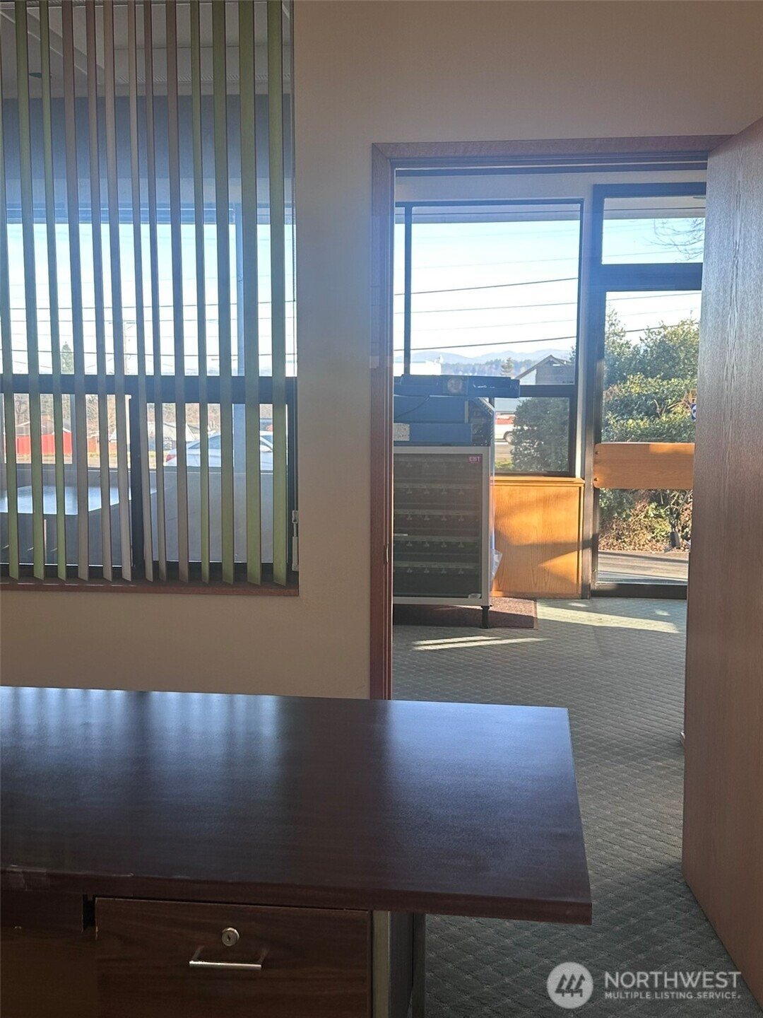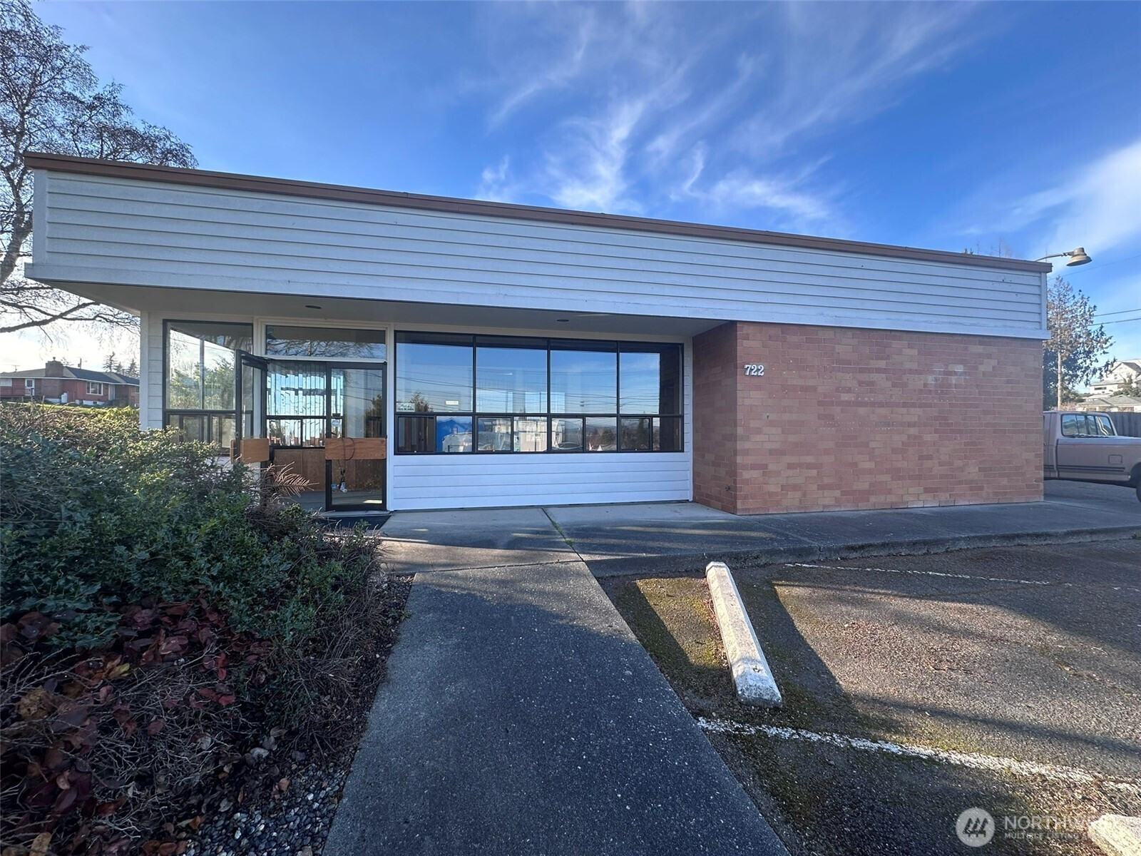 Enjoy the water and mountain views from this commercial property on a high traffic corner location w/large drive thruough & signage. 1381 square feet total, featuring ample parking making it convenient for both customers, clients, and/or staff. Just inside is a bright, sunny open area + one large open room to the south w/ access to the central space with the drive-through access. One additional office space with the original safe still installed! Plus, there is the large conference area with two 1/2 baths and backdoor. Lastly, the large storage area with shelving is a huge plus!