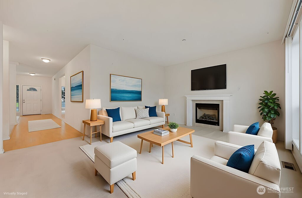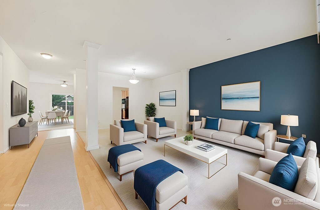 Enjoy the lifestyle on the Olympic Peninsula in this open concept, rambler. This 3 BR, 2 BA, home with vaulted and 9 ft ceilings offers an open floor plan. The front living room with space for dining, or reading, office space or more. Plus a large kitchen with island and connects to open area for eating, watching television or gathering around the propane fireplace. Large primary suite with walk-in closet, dual sinks, soaking tub, walk in shower. Spacious separate laundry room w/ sink & storage. Split floor plan with secondary bedrooms on other side of house for privacy. Large flat backyard only needs fencing on the sides. Lots of room for gardening, outdoor recreation, fire pit, etc. Bring your imagination. Rare 3 car attached garage for all of your cars and hobbies.This lovely home is waiting for you to bring fresh paint and flooring to make it yours! Priced to allow your upgrades and make it exactly to your specifications. Virtual photos show possibilities. The best part is a new roof will be on the house in time for closing. Close proximity to restaurants, parks & other local attractions.