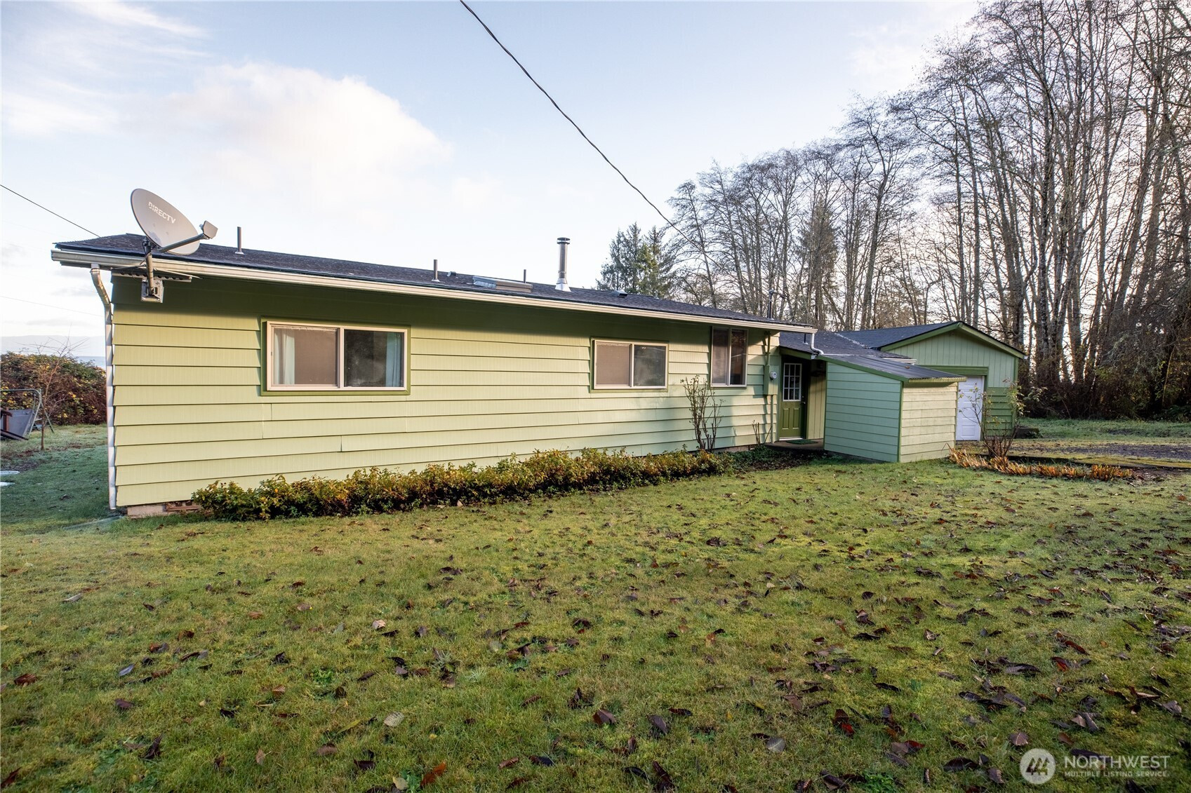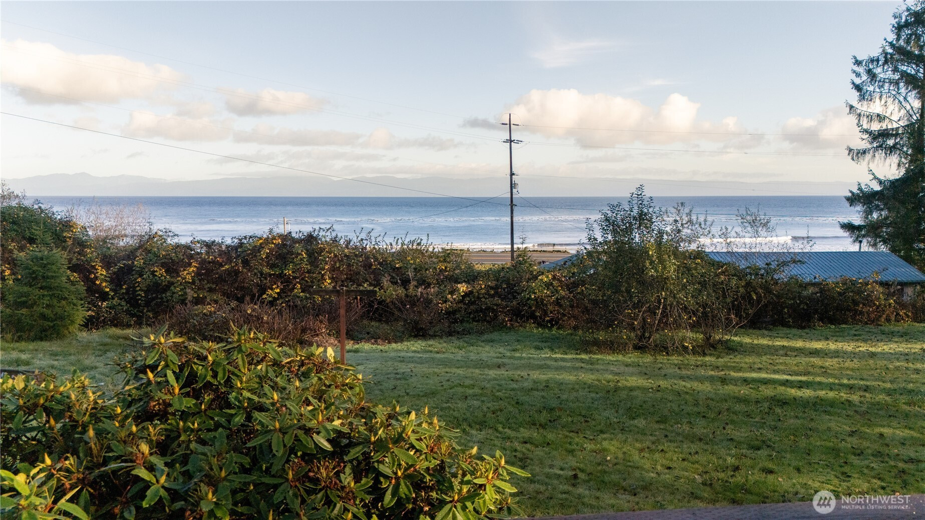 Very well kept and move-in ready home with a breathtaking view of the Strait of Juan de Fuca. Tucked away in a small neighborhood on a low-traffic dead-end street, surrounded by swaths of timberland. Nearly a half acre lot with an open backyard and weatherproof deck. Exterior has thick cedar siding, fresh paint, and a roof that is only a few years old. Top notch upkeep from leaf guards on gutters to a clean, vented crawl space with a vapor barrier. Interior has great flow, a spacious laundry room leading to the attached garage, and a private guest room with its own sink. Big windows highlight the view and bring in natural light. Bedrooms feature new carpet, laminate, and even some original Douglas fir flooring. PUD water is a major bonus!