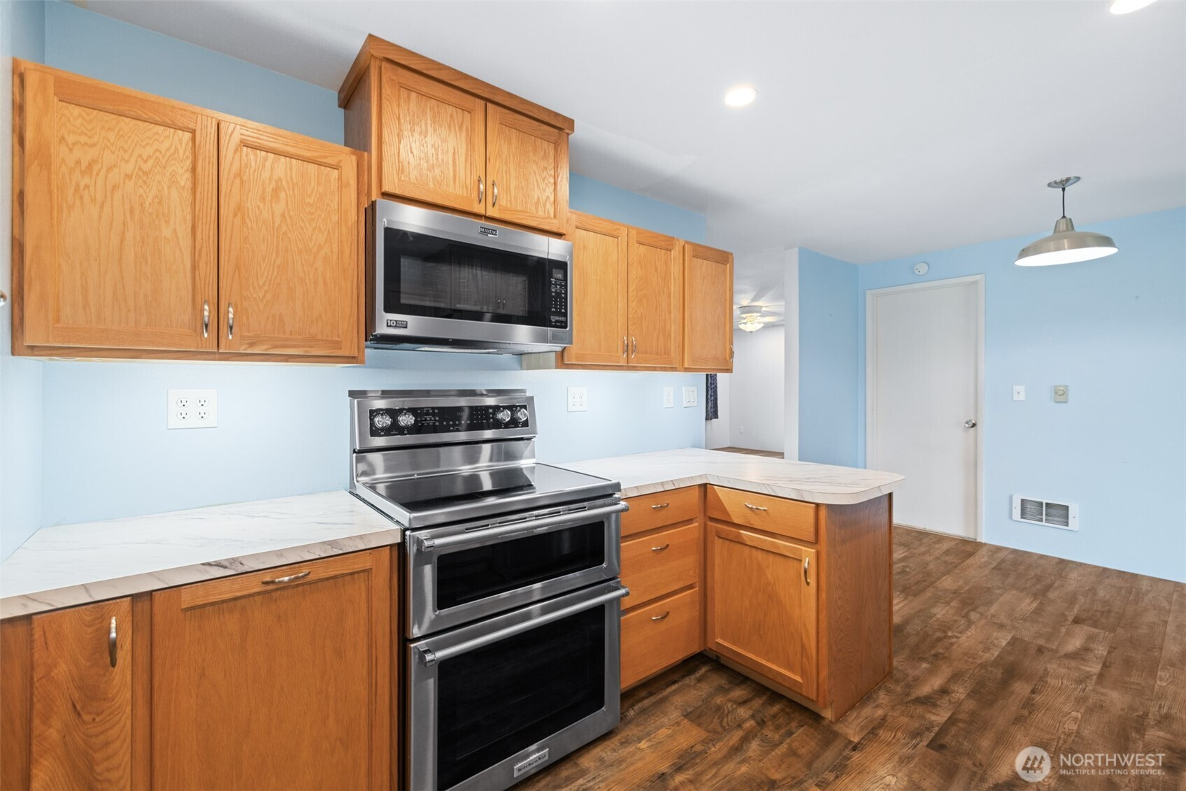 Welcome to this beautifully updated home, featuring 3 bedrooms and 2 bathrooms. The property boasts a brand-new roof (2023), along with a remodeled, modernized kitchen complete with recessed lighting, new cupboards, and flooring, making it both stylish and functional. The guest bathroom has also been updated. From the backyard, enjoy partial mountain views that add a touch of serenity to your everyday life. Out back, you’ll find a versatile outdoor space with a fenced garden area. A chicken coop or potting shed is ready for your homesteading or gardening needs, plus a separate storage shed with power provides plenty of extra room for tools and equipment. This home combines modern updates and is move-in ready.