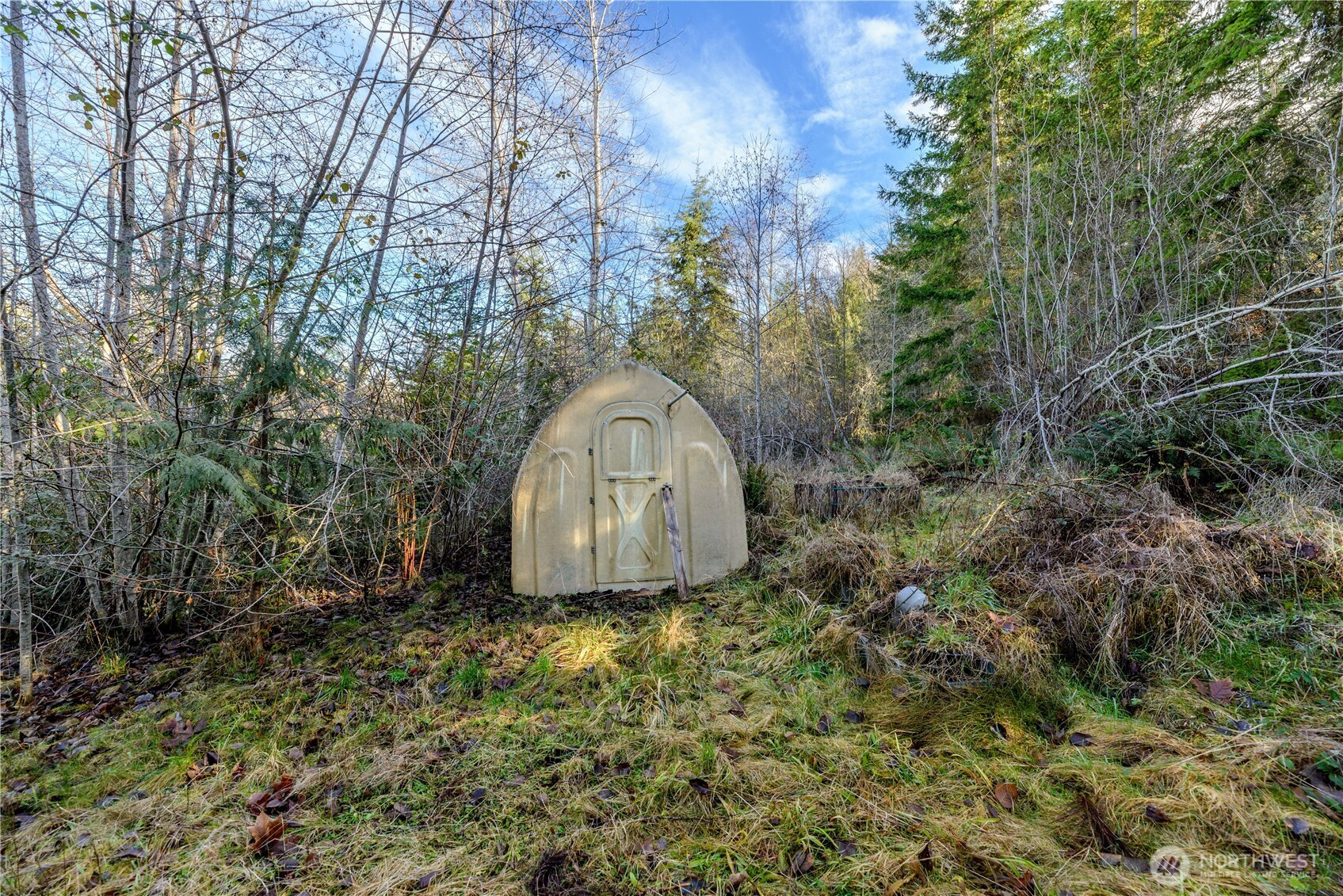 Tucked at the end of quiet Ferndale Drive, Lot C is a 5-acre parcel that offers the kind of privacy that’s getting harder to find. Surrounded by evergreens and forest, the property feels like a peaceful escape with very few neighbors, yet it’s just an easy drive to downtown Sequim. With selective clearing, there is strong potential for water views, making this an ideal canvas for a future home designed around the landscape. The land already features an old garden area with greenhouse, an outbuilding storage shed, and a thoughtfully designed retention pond with circulation. Two quaint floating docks sit tucked into the trees, creating a serene setting to relax and enjoy the natural surroundings. A private well is installed, and electricity is available at the property (not currently connected), helping streamline future plans. If you’ve been looking for a country feeling without sacrificing convenience, this property offers space, privacy, and the sense of living in your own special world — a rare combination so close to Sequim.