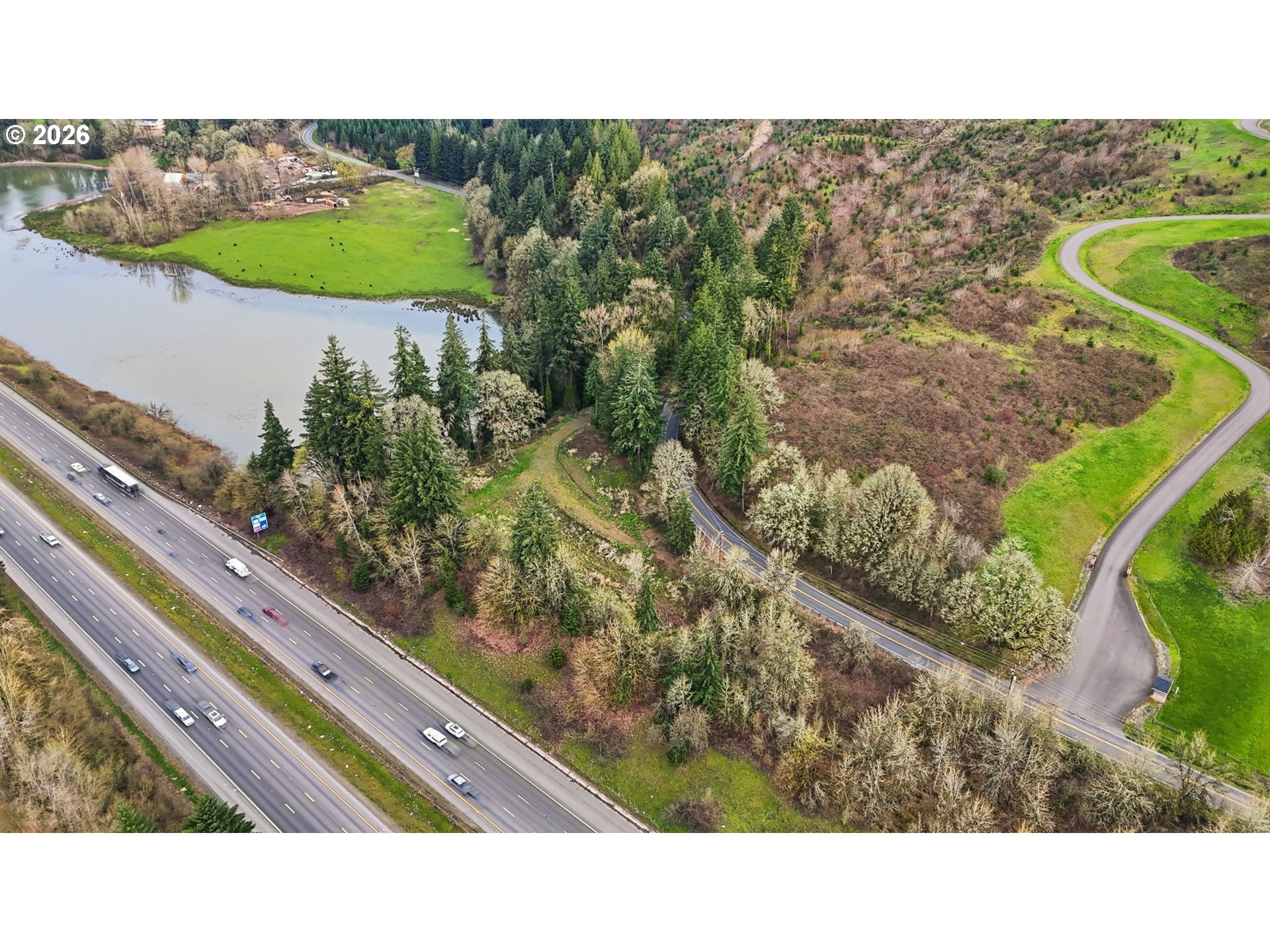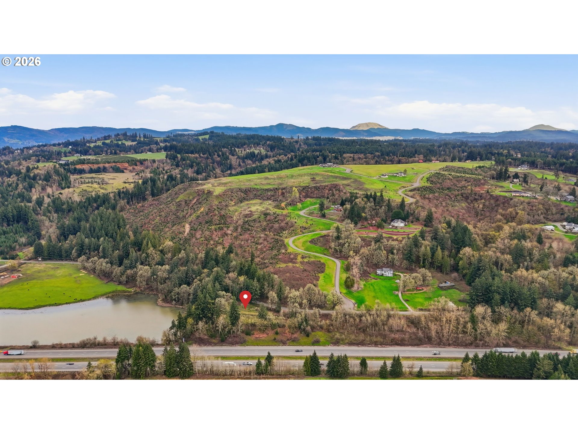 Rare opportunity to own 8.48 acres with lake frontage in a scenic Woodland setting. This gated property offers a unique blend of open, level areas and natural landscape, with territorial and water views overlooking Oxbow Lake. A mix of cleared space and trees provides flexibility for a variety of uses, while existing road access and paved frontage make it easy to explore the possibilities.Utilities are available at the street, and manufactured homes are allowed, offering a range of options for future development or personal use. Conveniently located along NW Pacific Hwy with quick access to I-5, yet tucked into a peaceful, private setting. A truly versatile piece of land with natural beauty and potential.