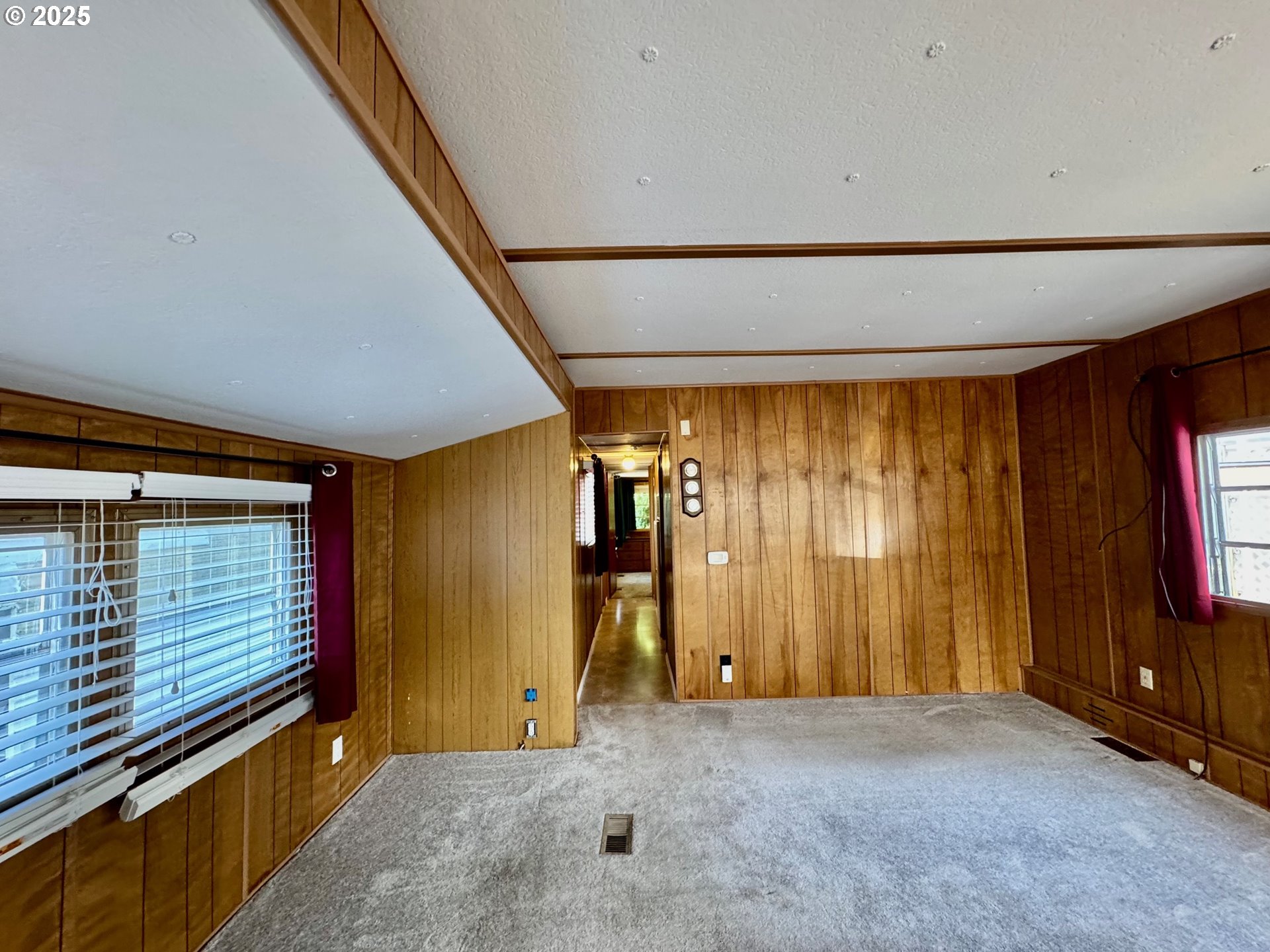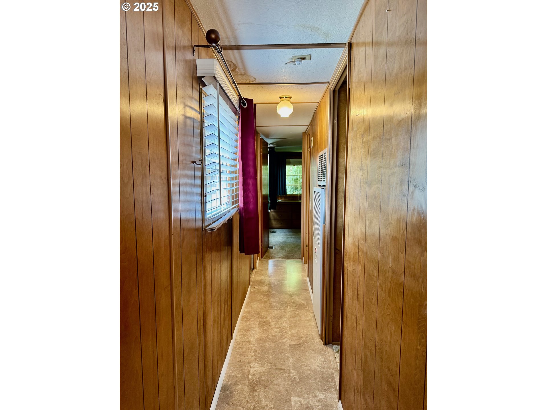 Enjoy life in a 1960's retro time capsule for adult folks. This is a step back into a simpler life and a beautiful setting. It has been well maintained by past owners with just minor upgrades. The biggest and the best improvement is a new heat pump installed in 2023. This home was placed on this lot in 1967, I do believe. Most of the homes in this park are from the 1960's and are very art deco in their style. A very unique group of homes. There is a paved driveway along the east side, of the home,long enough for 2 cars to park in line.There is a nice large bump out in the living room area with lots of windows and the original real wood paneling that was very popular in the 60's and is in very good condition. The home has been professionally cleaned so is move in ready. The 2nd bedroom is being used as the laundry room and there is a walkin shower in the bathroom. There are two covered porches at the front and back doors. There are large windows throughout the home to let in lots of natural light, especially in the kitchen which you enter through an arch way.The park had its beginnings in the 60's and has a freshly updated Community Center. Come and make yourself comfortable in these beautiful surrounding. Maybe the most important thing is LOCATION,LOCATION. So close to everything. Bus lines, stores and lots of places to eat. Pets can be allowed and there is a new fenced dog park for them.