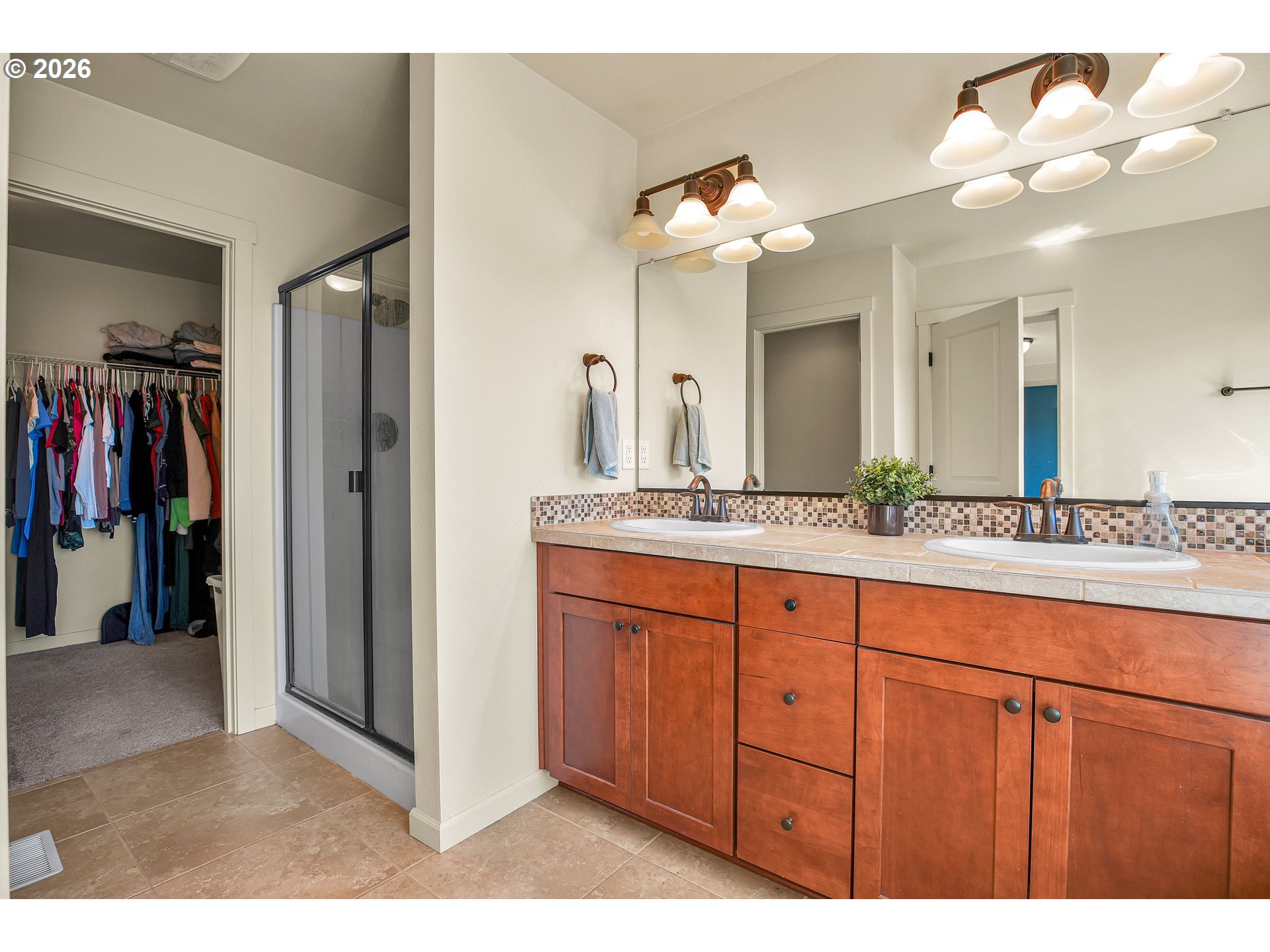Beautiful two-story 5 bedroom 3 full bath traditional home featuring soaring ceilings and generously sized rooms throughout. Thoughtfully designed with a bedroom and full bathroom on the main level—perfect for guests or multi-generational living.The custom-remodeled kitchen is a standout, complete with quartz countertops, stainless steel appliances, gas range, a large pantry, decorative backsplash, and stylish floating shelves that add both function and modern charm, generous sized peninsula to entertain at or enjoy your morning breakfast. Enjoy seamless indoor-outdoor living with a spacious covered patio ideal for dining and entertaining year-round.The inviting living room offers a cozy gas fireplace framed by custom built-in cabinetry. Upstairs, the spacious primary suite includes dual sinks, a step-in shower, and a walk-in closet. All additional bedrooms are well-sized and versatile.Outside, the fully fenced backyard provides privacy and room to relax or play. Conveniently located near parks, walking trails, shopping, and dining.Enjoy the feel of a like-new home—without the high cost of new construction.