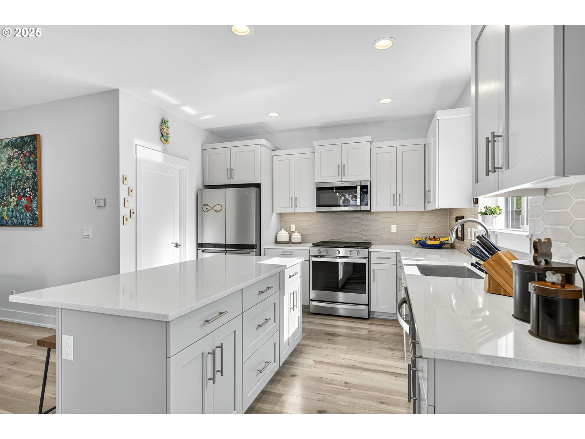 Dishwasher, Disposal, FreeStandingGasRange, FreeStandingRefrigerator, GasAppliances, Island, Microwave, Pan