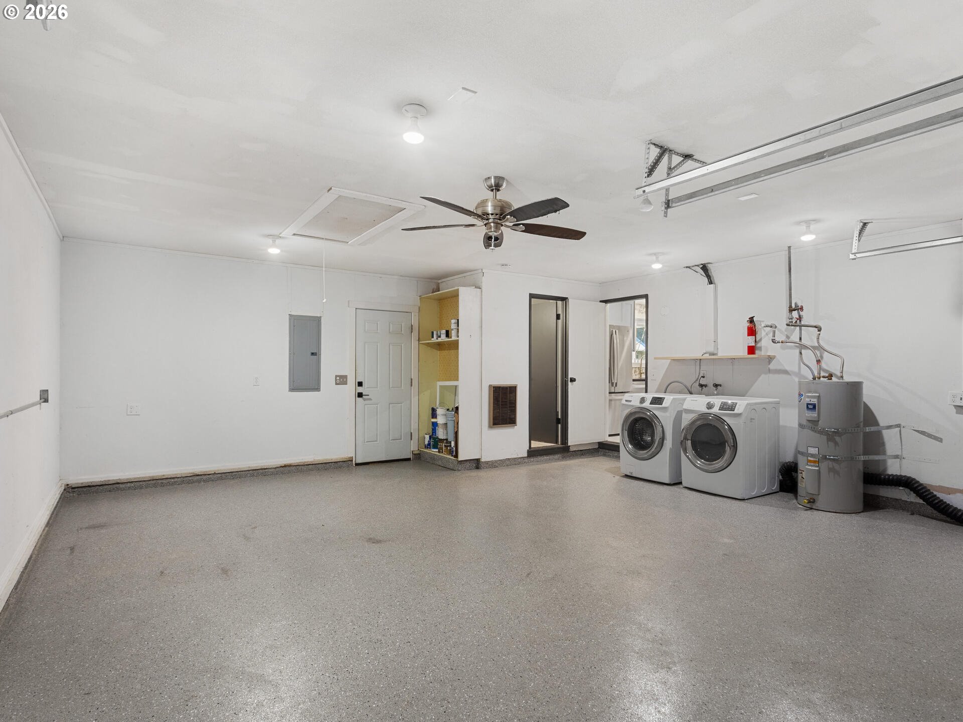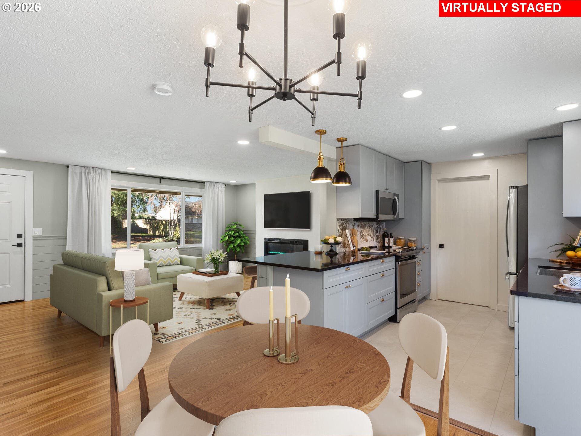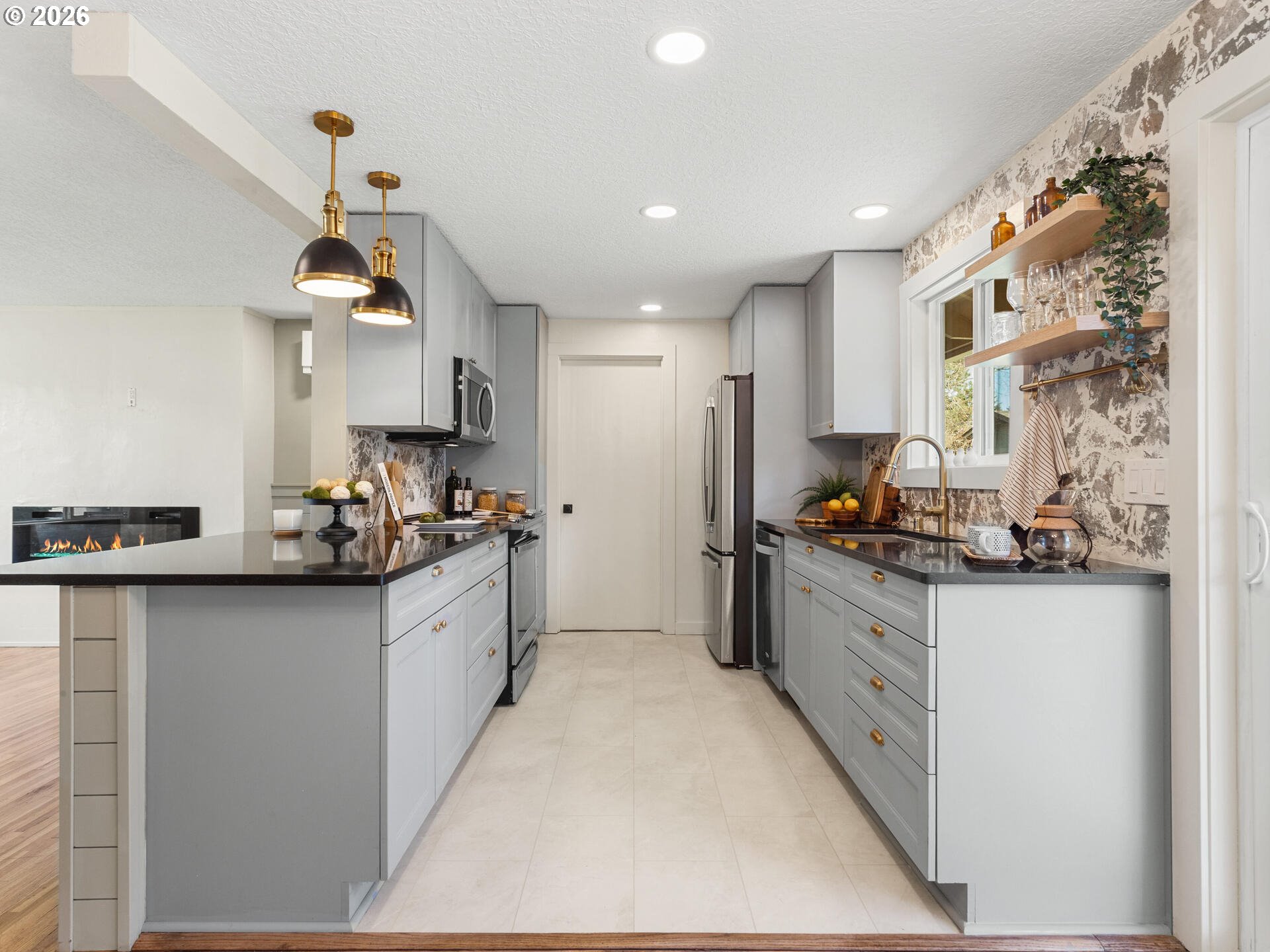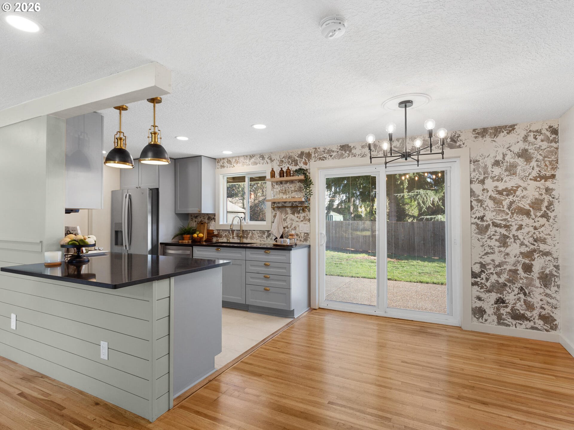 Step into timeless style with this 1966 mid-century modern gem in Vancouver, WA. This thoughtfully designed 3-bedroom, 1.1-bath home blends classic details with everyday functionality, featuring clean lines, natural light, and refinished original hardwoods throughout living spaces and bedrooms. The interior, completely refreshed in 2023 with new kitchen cabinets, fixture's, appliances & modern quartz countertops; an electric fireplace; completely painted interior, new interior & exterior light fixtures; new modern vanities & fixtures in both baths. The oversized garage with an epoxy-coated floor offers versatility, making it ideal for parking, a workshop, home gym, or a potential hangout space. Sitting on an oversized corner .26-acre lot, the property offers exceptional outdoor space—perfect for gardening, entertaining, or future expansion. The fully fenced backyard includes side double gates making access to the back easy for storage and space to store all the toys. A shed in the back yard provides additional room for tools as well. ADU Potential-buyer to do due diligence. A convenient location in an established Vancouver neighborhood, close to the hospital, parks, restaurants, stores and the freeway!