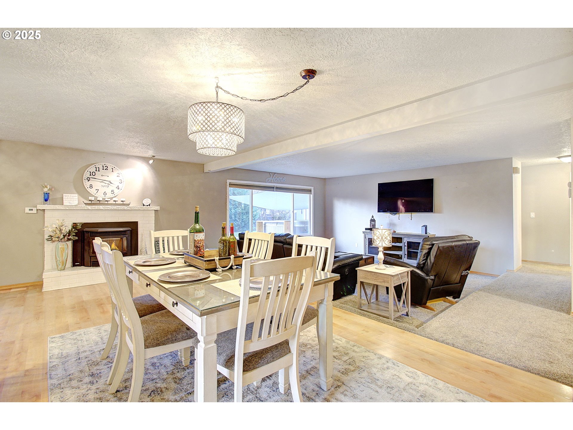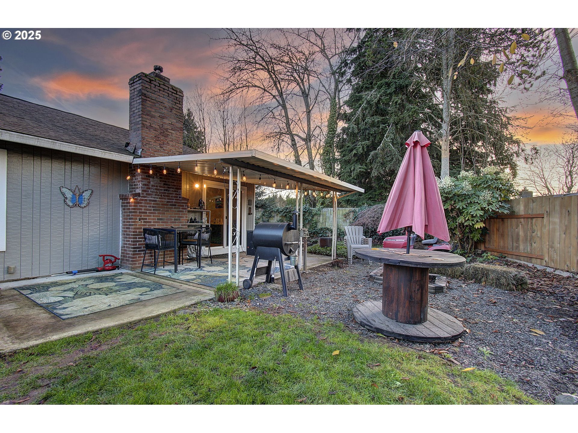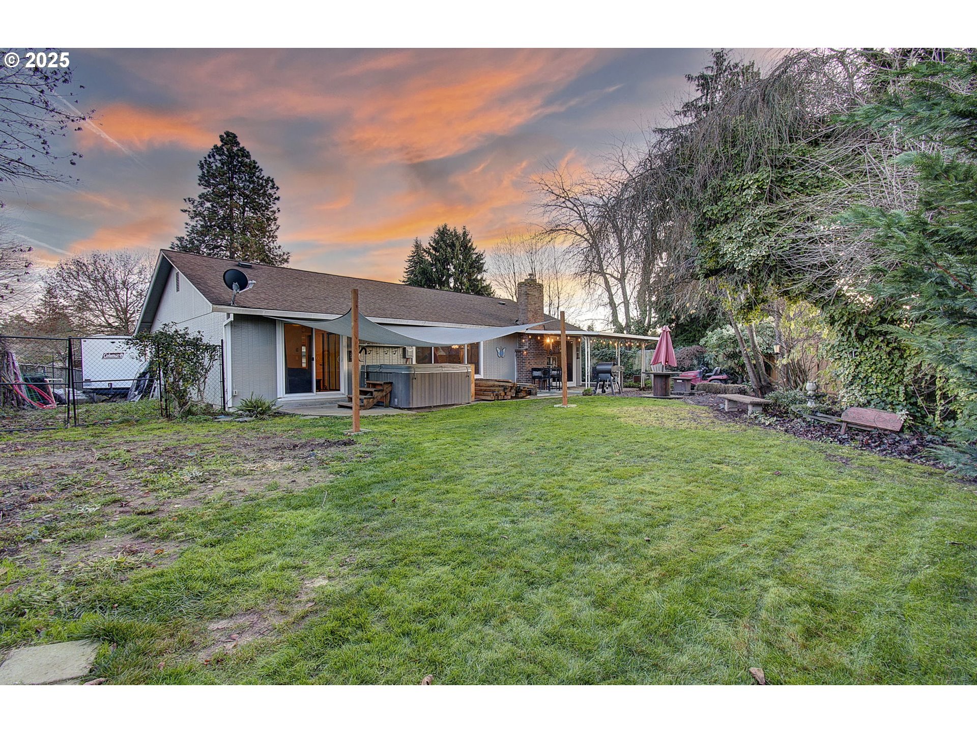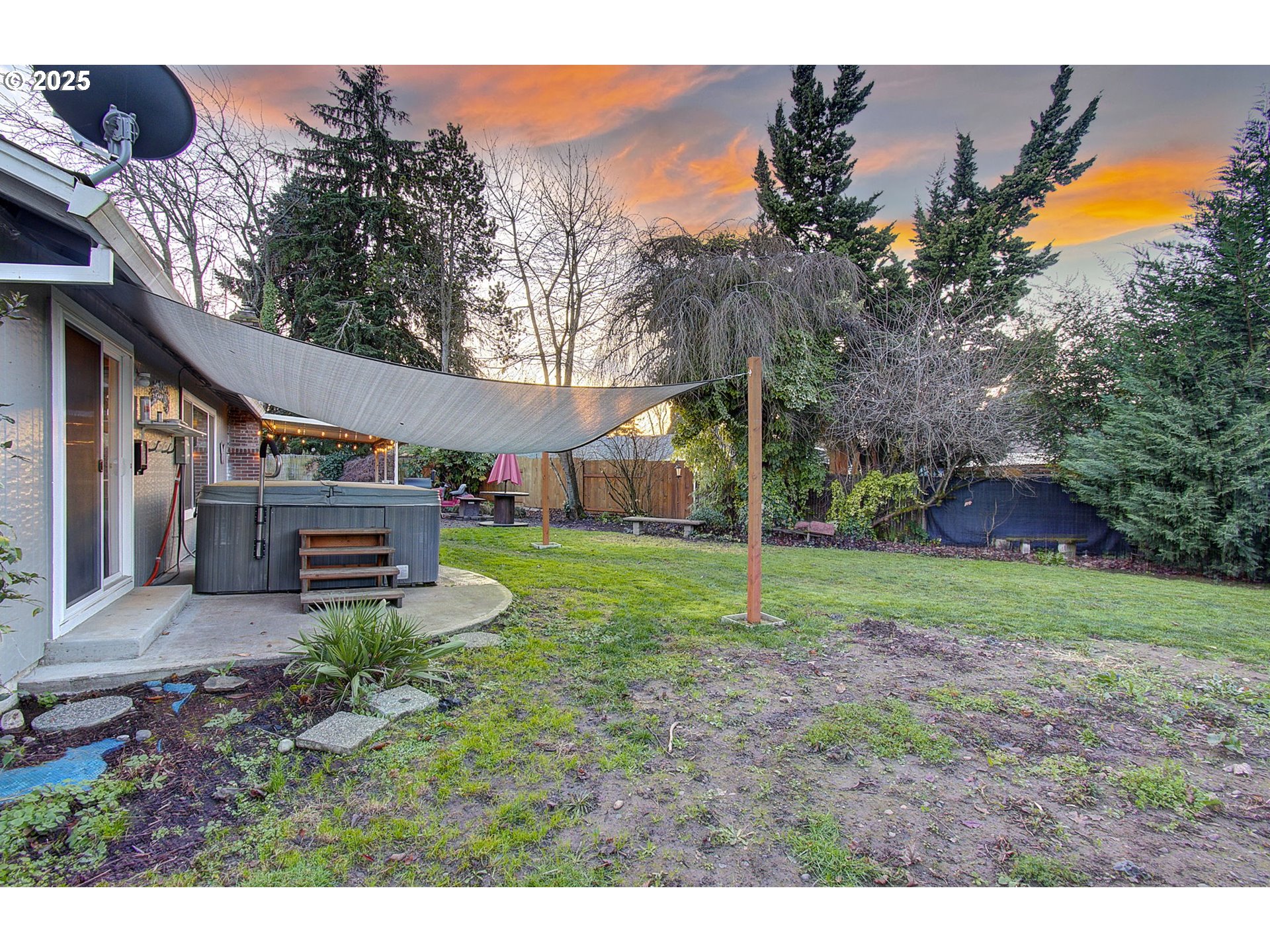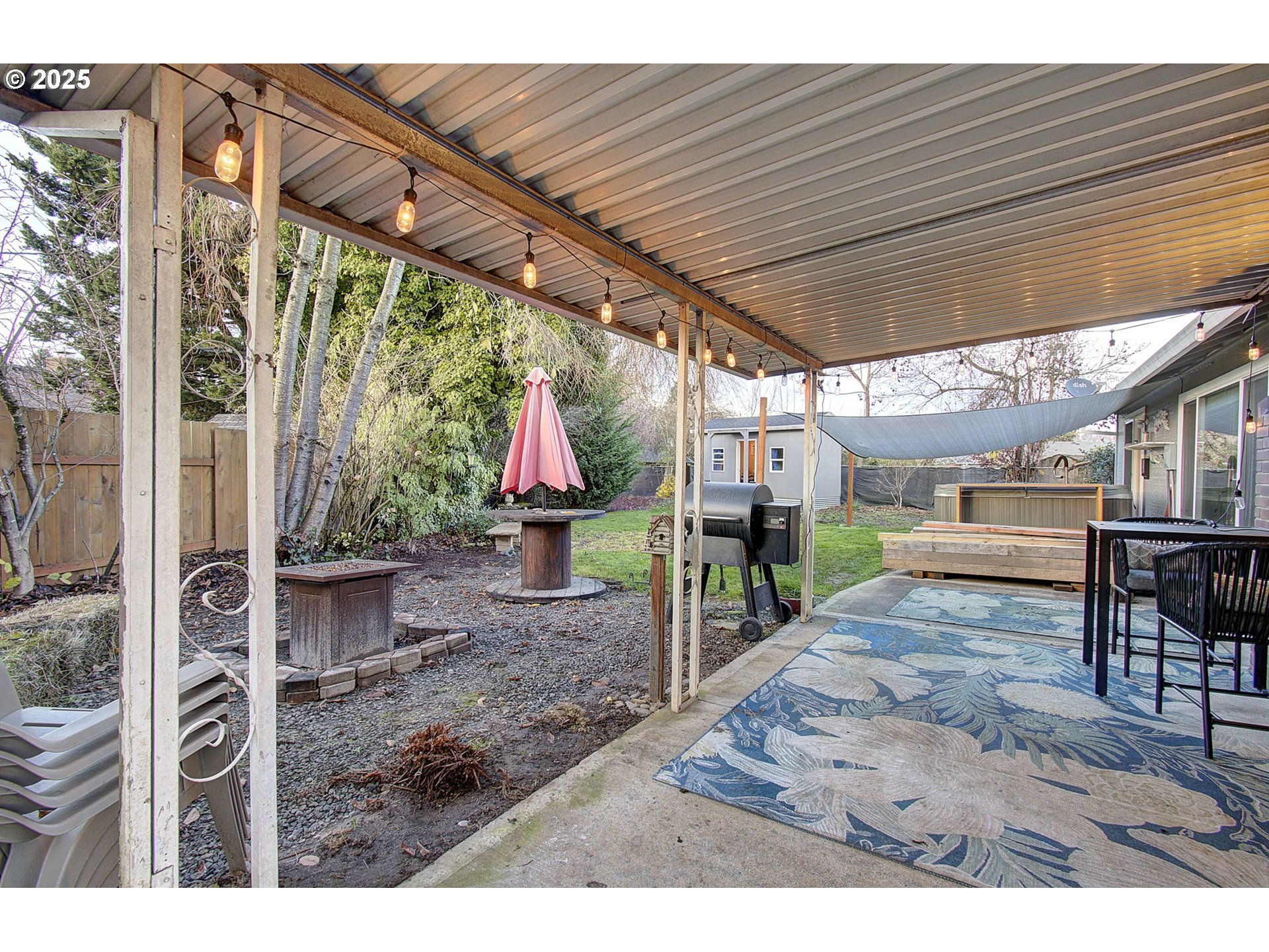 Great location, Great floor plan, Great neighborhood! Lovely single level with open living room, dining room and additional eating bar at kitchen make this home great for entertaining. Enjoy game nights or movie nights warmed by the newer Pellet stove/fireplace! 3 bedrooms, 2 baths, large laundry room and pantry. Outside there's a covered patio, a large hot tub off primary (with slider access), great shed in back and a spot for another shed with base ready to build on. Nice size fenced yard great for pets, kids or adults! Peaceful neighborhood thats close to i5, shopping & eats. Please check with your agent regarding "shed" in back. Time to come home to easy living!