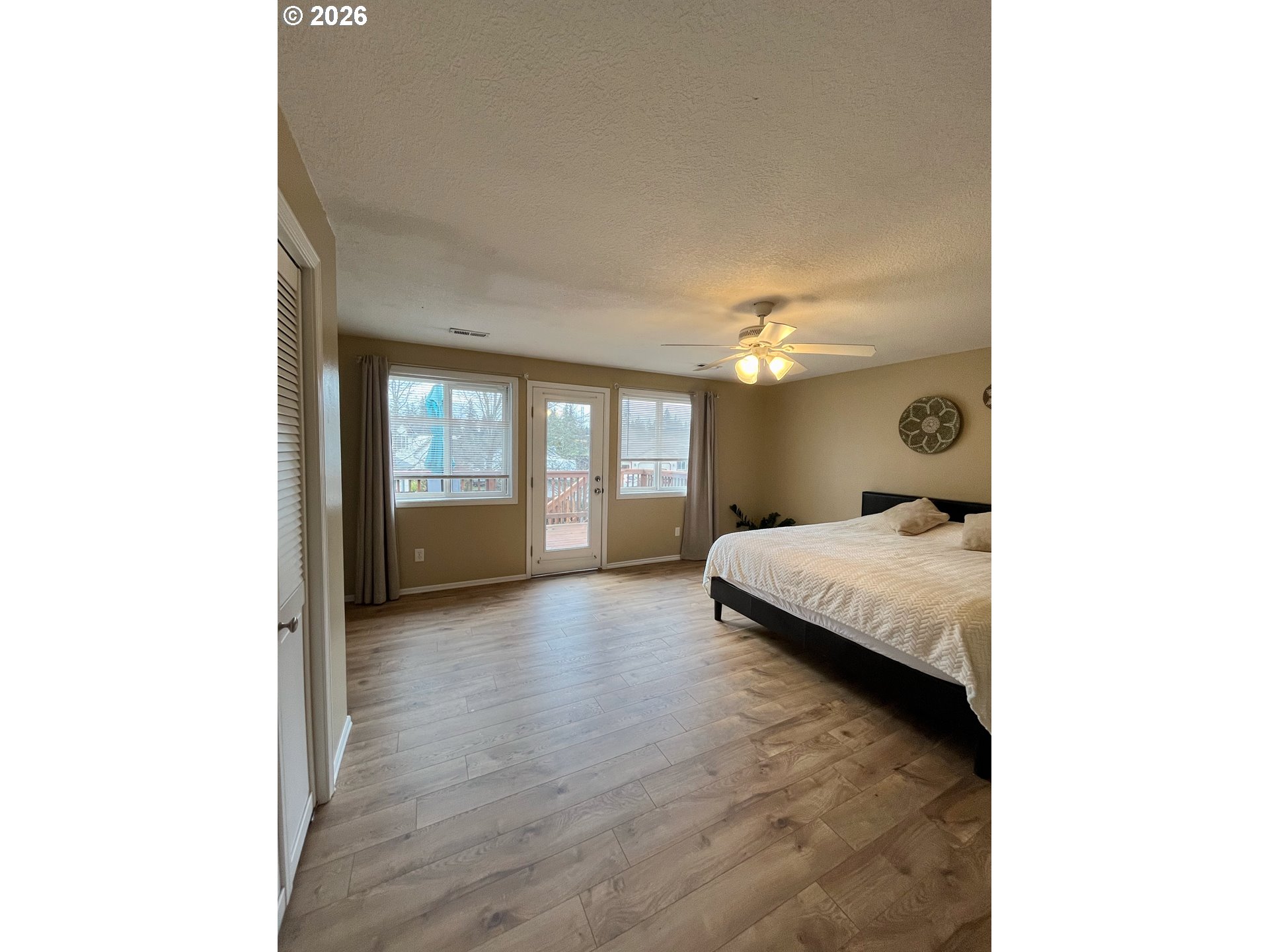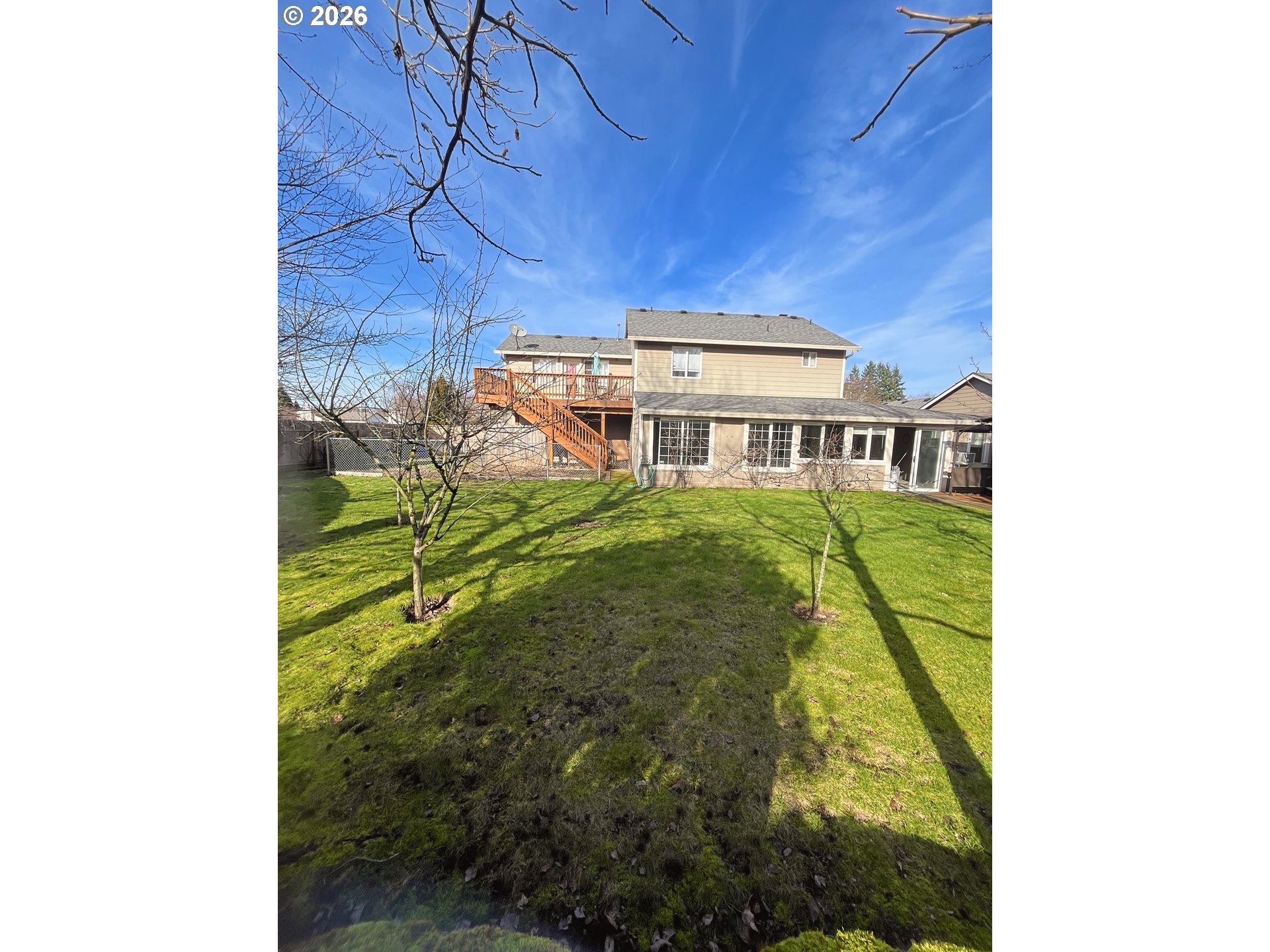 This exceptional 4-bedroom 2.5 bath home is nestled on a spacious corner lot at the end of a peaceful dead-end street—a rare opportunity in this highly sought-after neighborhood. Thoughtfully updated with fresh paint, luxury vinyl flooring, and modern fixtures throughout. Recents updates also include a new roof and siding within the past 7 years and newly inspected and cleaned HVAC system. The home features open-concept living spaces, a wood-burning fireplace, granite countertops in the kitchen. Large master with en-suite updated with travertine tile and walk-in closet. 4th bedroom can be a large bonus area and has a private deck with access to the backyard. Additional living space includes over 200 sq. ft. of fully enclosed patio/sunroom for entertaining in all seasons. Outside, enjoy a fully fenced yard with mature fruit trees and berry bushes (plum, apple, peach, cherry, blueberry, raspberry, strawberry, currant) plus a large garden area and a sprinkler system. Practical amenities include a three-car driveway plus fenced RV parking and two large storage shops. Located in a quiet, friendly neighborhood with long-term homeowners.