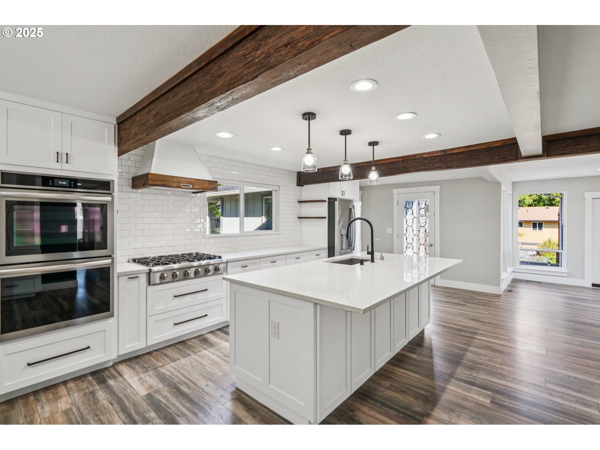 Remodeled Mid-Century home in Felida, designed to impress with floor-to-ceiling windows, abundant natural light, and a full remodel. The open living and dining areas showcase an electric fireplace framed by a wood accent wall. The kitchen features built-in ovens, a gas cooktop with a custom hood, a large quartz island, and an adjoining flex space—ideal for casual dining or a family room. Decorative door off the kitchen leads to the larger of two decks, perfect for indoor-outdoor living. The private primary suite sits at the back of the home, complete with a walk-in closet and luxurious ensuite bath. Two additional bedrooms, one oversized with two closets, a full bath, and an oversized laundry room offer exceptional storage, perfect for a butler's pantry. Unique touches include a root cellar for long-term storage of food or wine, and exposed beams in the kitchen add to the original charm. Outside, you’ll find a two-car garage, additional parking pad, covered carport, and X-large RV parking— accommodating up to six vehicles with ease. Don't forget the large shed out back with space for a dog run and garden! Large lot and mature yard spaces with tons of potential for uses. Convenience of being close to amenities and great schools!
