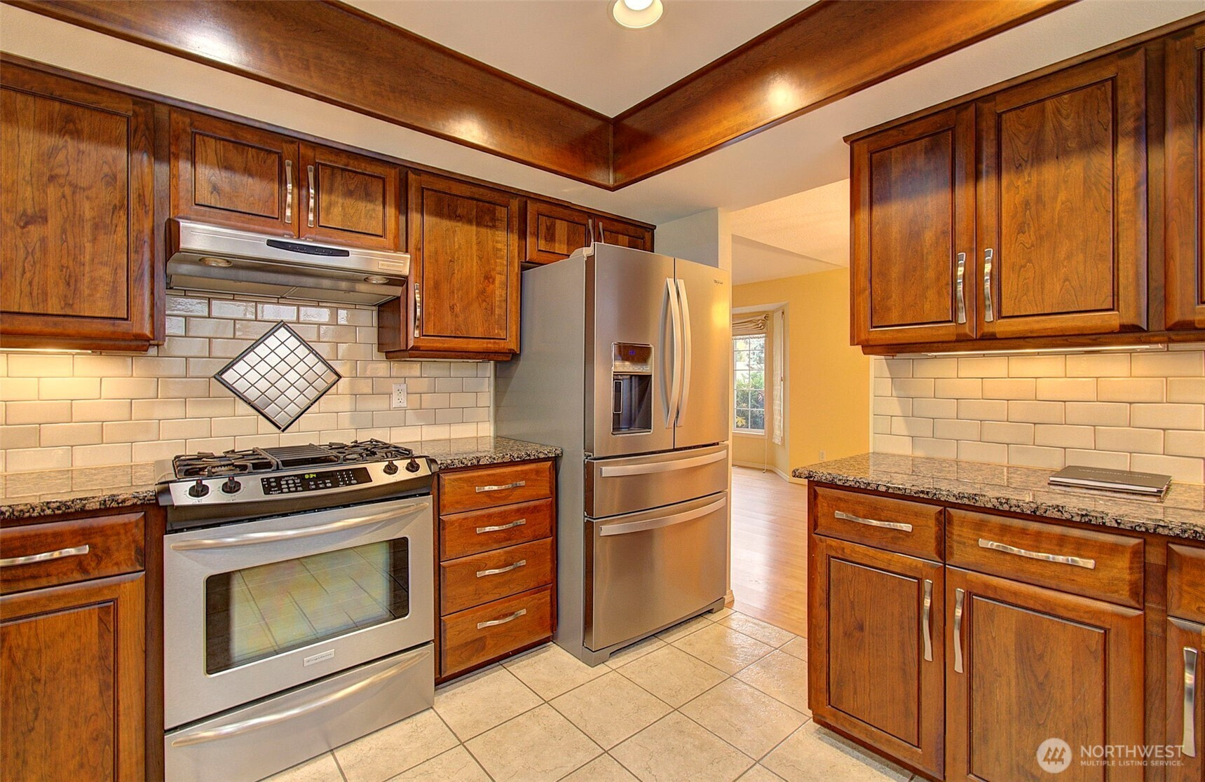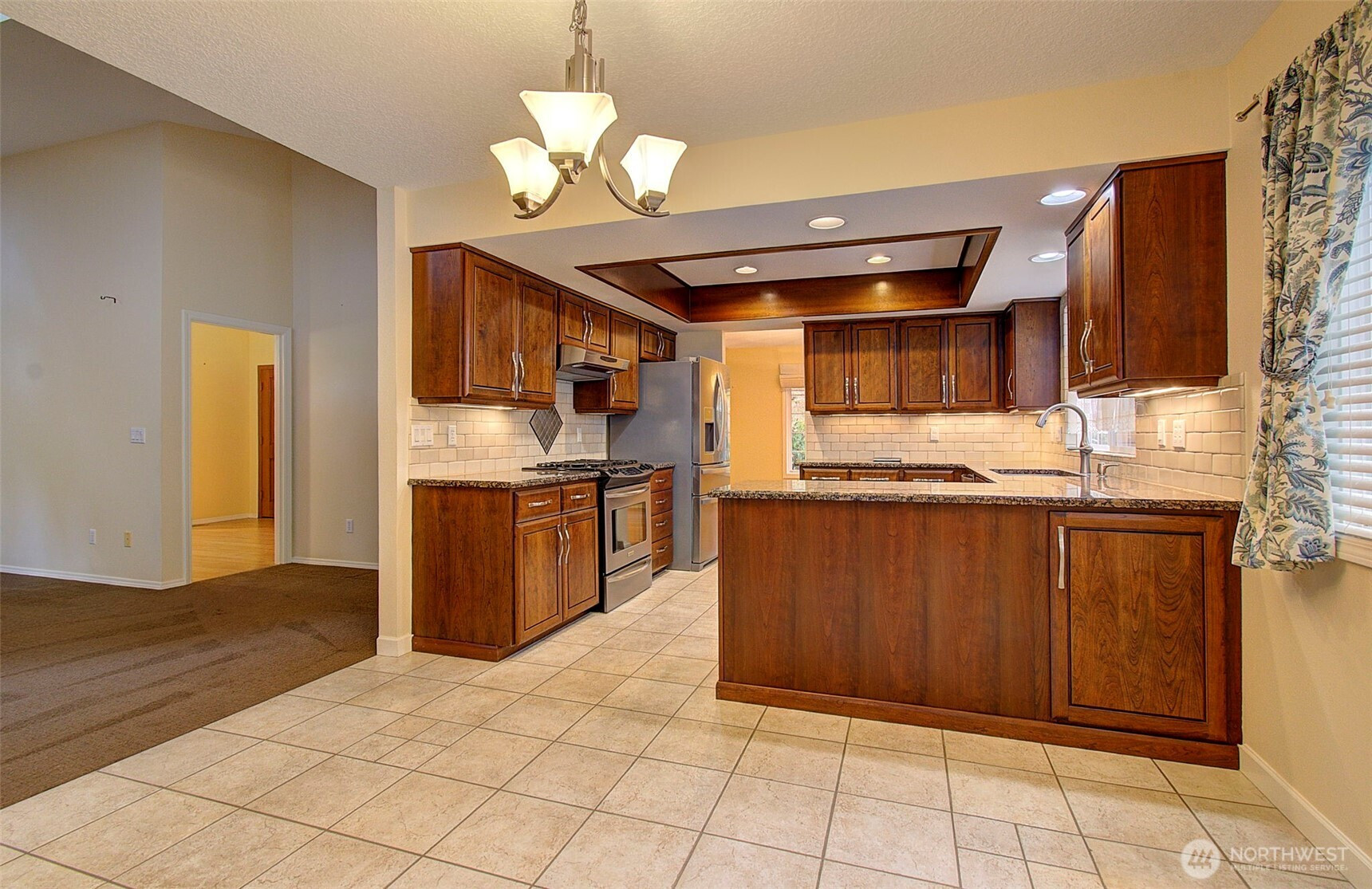 This beautifully maintained 3-bedroom, 2-bath single-level home offering comfort, function and natural light throughout. Featuring a spacious 3-car garage and a permitted sunroom, this home has room for all your needs. Inside, enjoy a large living room with a gas stone fireplace, a family room, and a formal dining area and skylights throughout. The open kitchen features a gas range, stainless steel appliances, granite counters, and tile floors that flow into an eating nook space. The primary suite offers a walk-in shower, double sinks, and a generous closet. A utility room with built-ins adds convenience. Outside, enjoy a large front yard and a low-maintenance backyard with a covered patio and ceiling fan—ideal for year-round relaxation.