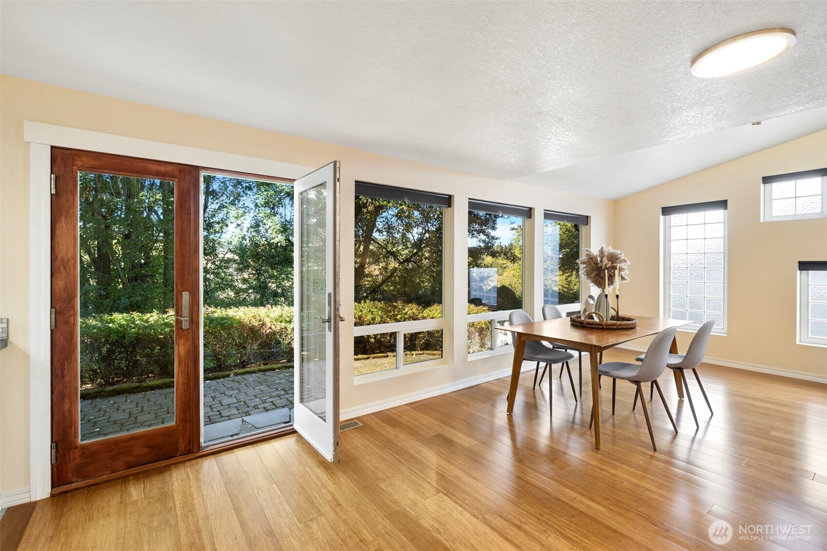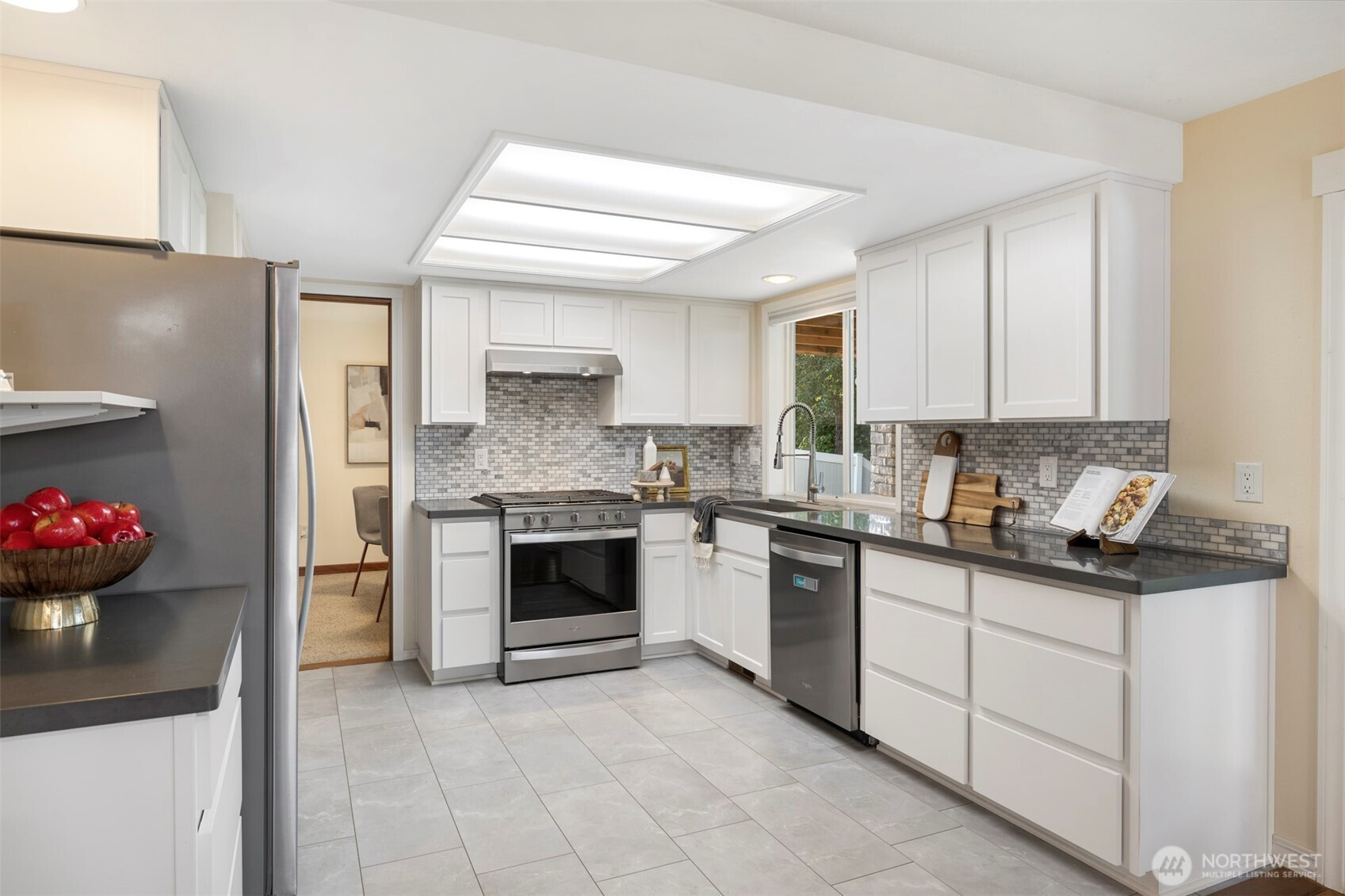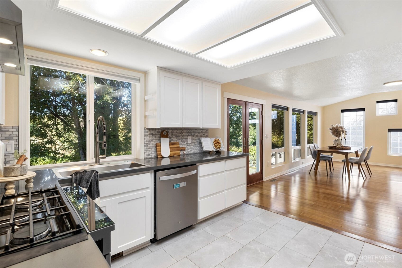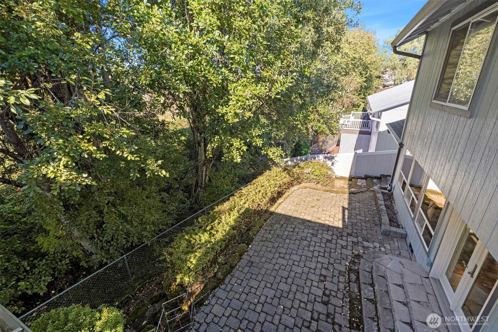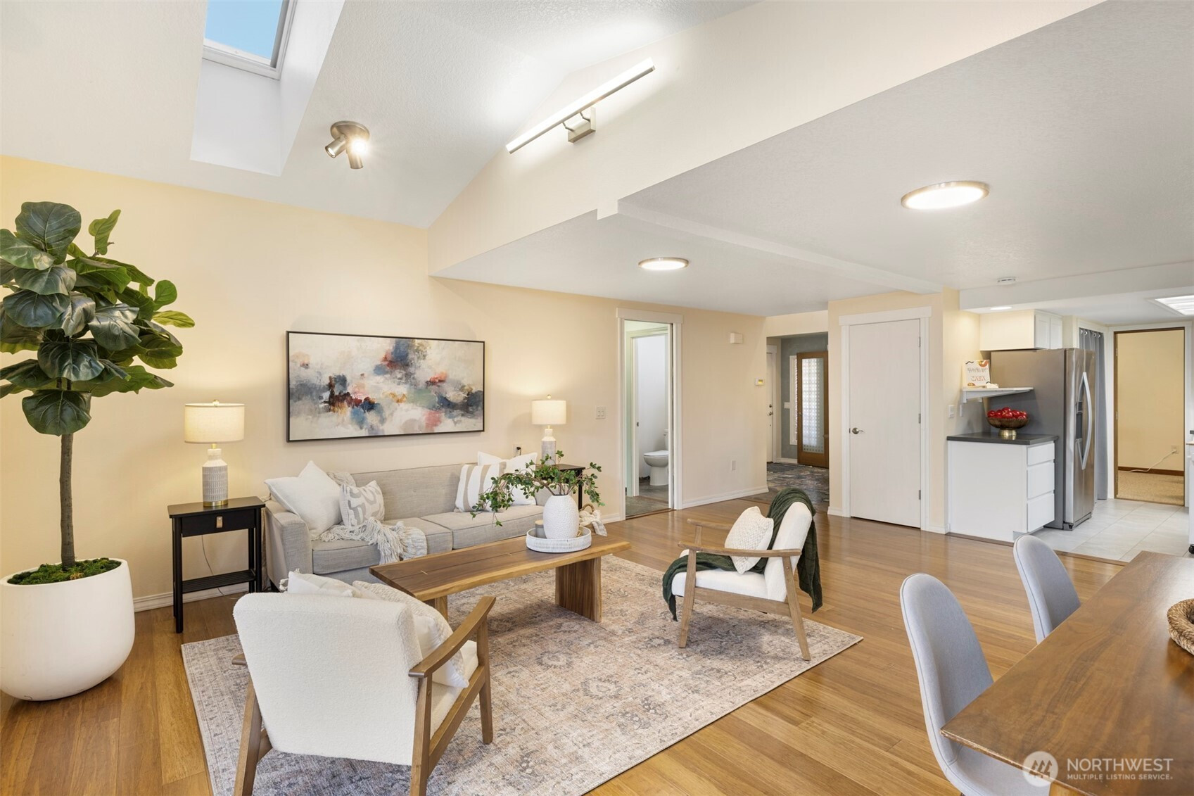 Beautifully updated and thoughtfully designed, this well-maintained home blends style, comfort, and a peaceful natural setting. The vaulted family room is filled with light from large windows overlooking greenspace, while the refreshed kitchen offers solid-surface counters, white cabinetry, and stainless steel appliances. Enjoy a cozy living/dining area with plantation shutters and access to a covered patio—perfect for entertaining. Upstairs, the spacious primary suite features a private deck, walk-in closet. This home has numerous updates for peace of mind: new furnace (2024), rebuilt A/C unit (2025), new backflow system (2025), Terrafirma drainage system (2021), and a water filtration system.