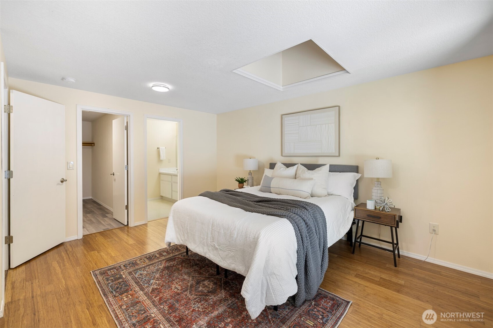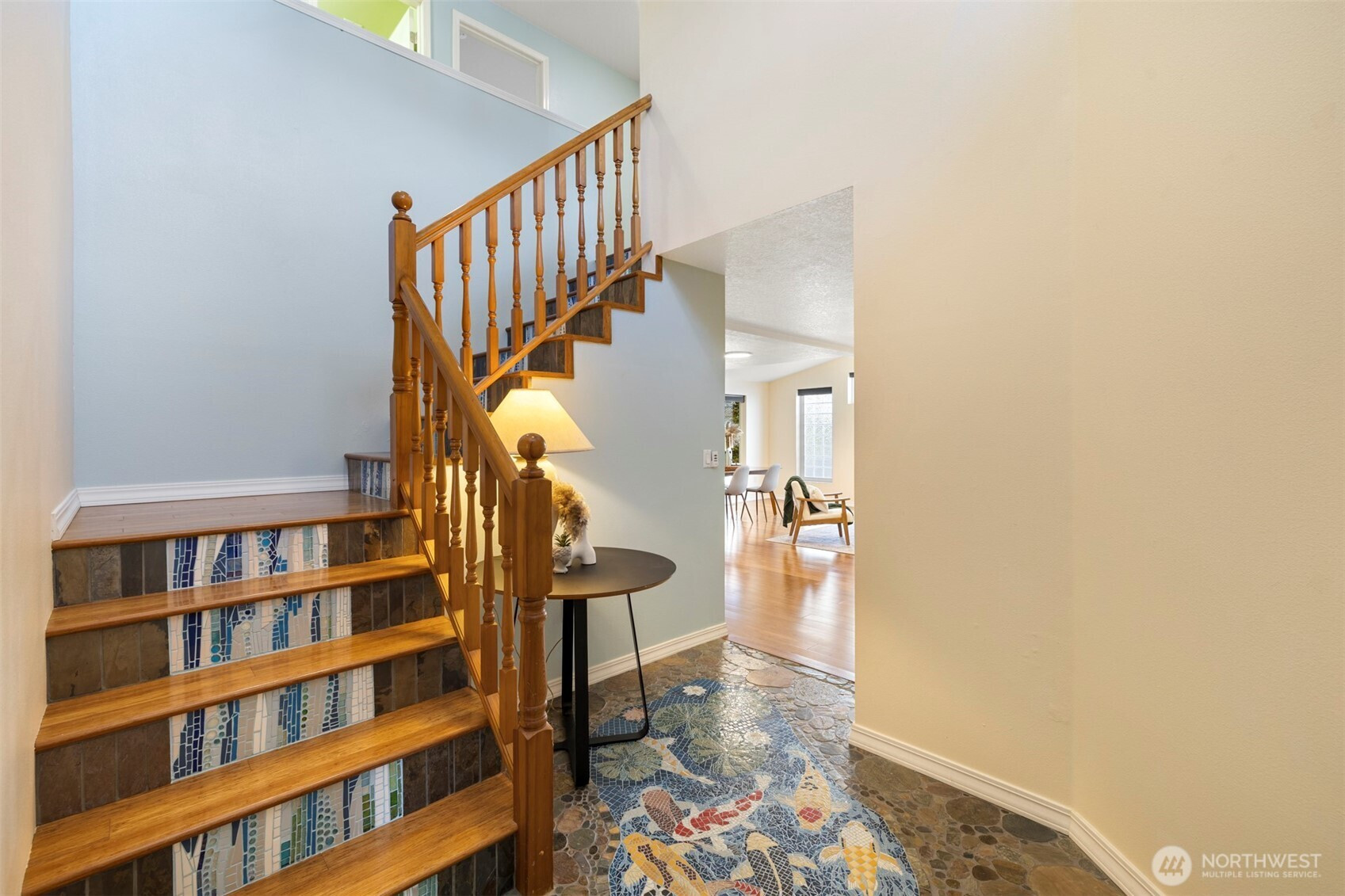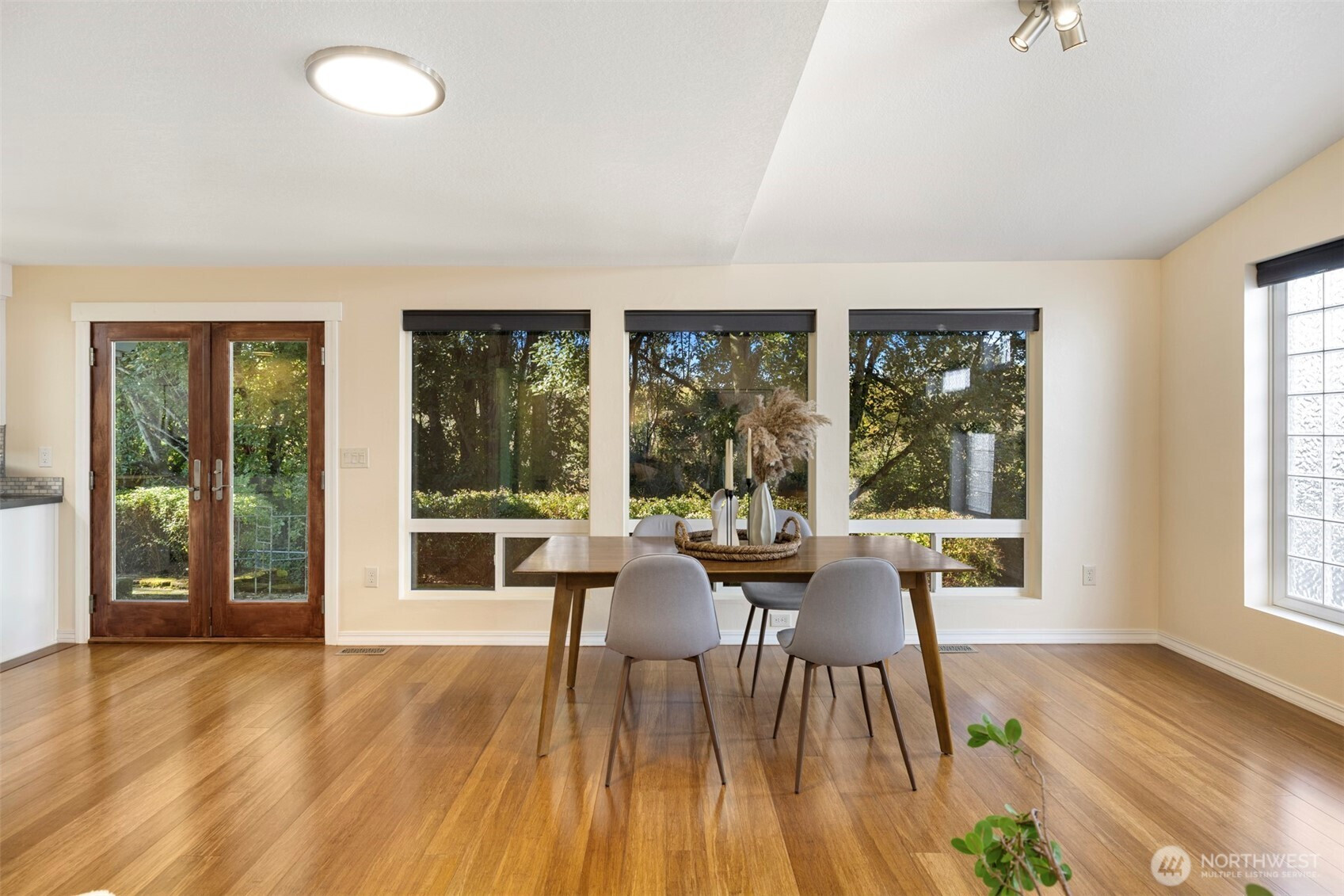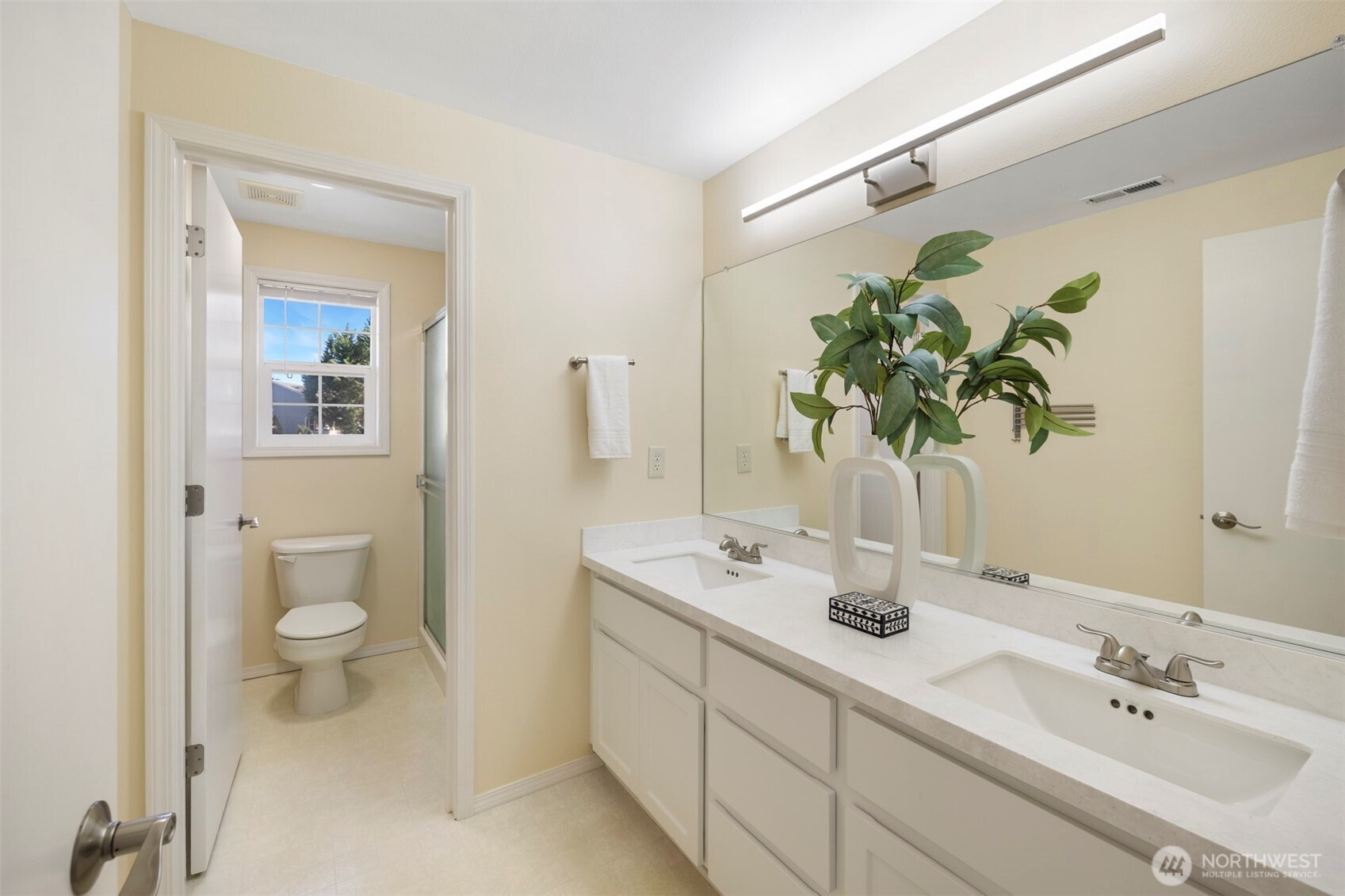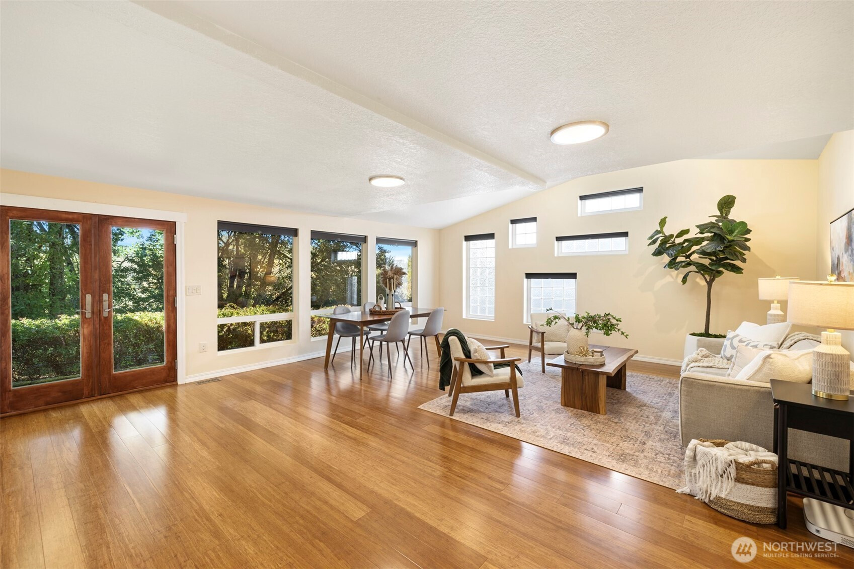 Beautifully updated and thoughtfully designed, this well-maintained home blends style, comfort, and a peaceful natural setting. The vaulted family room is filled with light from large windows overlooking greenspace, while the refreshed kitchen offers solid-surface counters, white cabinetry, and stainless steel appliances. Enjoy a cozy living/dining area with plantation shutters and access to a covered patio—perfect for entertaining. Upstairs, the spacious primary suite features a private deck, walk-in closet. This home has numerous updates for peace of mind: new furnace (2024), rebuilt A/C unit (2025), new backflow system (2025), Terrafirma drainage system (2021), and a water filtration system.