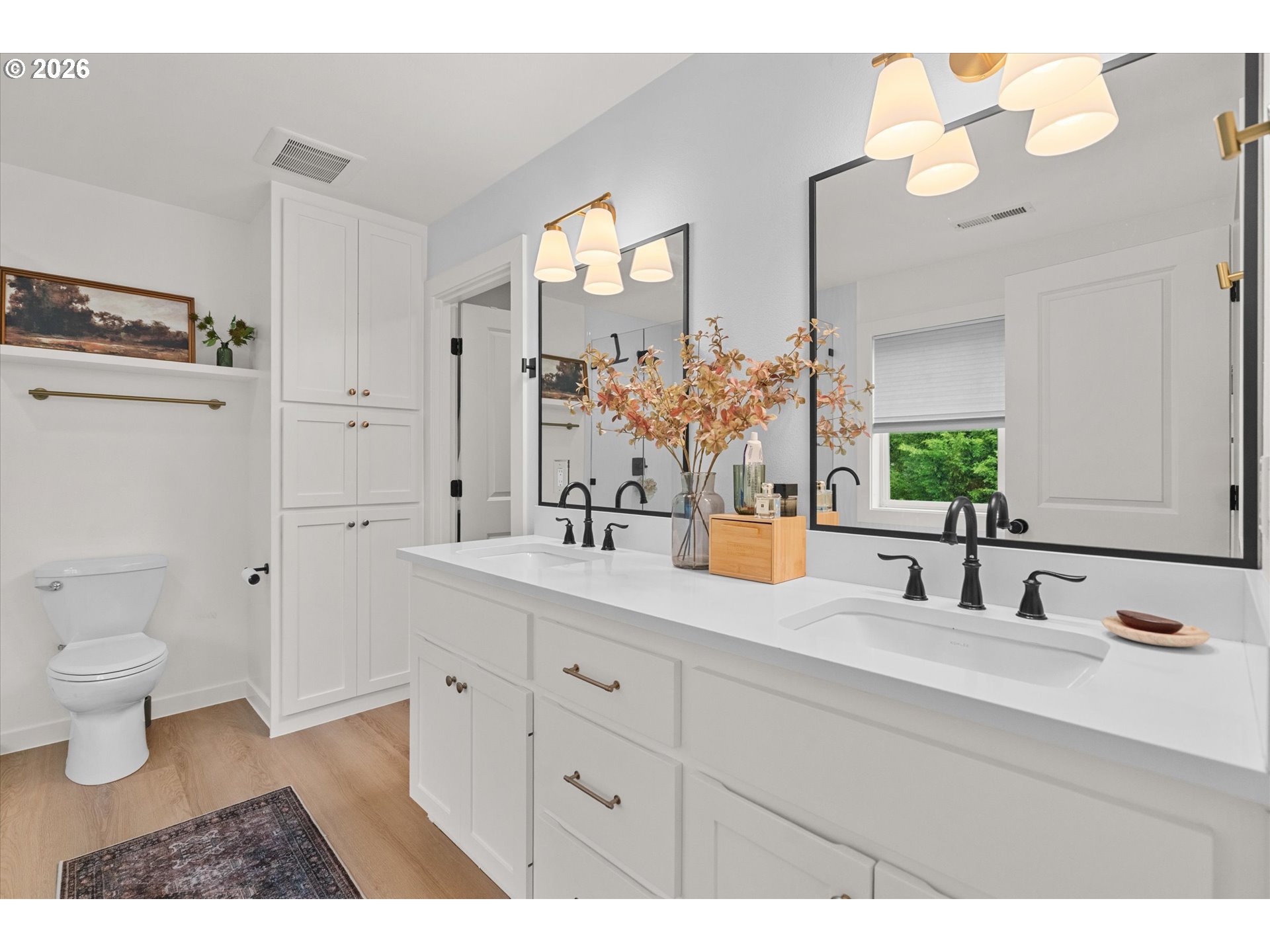 (503) 893-8874Located in the sought-after Enzler Meadows community, this elegantly reimagined home sits on a beautifully landscaped almost half-acre and offers access to 20 acres of private trails and scenic ponds. From the moment you enter, a striking staircase with iron railing sets the tone for refined, elevated living. The light-filled main level showcases 8 foot ceilings, expansive luxury vinyl flooring, sophisticated finishes, and a seamless flow designed for both everyday comfort and elegance. The spacious kitchen features a large island, generous storage space and stainless steel appliances with a 6 burner built in range, built in oven and microwave. Opening to a warm and inviting family room with a statement gas fireplace and formal dining room adds a layer of timeless elegance, while the versatile main-level bonus room offers flexibility as an additional space or bedroom, guest space, gym or office.Upstairs, you’ll find three well-appointed bedrooms, a dedicated office with solid wood built-ins. The luxurious primary suite designed as a private retreat, complete with a spa-like feel and freestanding soaking tub and walk in closet.The outdoor space offers a serene, usable yard with mature landscaping and two storage sheds, ideal for relaxing or entertaining.A 3-car garage, RV and boat parking, RV Hook up, a newly poured concrete driveway, and a new roof (2021). All electrical updated throughout the home. A rare opportunity to own a home that combines elegance, thoughtful design, and a premier neighborhood setting.Every detail reflects quality craftsmanship and warmth you feel as soon as you enter. Welcome Home!