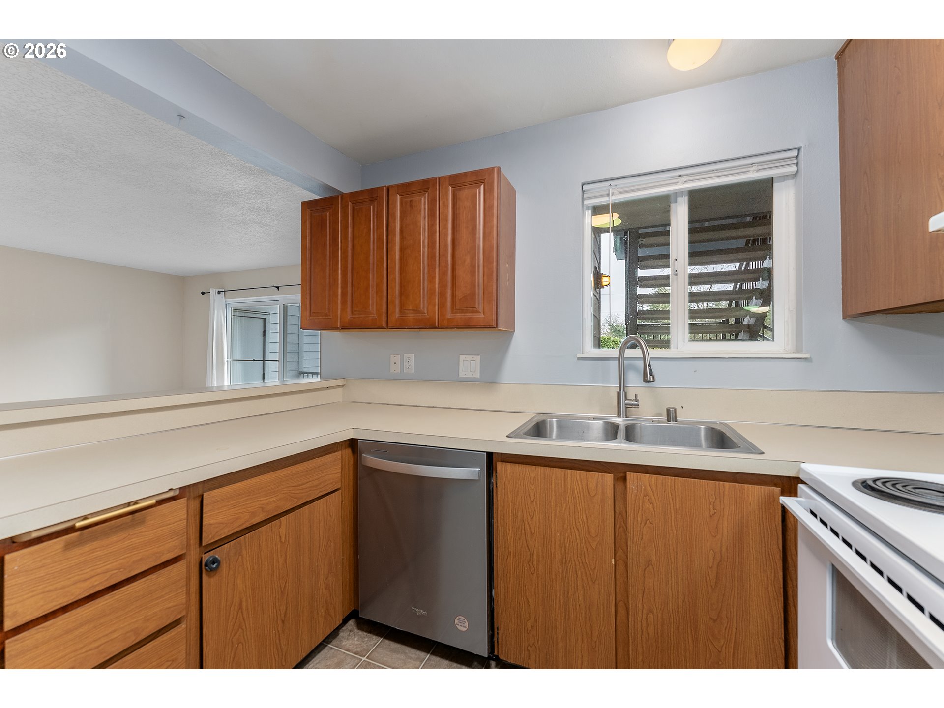 Charming one-level condo offering comfort and convenience nestled in a quiet, wooded Vancouver neighborhood! This 2-bedroom, 2-bath home features an open living and dining area with sliding doors leading to a private patio, perfect for relaxing or entertaining. The kitchen includes a free-standing range, refrigerator, built-in dishwasher, and tile flooring. The primary bedroom features an attached bathroom and closet, while the second bedroom offers flexibility for guests or a home office. Enjoy community amenities, including an in-ground pool, a meeting/party room, and common-area maintenance. HOA covers exterior maintenance, management, water, sewer, and trash for easy living. Recent updates to the complex include new roof, siding, exterior painting, deck railings, windows, attic insulation, and updating the pool to salt water. Seller to pay balance of special assessment in full at closing. Conveniently located near shopping, dining, and everyday amenities.