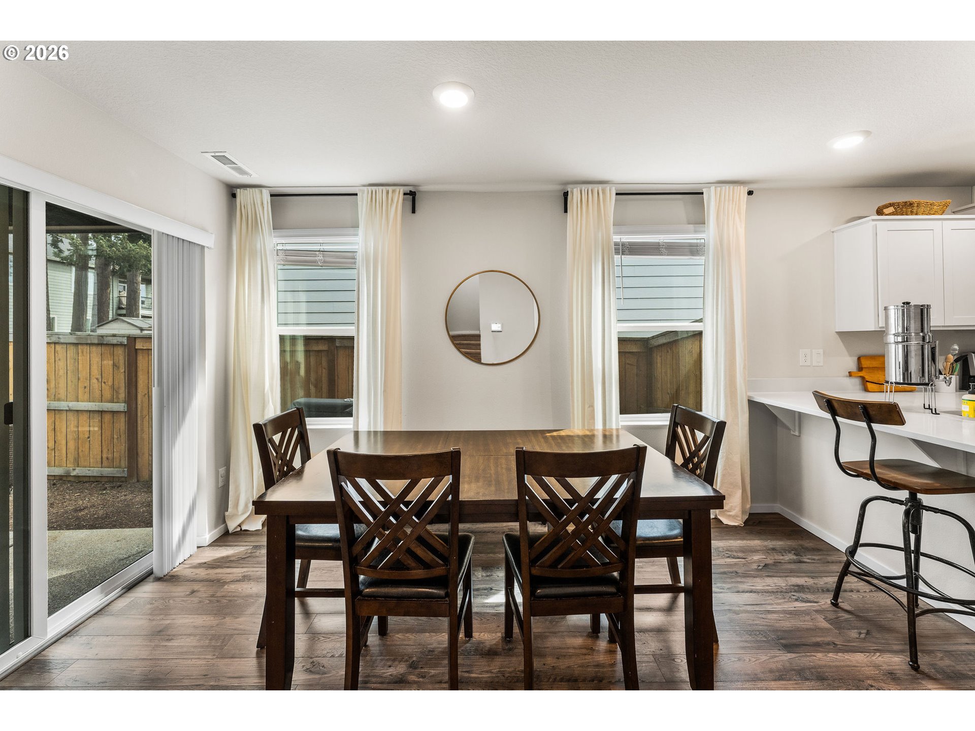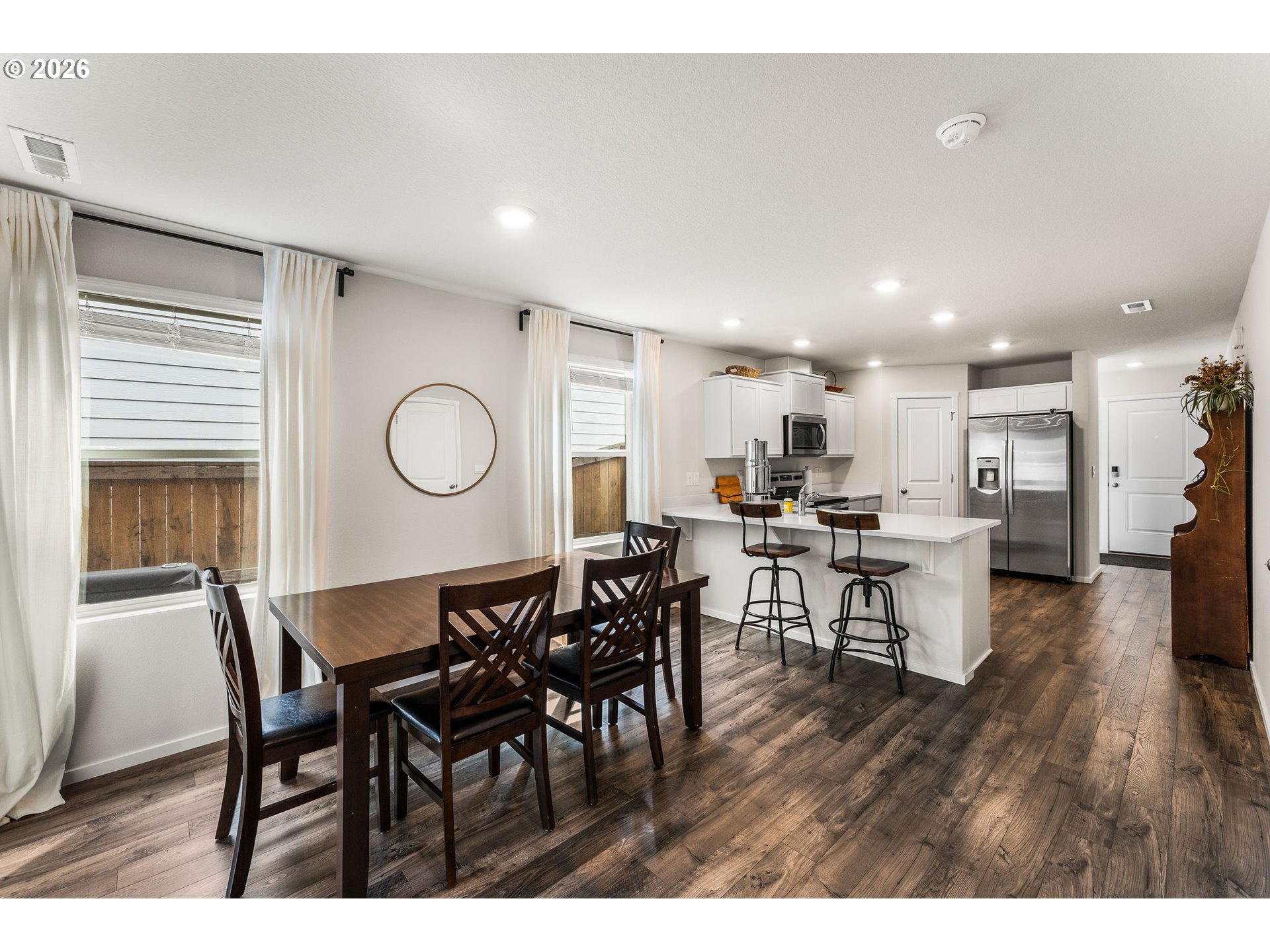 Better-than-new resale opportunity in the SOLD OUT Saddle Club Estates! This beautifully maintained home offers 3 bedrooms and 2 baths, thoughtfully designed for both comfort and functionality. Enjoy a welcoming mudroom with built-in storage, a modern kitchen featuring quartz countertops, shaker-style white cabinetry, pantry, and generous counter space with a breakfast bar, perfect for everyday living and entertaining. The main level showcases easy-care laminate flooring, while upstairs you’ll find a spacious primary suite with a walk-in closet, well-sized secondary bedrooms, and a conveniently located laundry room just steps away. Step outside to a fully fenced backyard with a covered patio which is ideal for year-round gatherings. The community offers great amenities including a playground and basketball court, and you're just a short walk to Dogwood Park. Located close to everyday conveniences like WinCo, Costco, Fred Meyer, local dining, coffee shops, and more, this home truly has it all. All appliances included, including refrigerator, washer, dryer, blinds, and window coverings. Move-in ready and waiting for you!