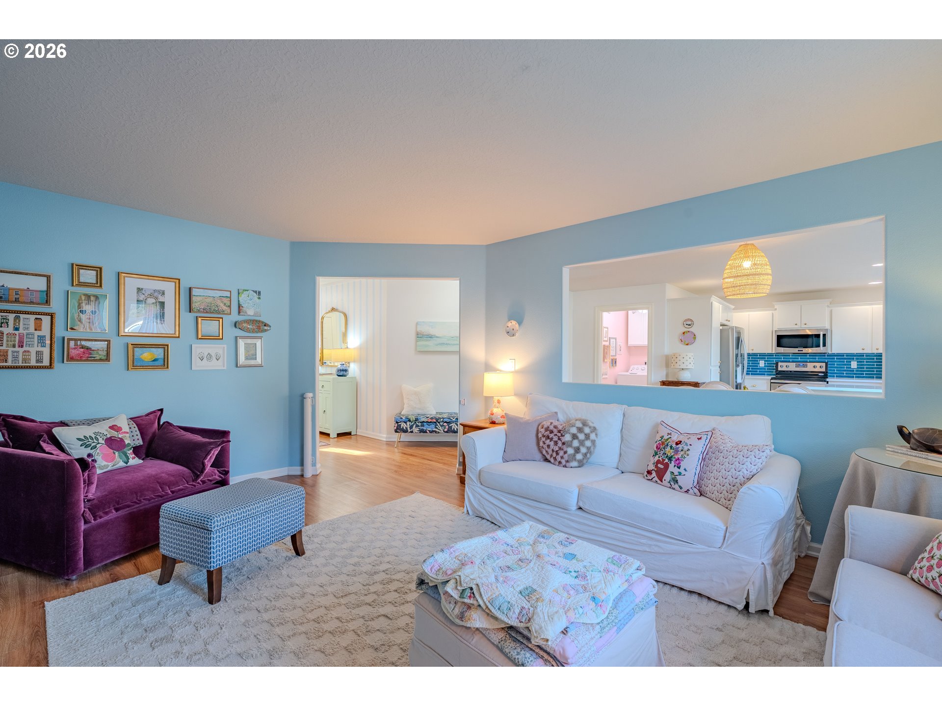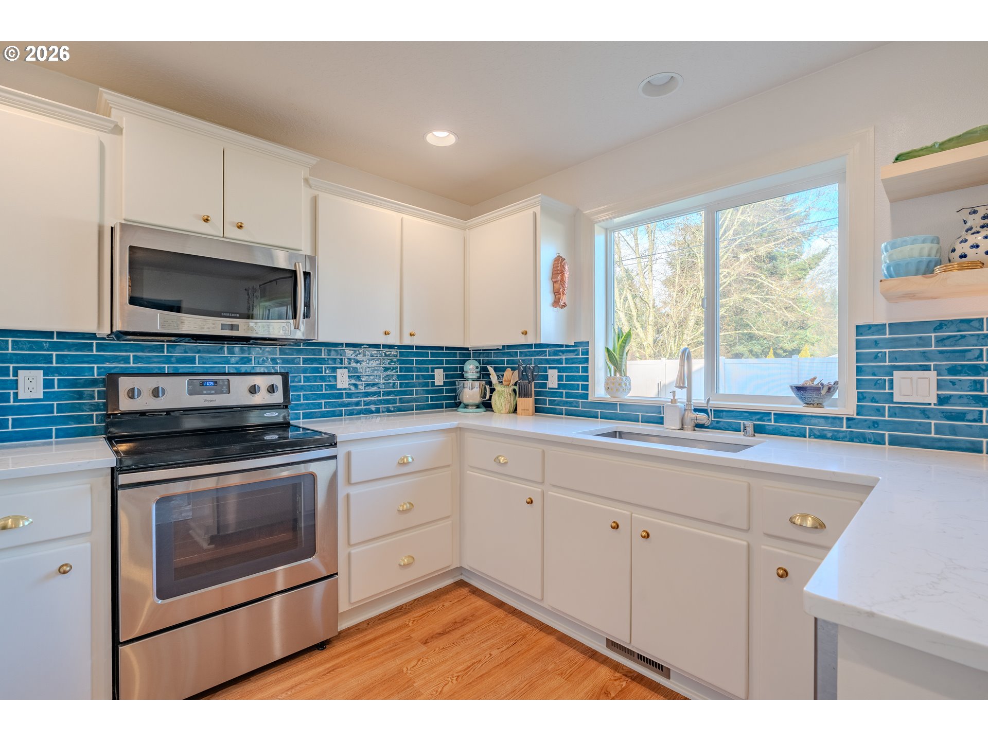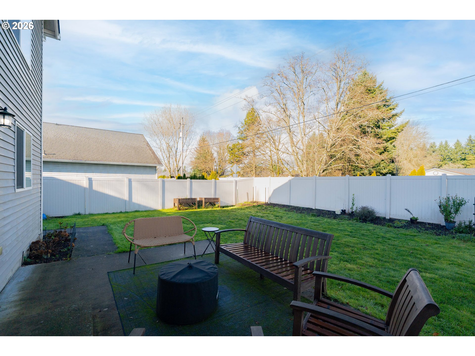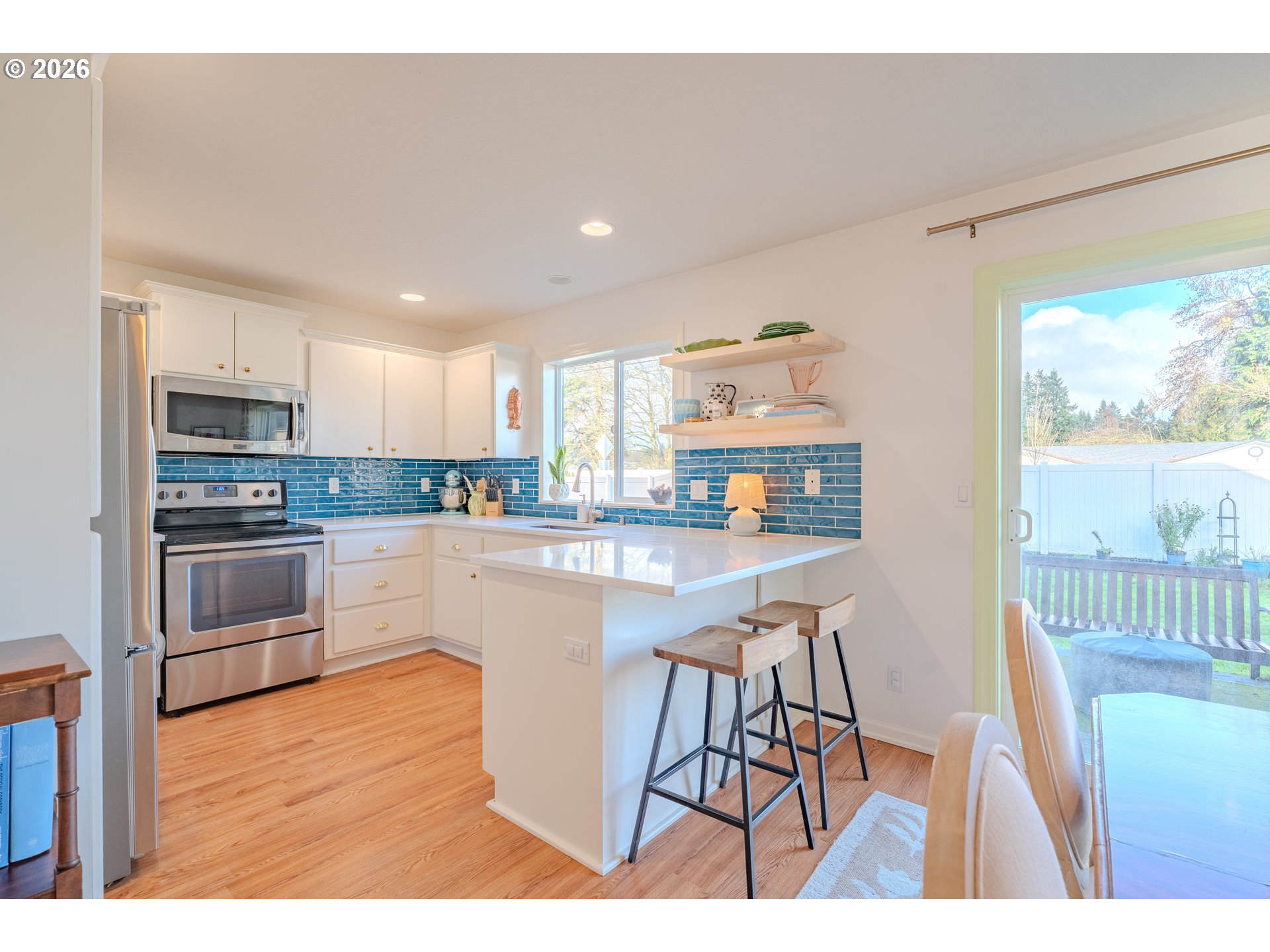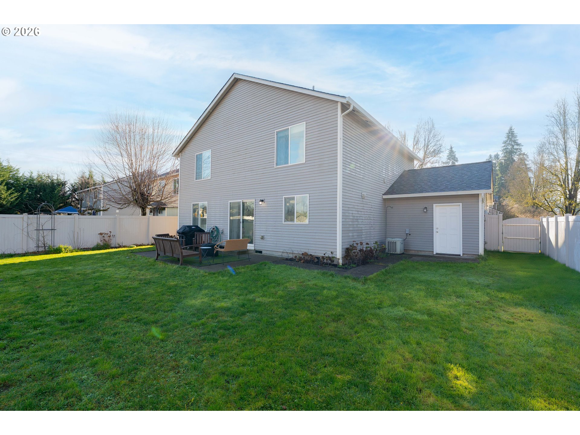 Fresh start, fresh style—welcome home. Built in 2004 and offering 1,972 sq ft, this well-maintained 4-bedroom, 2.5-bath home is tucked away on a private flag lot with a fully fenced backyard designed for both function and enjoyment. A welcoming entry opens to light-filled living spaces accented with cheerful, personality-filled colors—no bland gray here. The updated kitchen features quartz countertops, tile finishes, and stainless steel appliances, while refreshed bathrooms provide modern style and comfort. Laundry on the main level adds everyday convenience, and the fenced backyard includes garden beds and an outdoor sprinkler system, creating an easy-care outdoor space to enjoy year-round. 2 YR old roof ensures peace of mind in your new home.