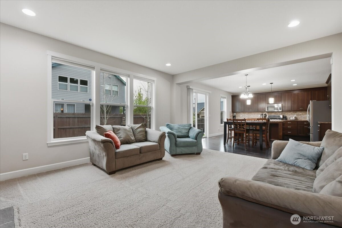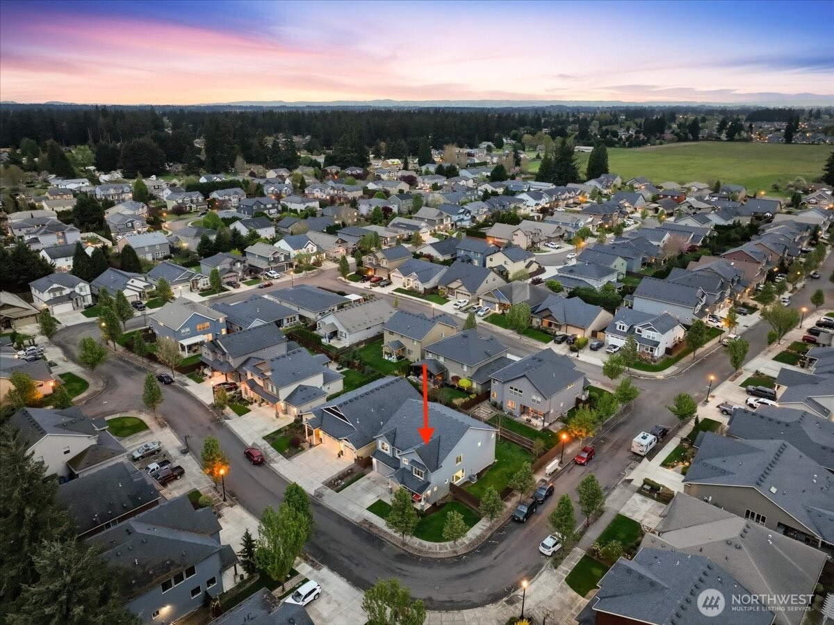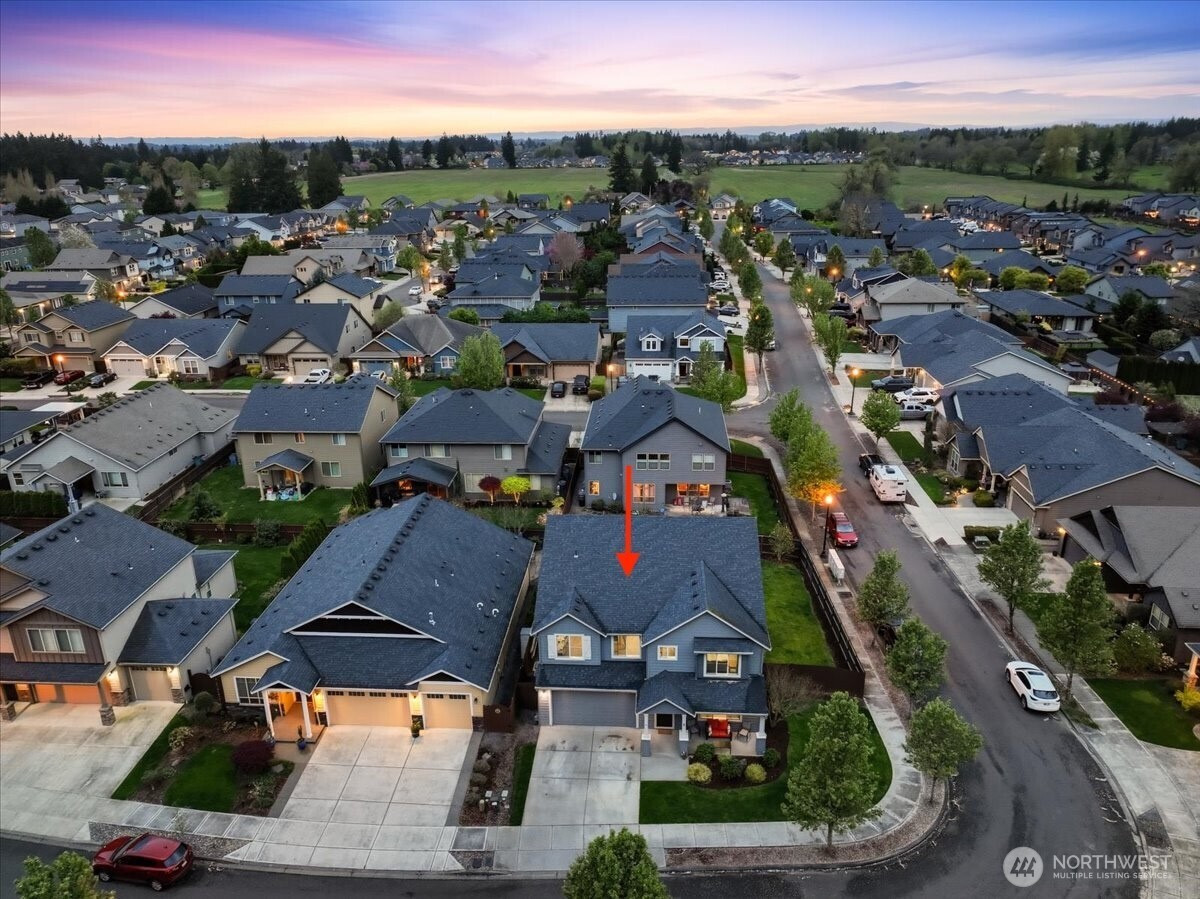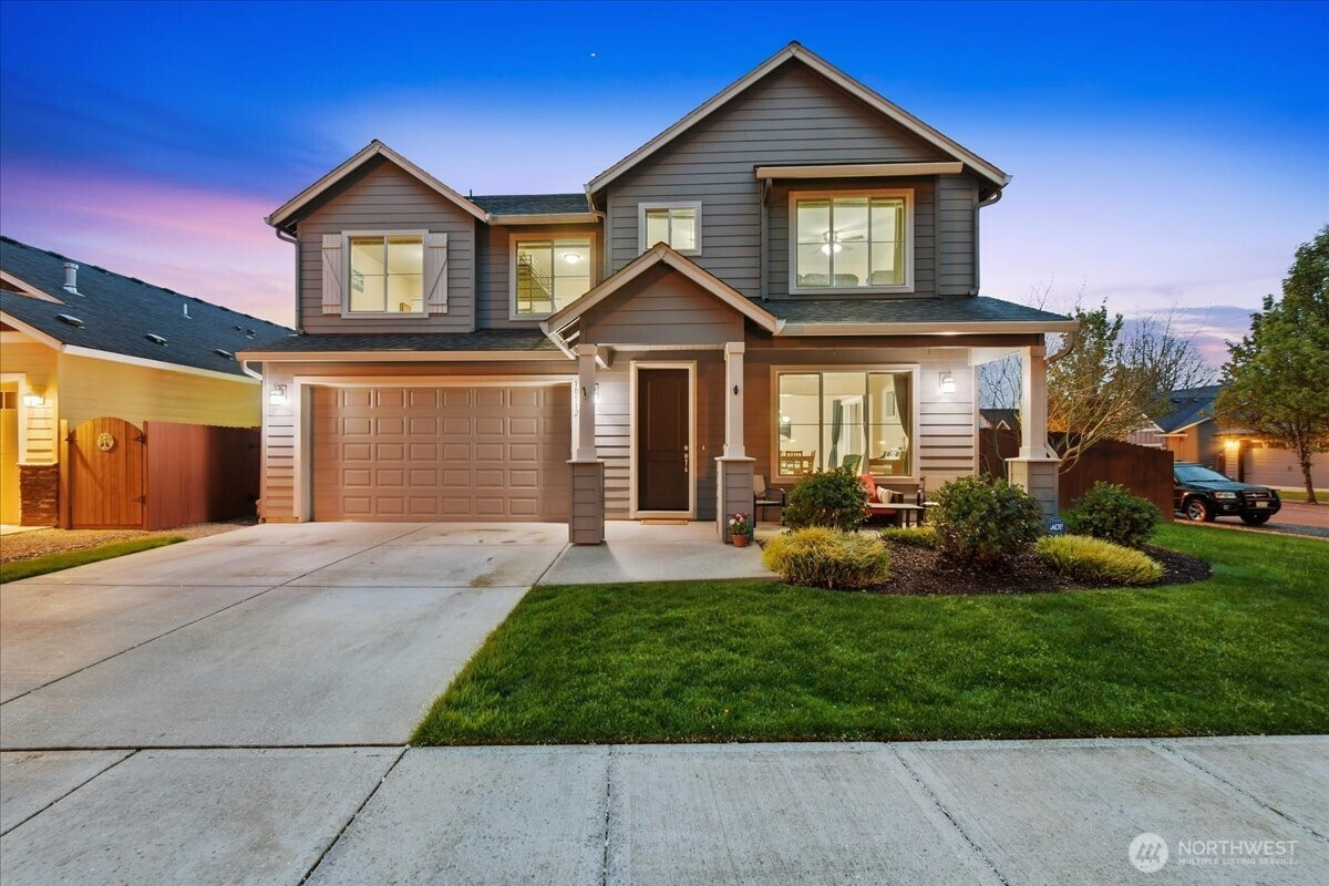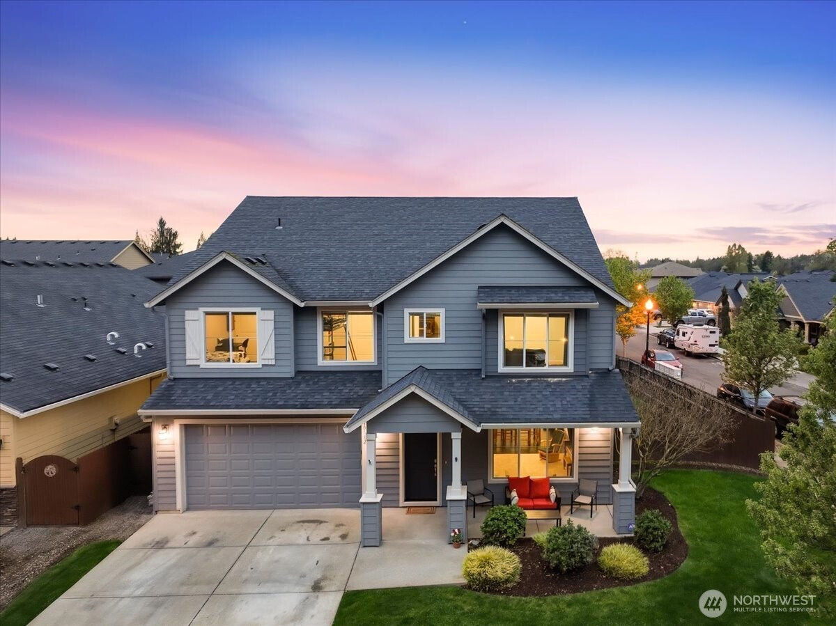 The word spacious just doesn't do this 5-bed, 2.1-bath home enough justice. On the main level, 1540 sqft of high-ceilinged, open & flowing design offer a sense of calm coziness. Rich & sturdy engineered hardwood floors in the kitchen and dining areas are balanced by carpeted living spaces, providing a smooth sense of transition between formal and casual areas of the main. The kitchen offers granite counters, a walk-in pantry, and an island with double sink & breakfast bar. As part of the great room design, the family room is comfortably centered around a gas fireplace, with a view of the backyard. A main level office provides a bit of seclusion. Upstairs, the 5 bedrooms and bonus room are impressively spread over 1940 sqft. The bonus room is wired for surround sound. The primary suite is made luxurious with separate vanities, a tile walk-in shower, and a soaking tub. A walk-in closet completes the primary suite trifecta. The 2nd full bath offers a double vanity, ensuring less fighting for sink space! Laundry on the upper has a tile floor and an air circulation system to keep things fresh! The water heater is tankless. Out back, you'll find a patio, and the backyard is fully fenced. In front, a covered front porch with no steps offers a happy view of this sweet corner lot. And the cherry on top of all this: Original owners have taken loving care of what is truly a fantastic home. It's dialed in & ready to be yours!