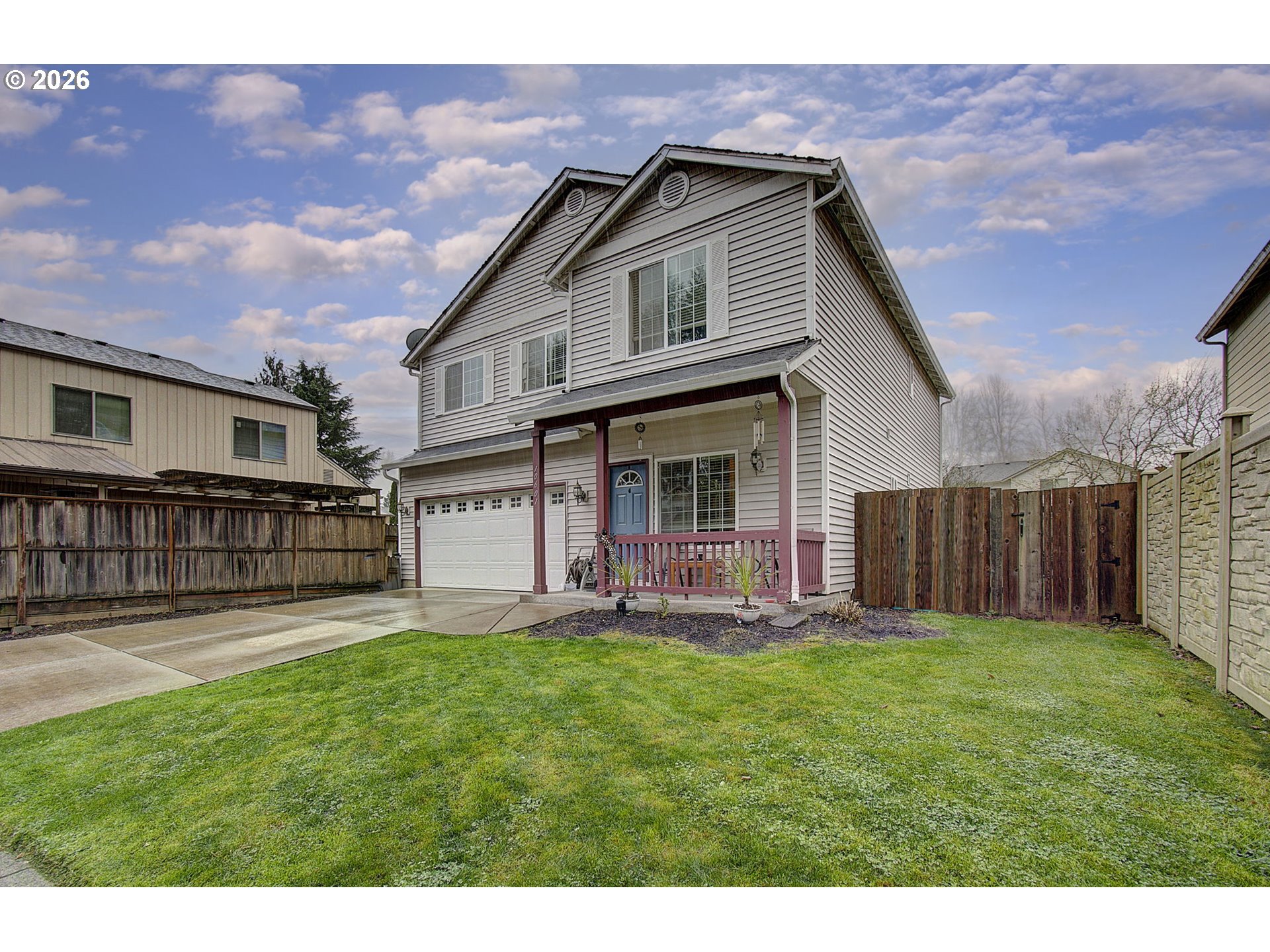 Tucked in a quiet cul de sac, this home hits the sweet spot of space, comfort, and flexibility. Bright open floor plan with high ceilings and a warm gas fireplace that anchors the main living area. The kitchen delivers with updated stainless appliances, a large island with eat bar, and room to actually live in. Upstairs you get a spacious loft plus a massive bonus room that easily functions as a fourth bedroom, office, or media space. Primary suite offers a relaxing retreat with soaking tub and walk in closet. Big updates already handled with a brand new gas furnace and AC in 2025. Fully fenced backyard with patio for easy entertaining. Clean, functional, and dialed in where it matters. Must see in person!