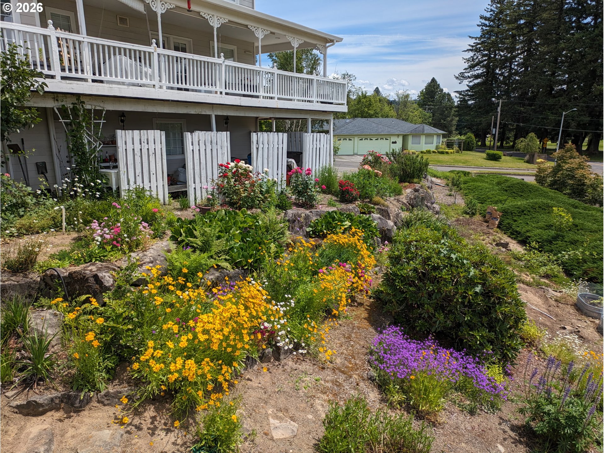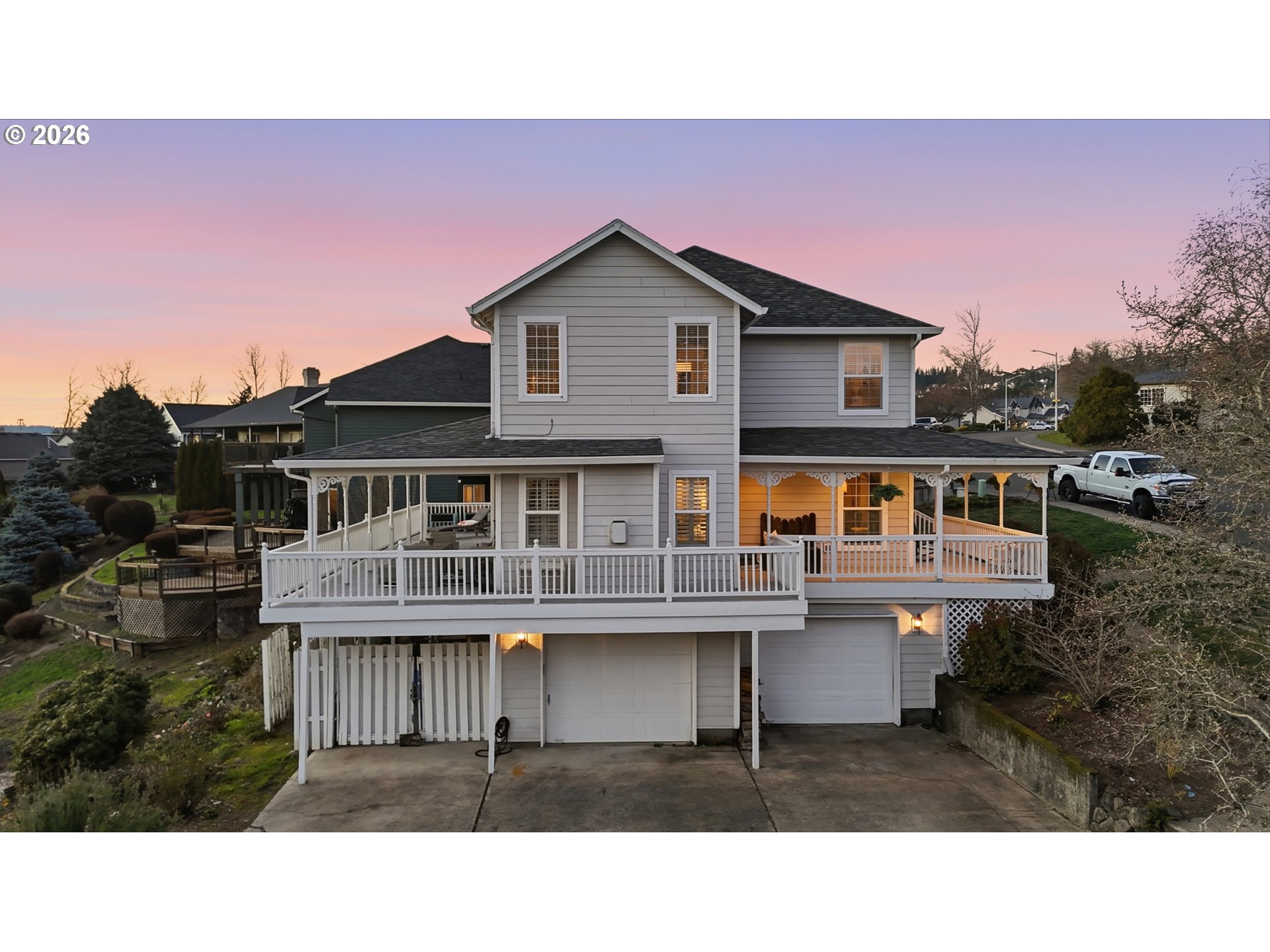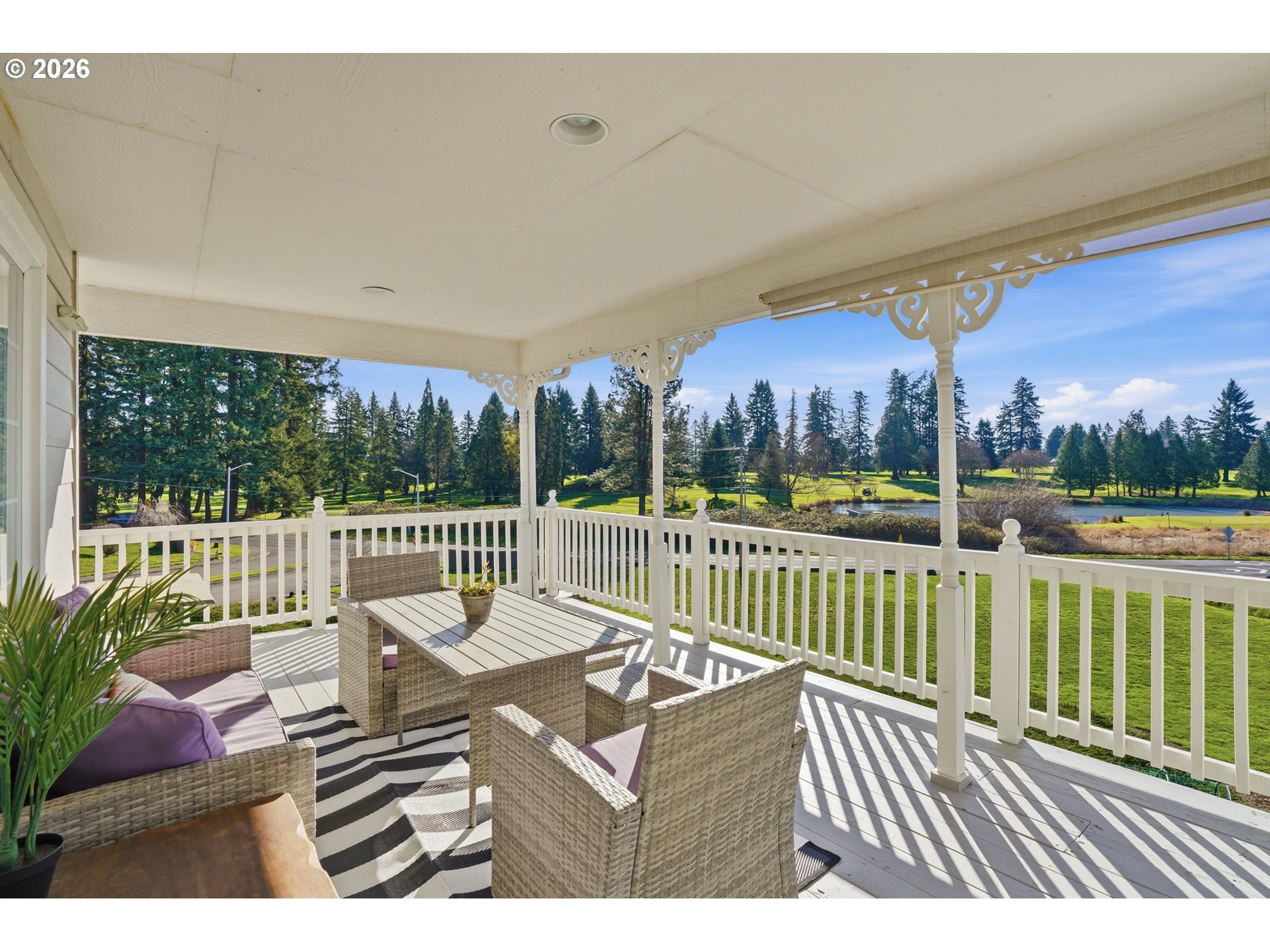 Gorgeous Victorian-style home with stunning views of the golf course and open space beyond. Enjoy a beautiful wraparound covered deck perfect for entertaining or relaxing while taking in the scenery. Pride of ownership shines throughout, with hardwood floors, a downstairs office/library with French doors, a formal dining room, and a gorgeous living room featuring a fireplace and French doors that open to the balcony and breathtaking views. Surround sound is installed both inside and out.You’ll love the remodeled kitchen, completed in 2022, offering a light and bright space with even more beautiful views. It features quartz countertops, subway tile backsplash, a ceramic farmhouse sink, newer refrigerator and dishwasher, two pantry spaces, and extra-deep drawers providing exceptional storage. Upstairs, the primary suite includes his-and-hers closets and a bonus retreat currently used as an office. The primary bathroom offers a jacuzzi tub, separate shower, and dual sinks. The third bedroom features a bonus area and a separate walk-in closet. Additional highlights include an extra-deep two-car garage, conveniently relocated washer and dryer, a one-year-old furnace and A/C system, and abundant storage throughout — including a walk-in storage area beneath the home.The outdoor space is equally impressive, with three apple trees, two pear trees, a newly planted rose garden with nine varieties, and many more flowers to enjoy throughout the seasons. A peaceful green space behind the property adds to the sense of privacy and tranquility.This Gorgoeus home will not last long.Located in a quiet, desirable neighborhood close to the golf course, shopping, and freeway access, this home offers charm, comfort, and breathtaking surroundings.