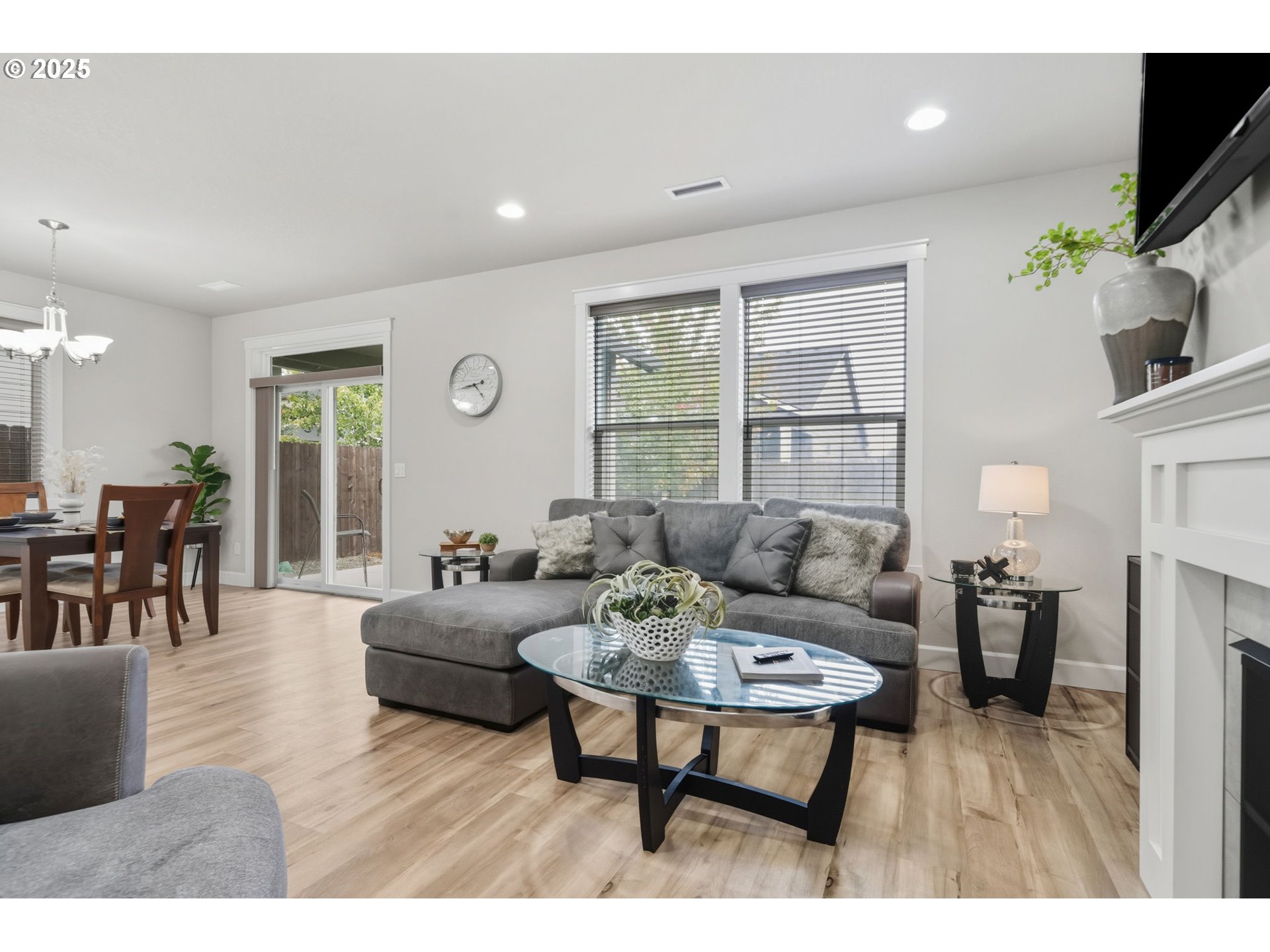 (503) 893-8874This stylish one-level has it all! Fantastic great room floor plan and fenced backyard with covered patio, set up perfectly for entertaining and indoor/outdoor enjoyment!The kitchen has a custom tile backsplash, an island with seating, a large pantry, and opens into the eating nook and living area. The slider to the backyard is right off the great room. The living area has a cozy gas fireplace with a white wood mantel, light and bright with upgraded LED bulbs, and the flooring is stylish wood-look laminate and new carpet. Close to everything, and an assumable FHA loan to help keep that rate low, too!