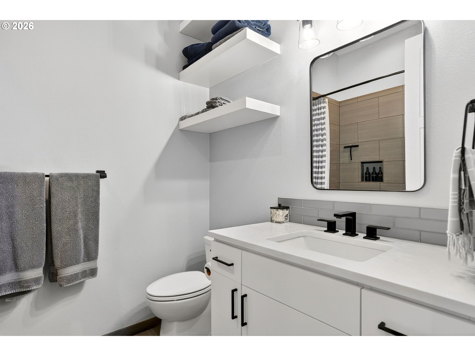 (503) 893-8874This impeccably cared-for modern classic delivers single-level living with high-end finishes from the start: 10’ ceilings, 8’ solid-core doors, and a layout that feels both polished and practical. The main living space makes a statement with vaulted ceilings, engineered hardwoods, and dramatic 9’ built-ins surrounding a gas fireplace. The kitchen is fully upgraded for everyday ease and entertaining: premium appliances, side-by-side fridge and freezer, a standalone gas cooktop, quartz counters, marble accent tile, and cabinetry that stretches to the ceiling. A walk-in pantry with a built-in wine rack plus a mudroom with bench storage keep everything streamlined and in its place. The primary suite is designed for true downtime, featuring a fully tiled shower, freestanding soaking tub, dual sinks, a private water closet, and a generous walk-in closet. With two additional bedrooms and a dedicated office, there’s room to flex for guests, hobbies, or work-from-home, especially with custom lateral built-ins and integrated power to neatly hide printers and internet equipment. The second bath keeps the elevated look going with a Duravit tub, tiled shower surround, and quartz countertops. Upstairs, a spacious bonus/flex room is ready for movie nights, a playroom, a second lounge, or whatever your life needs next. Behind the scenes, smart upgrades include a tankless water heater, water softener, and Cat5 wiring to every room. Outside, you’ll find a 13’x17’ covered patio for year-round hangouts, a full sprinkler system, and French drains along both sides of the home and below the retaining wall. The insulated garage is next level with 14’ ceilings, suspended storage racks, and plywood backing throughout, built for projects, storage, and serious functionality. And the location checks boxes, too: three nearby parks, protected wetlands, and East Fork River access, plus highly regarded schools, including a new middle school completed in 2021 and a high school skilled trades cent