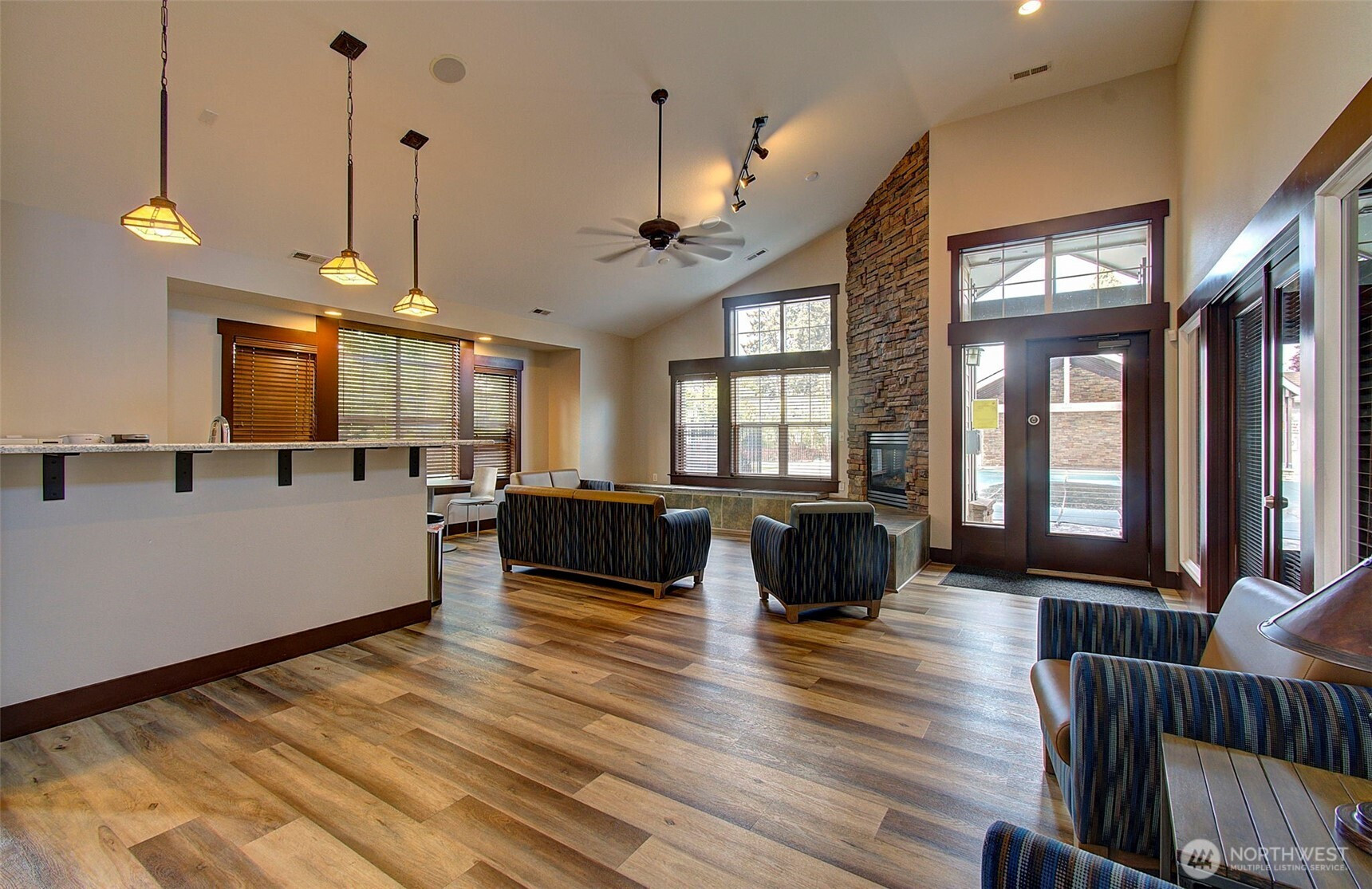 Beautiful one level stylish condo offering comfort, low maintenance living in a private and peaceful setting. This first level home features soft carpet, quartz countertops, a gorgeous marble gas fireplace and marble bathroom flooring for a touch of elegance. Relax on your back patio that overlooks a serene field with a park like feel. Enjoy abundant storage in the garage and a prime location just minutes from freeway, restaurants, shopping and entertainment. Community amenities include a pool for relaxing summer days, an equipped gym and a clubhouse perfect for hosting gatherings and celebrations.