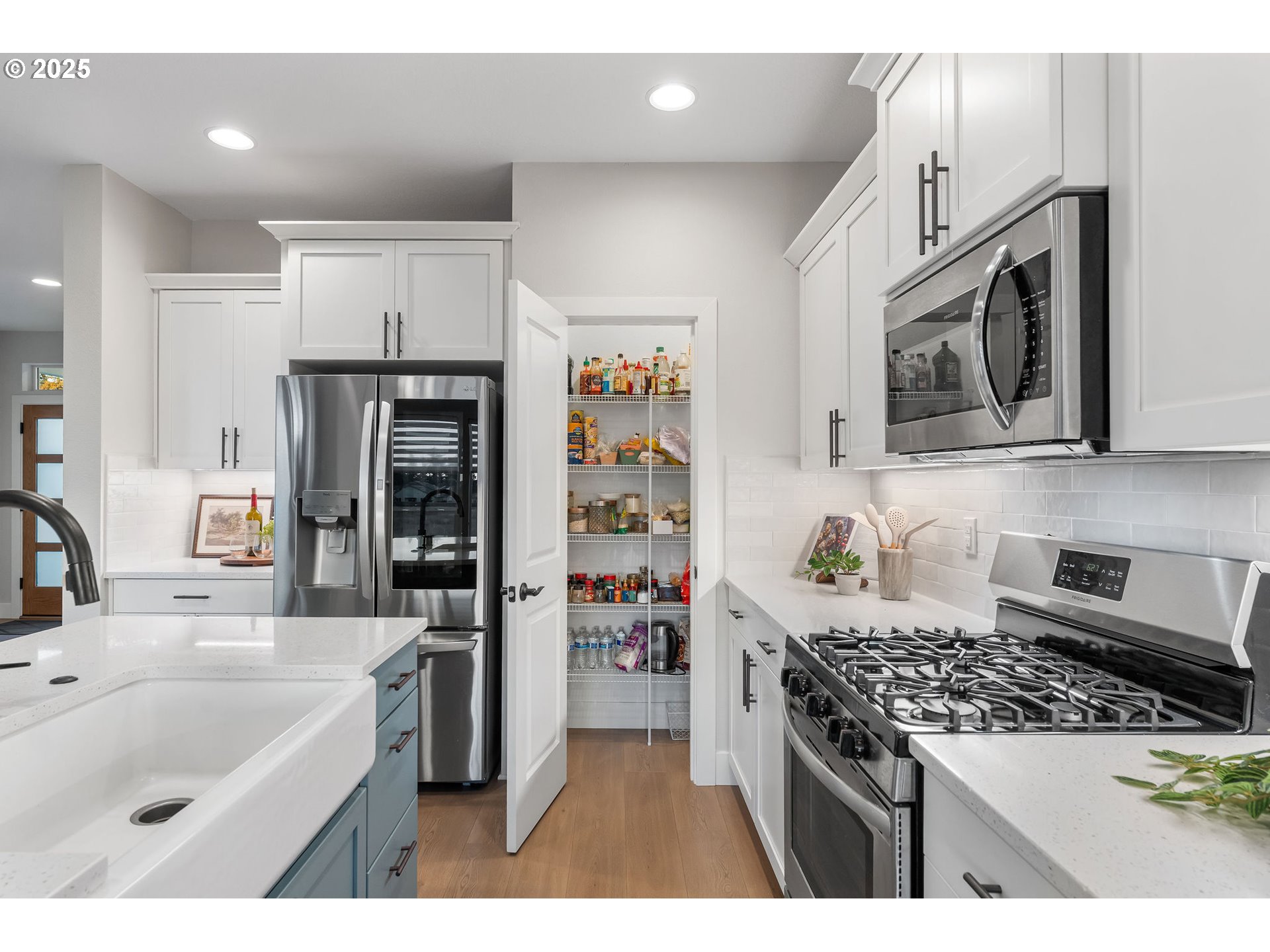 Dishwasher, Disposal, FreeStandingGasRange, Island, Microwave, Pantry, PlumbedForIceMaker, Quartz, Stainless