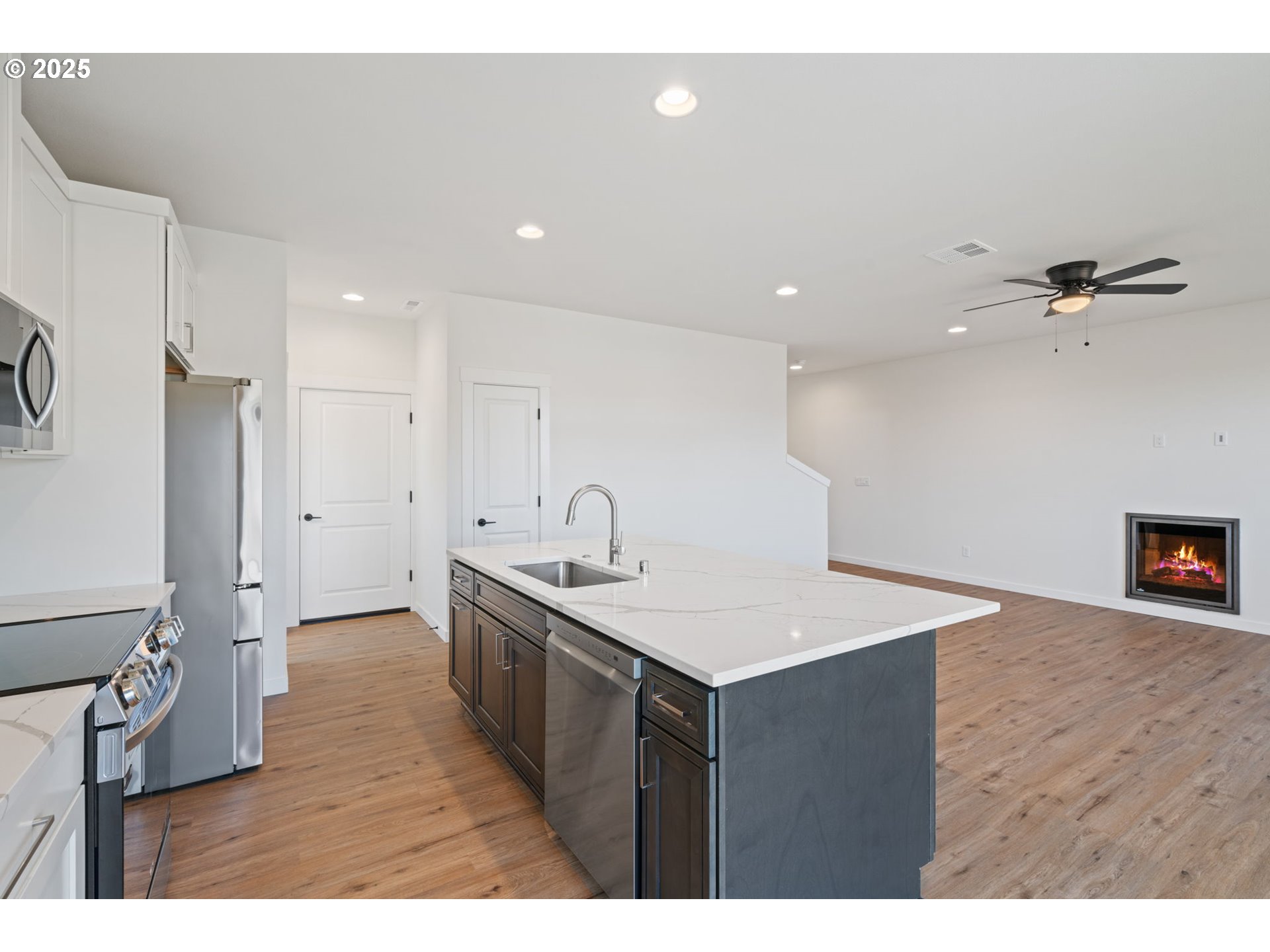 MOVE-IN-READY! ASK ABOUT OUR INCENTIVES! Welcome to your dream home in the heart of Vancouver, WA! This stunning new construction boasts 1,854 square feet of modern living space, featuring a spacious open floor plan designed for both comfort and style. Step inside to discover luxurious upgraded finishes throughout, including elegant LVP flooring on the main level. The great room is perfect for gatherings, complete with an inviting electric fireplace. The kitchen is a chef's delight, featuring an electric range, micro-hood, dishwasher, and beautiful quartz countertops, refrigerator included!! Upstairs, you'll find a convenient laundry room and a loft space with a built in desk. Relax on your covered front porch or enjoy outdoor entertaining on the patio. With three generous bedrooms and 2.5 baths, this home offers ample space for everyone. Don’t miss your chance to experience modern living in a prime location! No HOA.