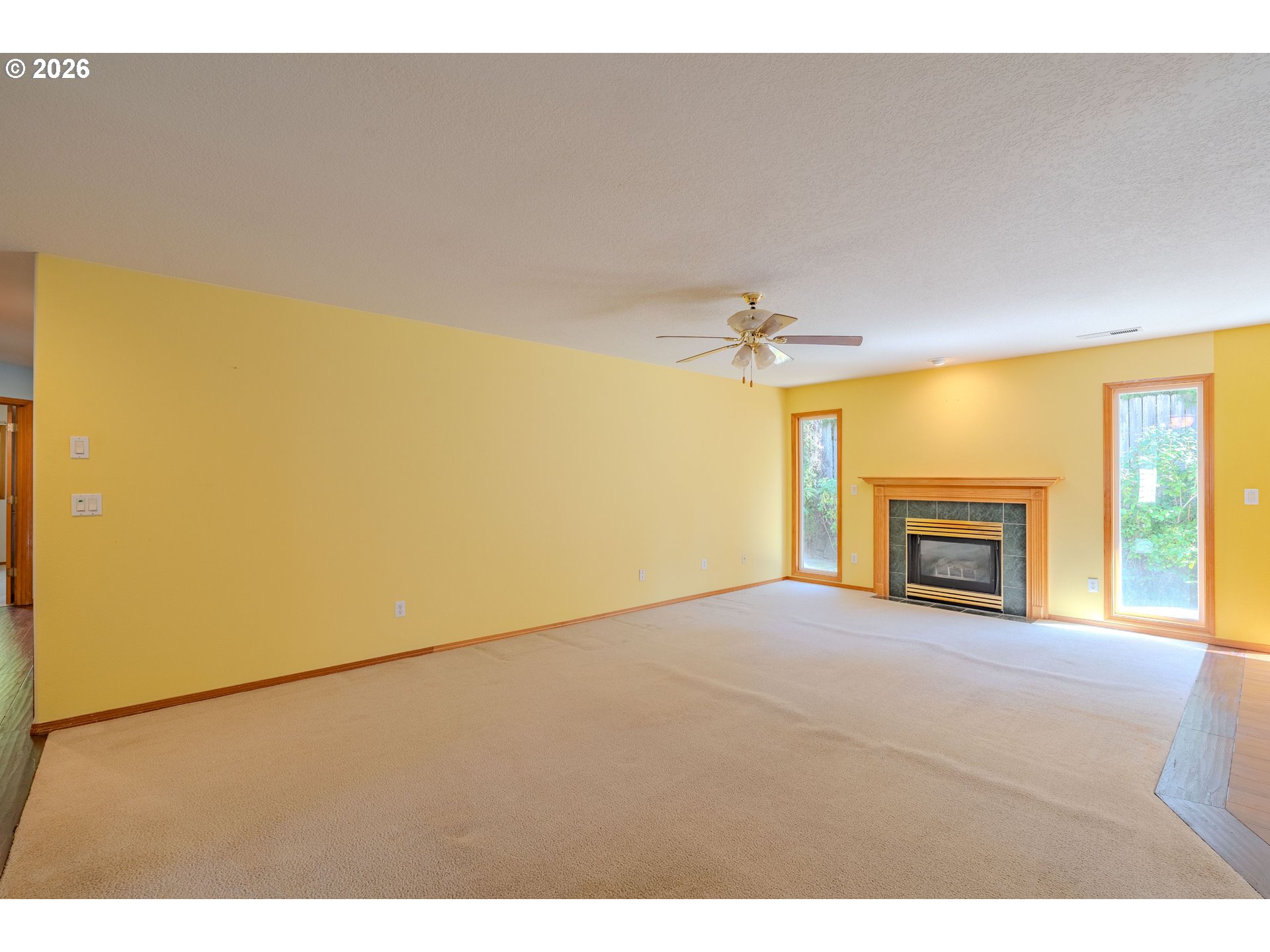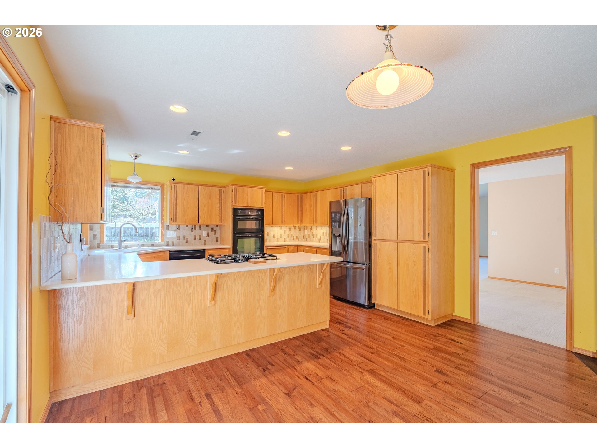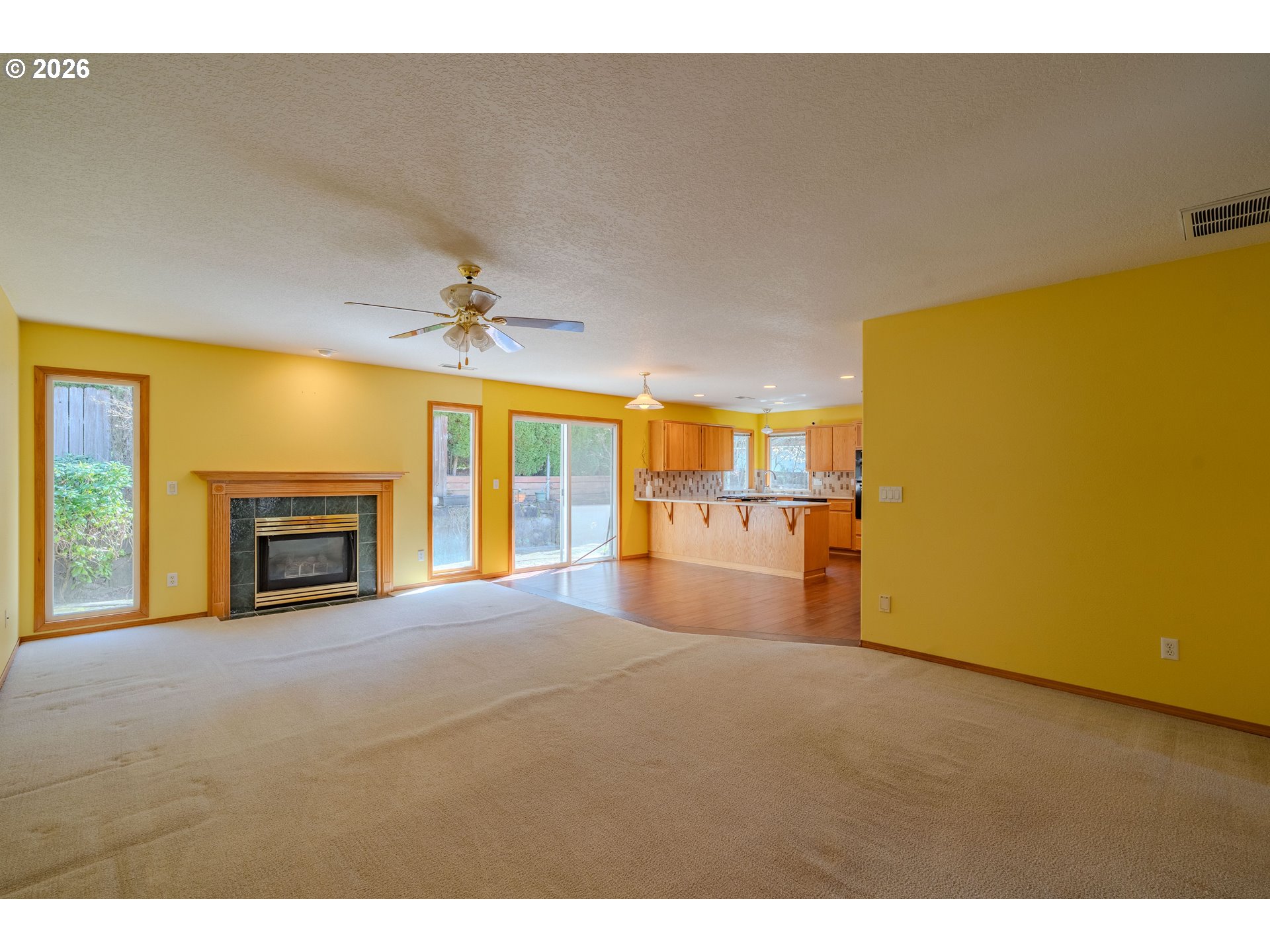 Welcome home to this beautifully designed single-level gem, perfectly situated on a desirable corner lot in a charming, well-established neighborhood! From the moment you arrive, you’ll appreciate the ideal location—just minutes from shopping, dining, parks, and everyday conveniences. Step inside to discover a thoughtfully crafted floor plan featuring 3 spacious bedrooms and 2 full bathrooms, offering both comfort and functionality. The home boasts generous living spaces, including a formal living room and dining room—perfect for entertaining or hosting gatherings. The heart of the home is the expansive U-shaped kitchen, complete with gas appliances, sleek quartz countertops, and rich hardwood flooring. Carpeted areas were just professionally cleaned. The adjoining great room provides a warm and inviting atmosphere, highlighted by a cozy gas fireplace and easy access to the backyard through sliding glass doors. Retreat to the well-appointed primary suite, a true haven with its generous size, private slider access to the backyard, and a luxurious en suite bathroom featuring quartz counters and heated tile floors—perfect for a spa-like experience year-round. Additional highlights include a massive laundry/utility room with abundant pantry storage, central vacuum system, and air conditioning to keep you comfortable in every season. With its incredible layout, quality finishes, and unbeatable location, this home offers the perfect blend of style, comfort, and convenience. Don’t miss your opportunity to make it yours!