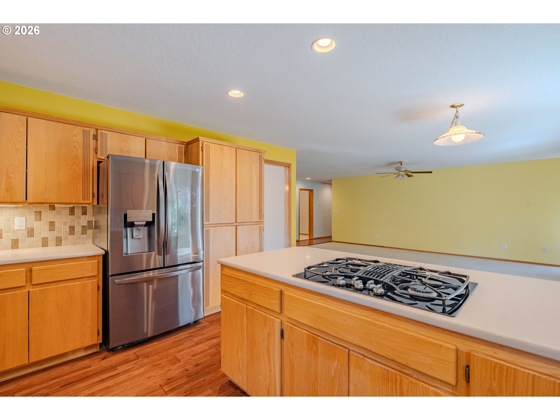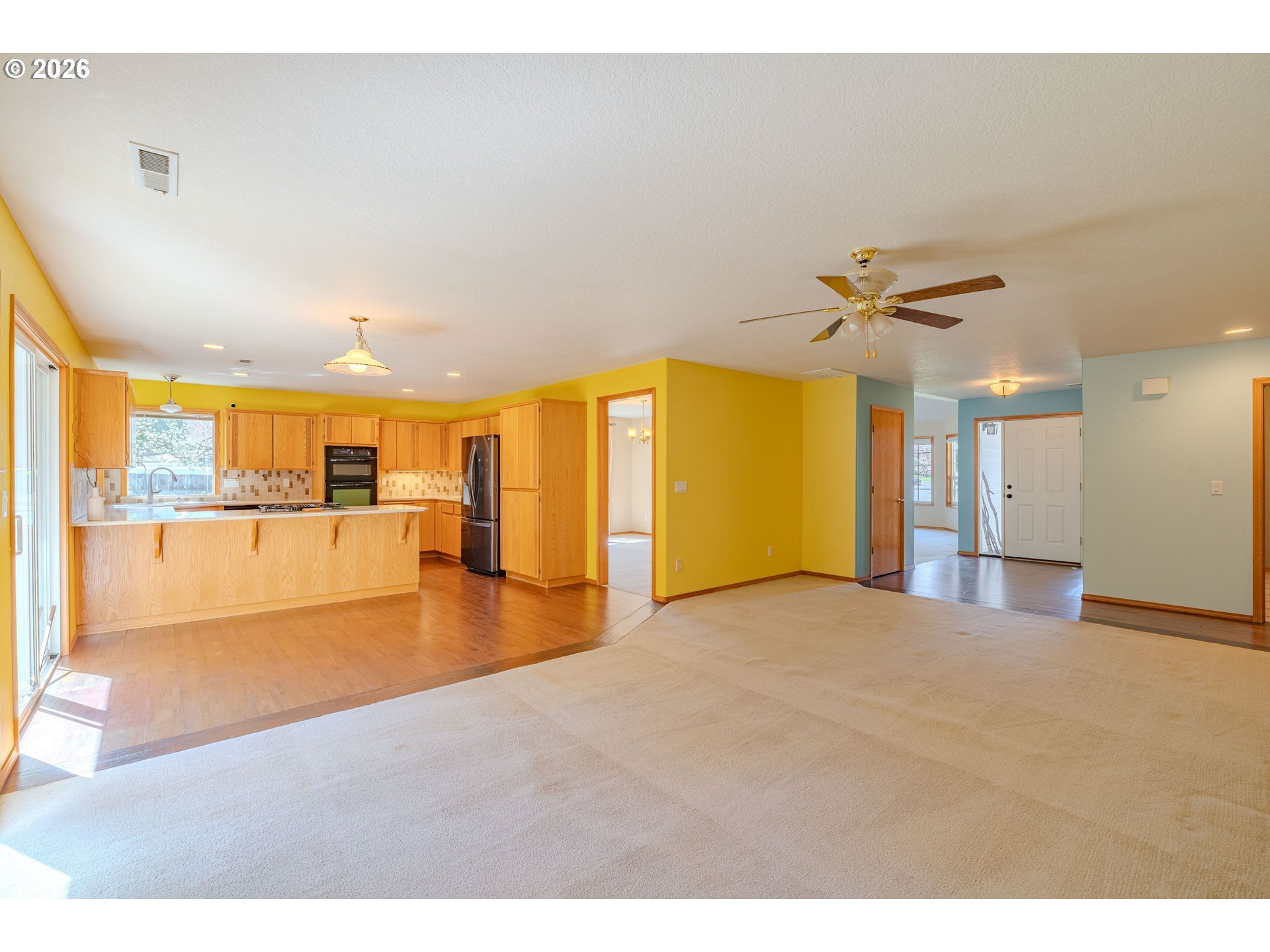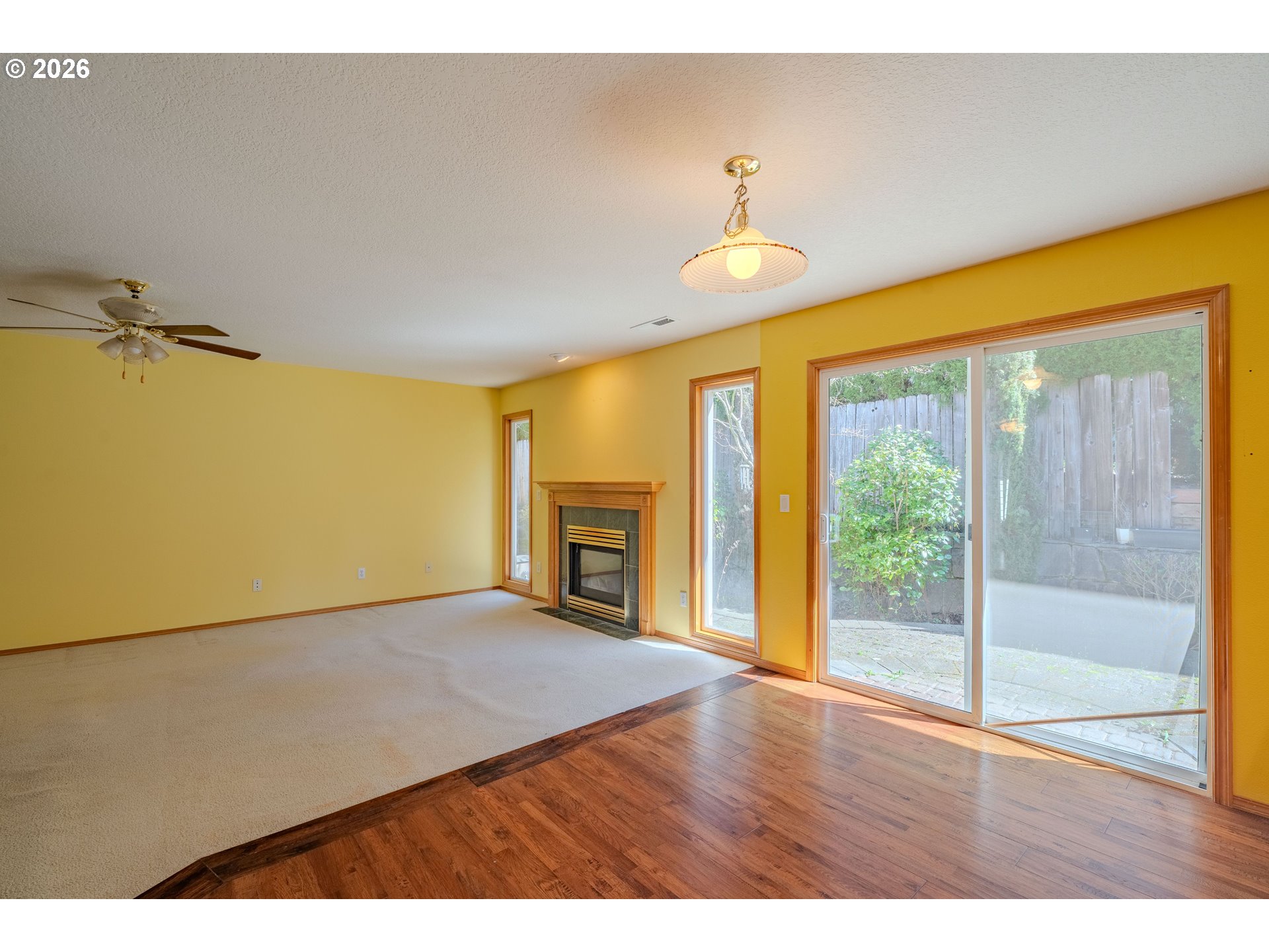 Welcome home to this beautifully designed single-level gem, perfectly situated on a desirable corner lot in a charming, well-established neighborhood! From the moment you arrive, you’ll appreciate the ideal location—just minutes from shopping, dining, parks, and everyday conveniences. Step inside to discover a thoughtfully crafted floor plan featuring 3 spacious bedrooms and 2 full bathrooms, offering both comfort and functionality. The home boasts generous living spaces, including a formal living room and dining room—perfect for entertaining or hosting gatherings. The heart of the home is the expansive U-shaped kitchen, complete with gas appliances, sleek quartz countertops, and rich hardwood flooring. Carpeted areas were just professionally cleaned. The adjoining great room provides a warm and inviting atmosphere, highlighted by a cozy gas fireplace and easy access to the backyard through sliding glass doors. Retreat to the well-appointed primary suite, a true haven with its generous size, private slider access to the backyard, and a luxurious en suite bathroom featuring quartz counters and heated tile floors—perfect for a spa-like experience year-round. Additional highlights include a massive laundry/utility room with abundant pantry storage, central vacuum system, and air conditioning to keep you comfortable in every season. With its incredible layout, quality finishes, and unbeatable location, this home offers the perfect blend of style, comfort, and convenience. Don’t miss your opportunity to make it yours!