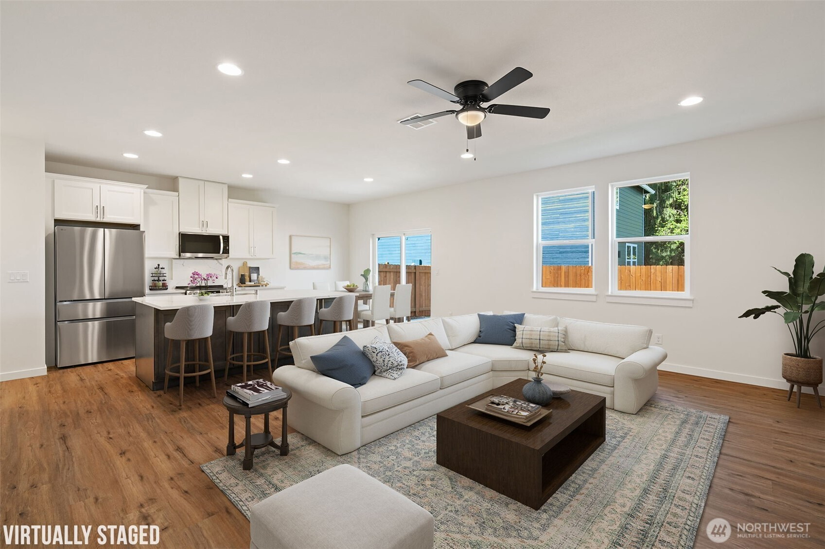 (503) 893-8874MOVE-IN-READY! Charming new homes and move in ready! 3 bed + loft, 2 1/2 baths, 2 car garage. Covered front porch, back patio. Kitchen with electric range, micro-hood, refrigerator included!!, center island, under stairs pantry/storage. Main floor has Luxury Vinyl Plank flooring for long lasting and easy maintenance. Upstairs has carpet in rooms and loft. Laundry is upstairs for convenience. Heat pump with AC, Quartz countertops, upper baths with tile. 1854 square feet, Primary Suite with french doors, double sinks, walk in shower. CC&R's but no HOA. Interior photos are of lot 2.