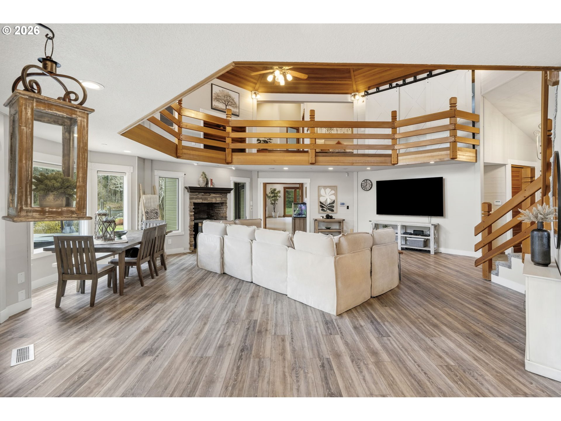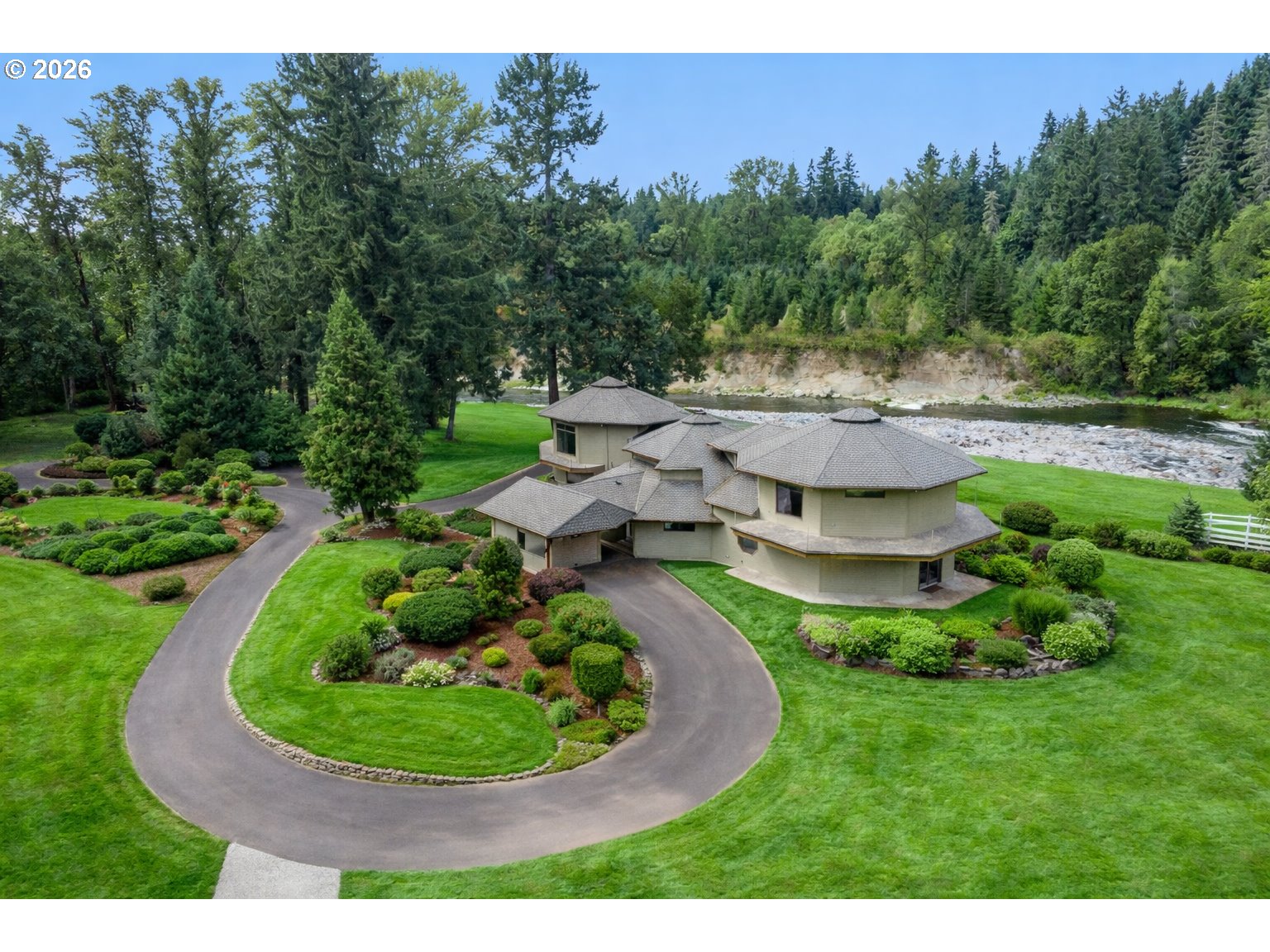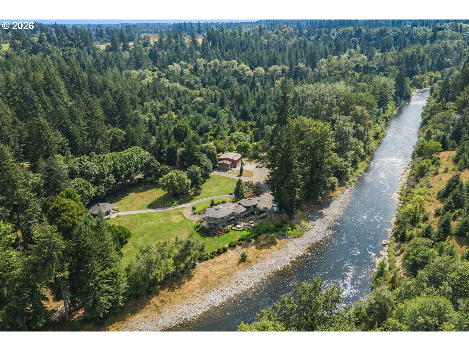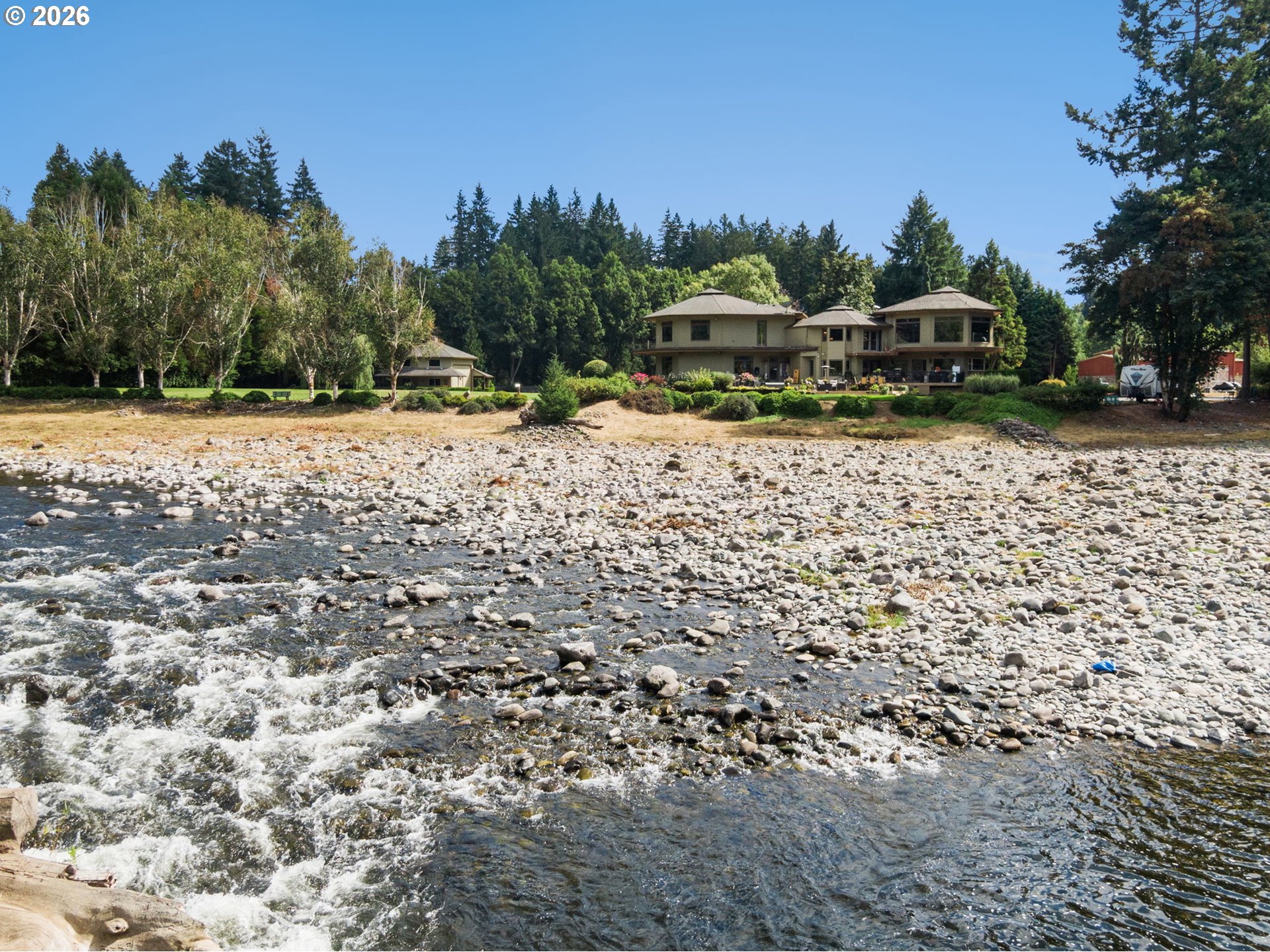 (503) 893-8874Exceptional waterfront estate on nearly 7 acres of flat, manicured, usable acreage—ideal for events, weddings, small business-partially fenced & gated with over 600 feet of breath taking river frontage, designated boat launch, and paved access just outside downtown Battle Ground, delivering a rare balance of privacy and convenience. This custom-built, legacy estate, showcases timeless craftsmanship with exposed cedar beams, vaulted ceilings, rich knotty alder finishes, expansive windows framing panoramic views, and an architectural roof.The expansive main-level primary suite lives like a private wing with double doors to the river, spa-inspired ensuite featuring heated floors, soaking tub, enclosed tile shower with multiple body sprayers, towel dryer, and expansive California Closets with stackable washer and dryer, plus hidden safe room. The open concept kitchen offers Miele built-in ovens, wine fridge, granite counters and backsplash and flows seamlessly to a wrap-around Trex deck with hot tub overlooking the water.Spacious laundry room with separate entry. Dual pantries. Upstairs includes a large bonus room with sweeping river views, office nook, two bedrooms, full bath, and steam room. The newly finished basement off, of the garage, offers media/game room space and small wine cellar.Recent updates include fresh interior paint, new carpet and pad, and newer LVP flooring.Grounds feature 836 sqft carport, 2,000 sqft heated shop(2007) with loft and separate-entry apartment with quartz counters, microwave, mini fridge, mini split, TV, full bath, water heater, and electrical. Additional 1,164 sqft detached garage with loft, electricity, and plumbing for potential second ADU (buyer to verify). Separate irrigation well, garden, apple orchard, fruit trees, and weeping willows create a private setting rich with wildlife including salmon, steelhead, deer, and beaver—offering a true Pacific Northwest lifestyle with space to gather, entertain, and create lasting experiences.