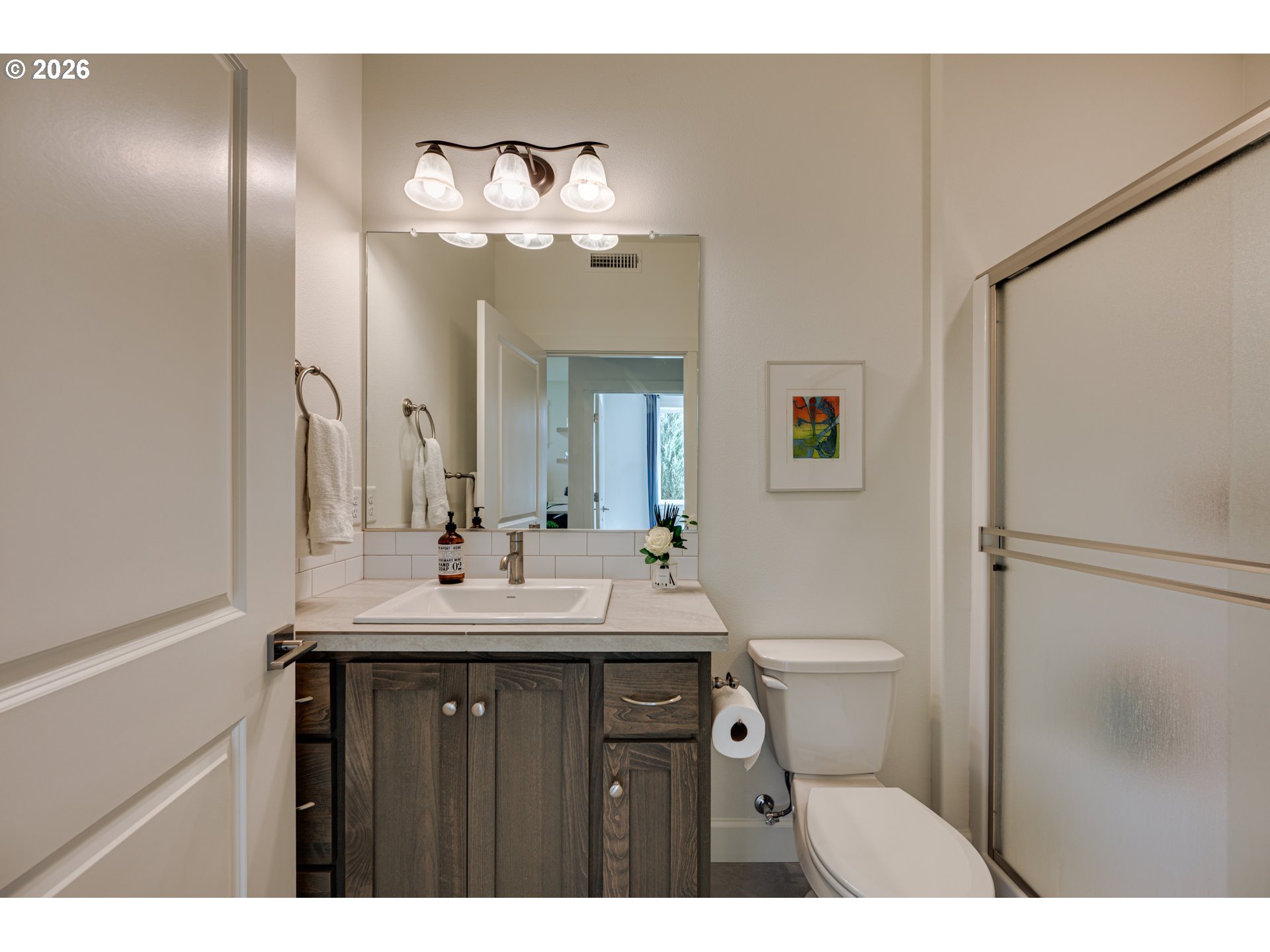 Welcome to this fabulous home nestled on a quiet street backing to serene park green space. This light-filled home offers both comfort and privacy with additional features such as dedicated office, an ideal work from home option and separate living quarters with a private entrance, perfect for guests or multi-generational living. Inside, you’ll find 9 ft ceilings and an open-concept layout designed for modern living and effortless entertaining. The kitchen is a true centerpiece, showcasing ample storage, a walk-in pantry, soft close cabinetry, gorgeous quartz countertops, and a large island with bar seating that flows seamlessly into the dining and living areas. Upstairs, a versatile bonus space provides a second living area for media room, office, or playroom. The spacious primary suite is a relaxing retreat, featuring a spa-like bathroom with dual sinks, jetted tub and a beautifully designed walk-in shower. Additional highlights include a finished three-car garage with wiring for EV charging station and several energy efficient features. Step outside to enjoy a covered patio and a professionally landscaped backyard complete with garden boxes, perfect for outdoor living and gardening. Conveniently located just minutes from I-5, this exceptional home offers an easy commute while maintaining a peaceful neighborhood setting, just waiting for you to call home. Come see it today!