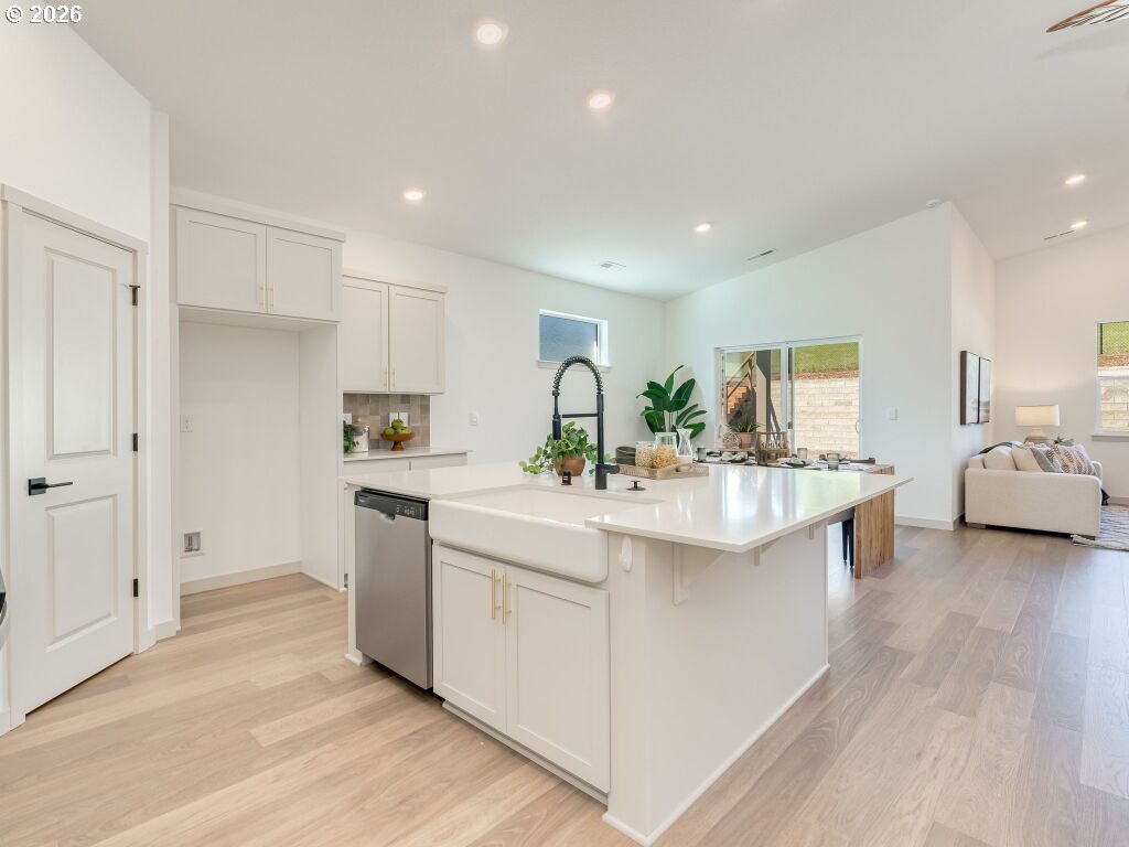 Beautiful Highland Terrace single level home now available. Enjoy cost saving incentives on a 30-year fixed with preferred lender DHI Mortgage! Step inside this ranch-style home to find an elegant modern interior with vaulted ceilings and a covered patio. Perfect for 1-level living, this cheery single-story home has 4 bedrooms, 2 bathrooms, and a 2-car garage. 2 bedrooms near the front of the home adjoin a full bathroom. The front bedroom has large windows and would make a beautiful home office. Entering the heart of the home, you’re welcomed by a stunning open great room. A chic kitchen with a large, plumbed kitchen island welcomes guests to dine. Quartz counters, tile backsplash and stainless-steel appliances add style and substance. The living room is warmed by a floor-to-ceiling shiplap fireplace. At the rear of the house, the spacious primary suite holds an attached bathroom with a double vanity and a walk-in closet. Outside, an ample fenced backyard is ready to become your sunny sanctuary. This home offers an easy commute via I-5. Fish or kayak on the Lewis River from La Center Water Trail. Highland Terrace has its own pocket park for homeowners to use as well.