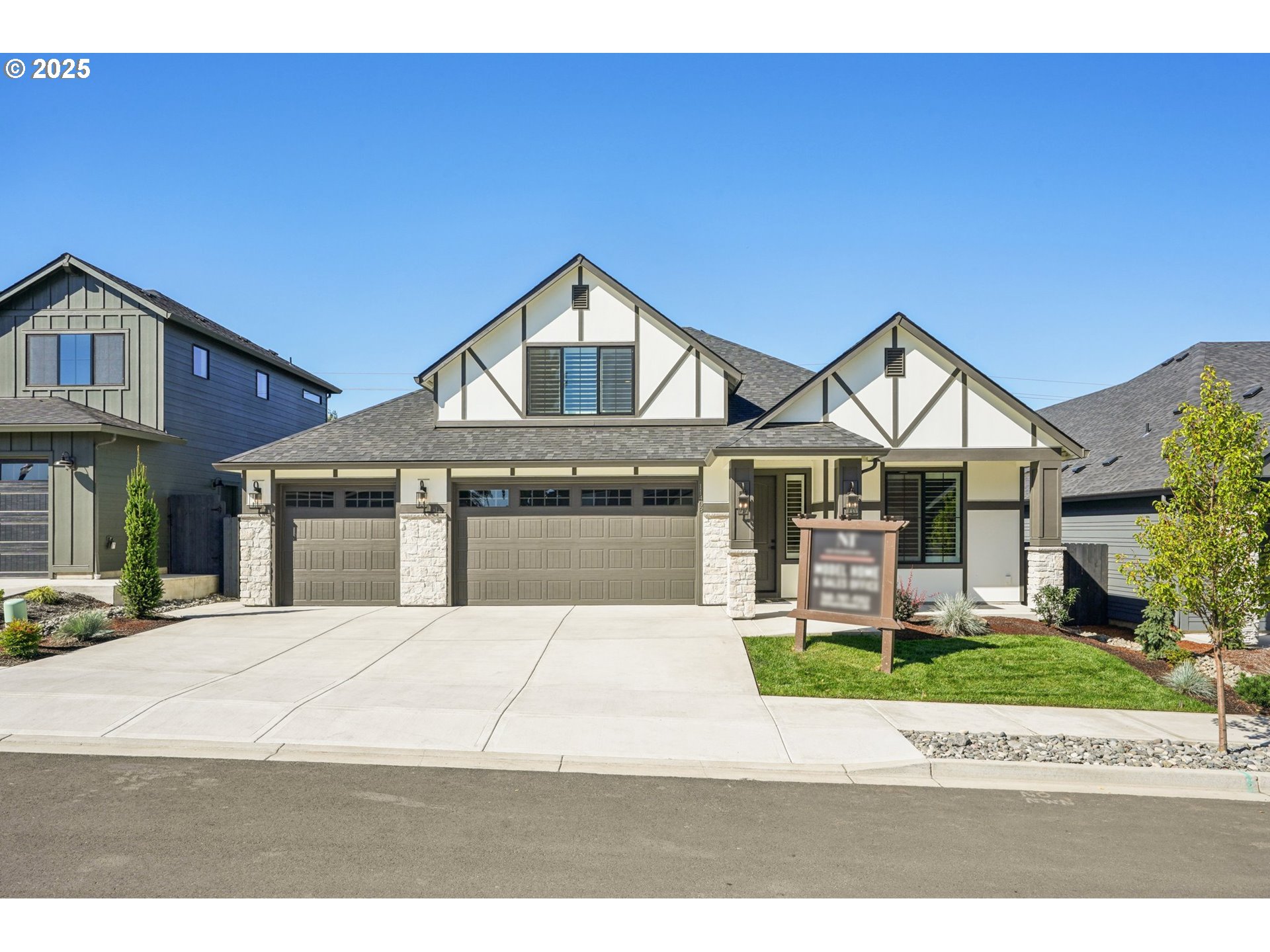 Model Home with Designer-selected, luxe finishes throughout! This desirable, one level home complete with an upstairs bonus room and 3-car garage. This spacious Willamette floorplan with European design inspiration features 3 bedrooms, 2 bathrooms, soaring 11' great room ceilings. Open concept living at it's finest with an electric fireplace featuring stone to the ceiling and built in cabinets. Kitchen features under cabinet lighting, luxury Monogram appliances & pot filler for chef inspired entertaining. Quartz throughout the home and the lavish Primary Suite features a tile walkin shower, elegant vanity & walk-in closet. Custom window coverings included. Central Vac included. This home has a covered back patio with modern concrete design for outdoor living. Fully fenced, front & back sprinklers and landscaping with plenty of NW shrubs. On select homes, incentives are available for a limited time. Use of preferred lenders can trigger maximum incentives. This home is all electric & Energy Star NextGen certified by a 3rd party. Included 2 yr builder warranty + 2-10 Home Buyer Warranty that gives you peace of mind for years to come!