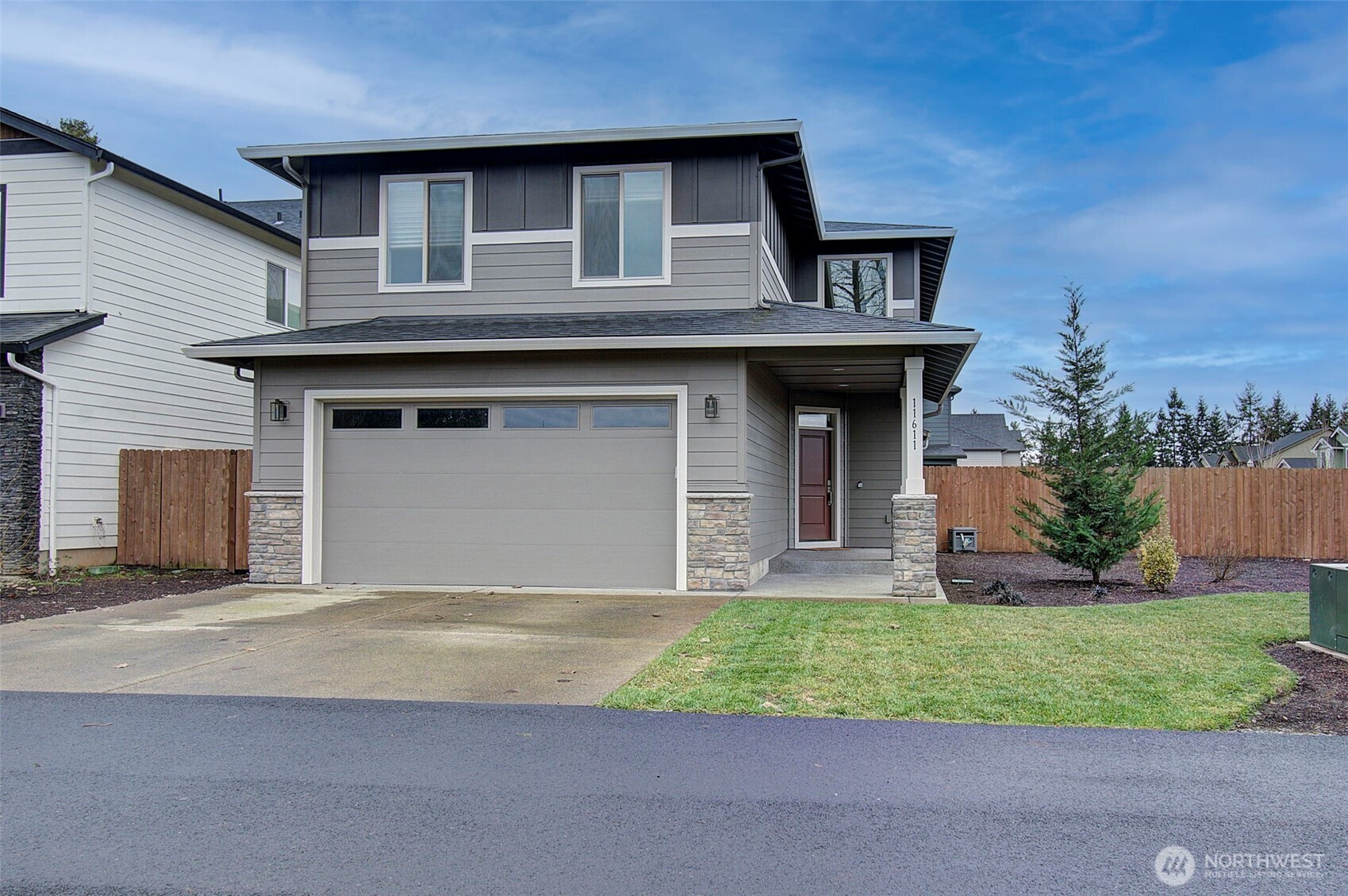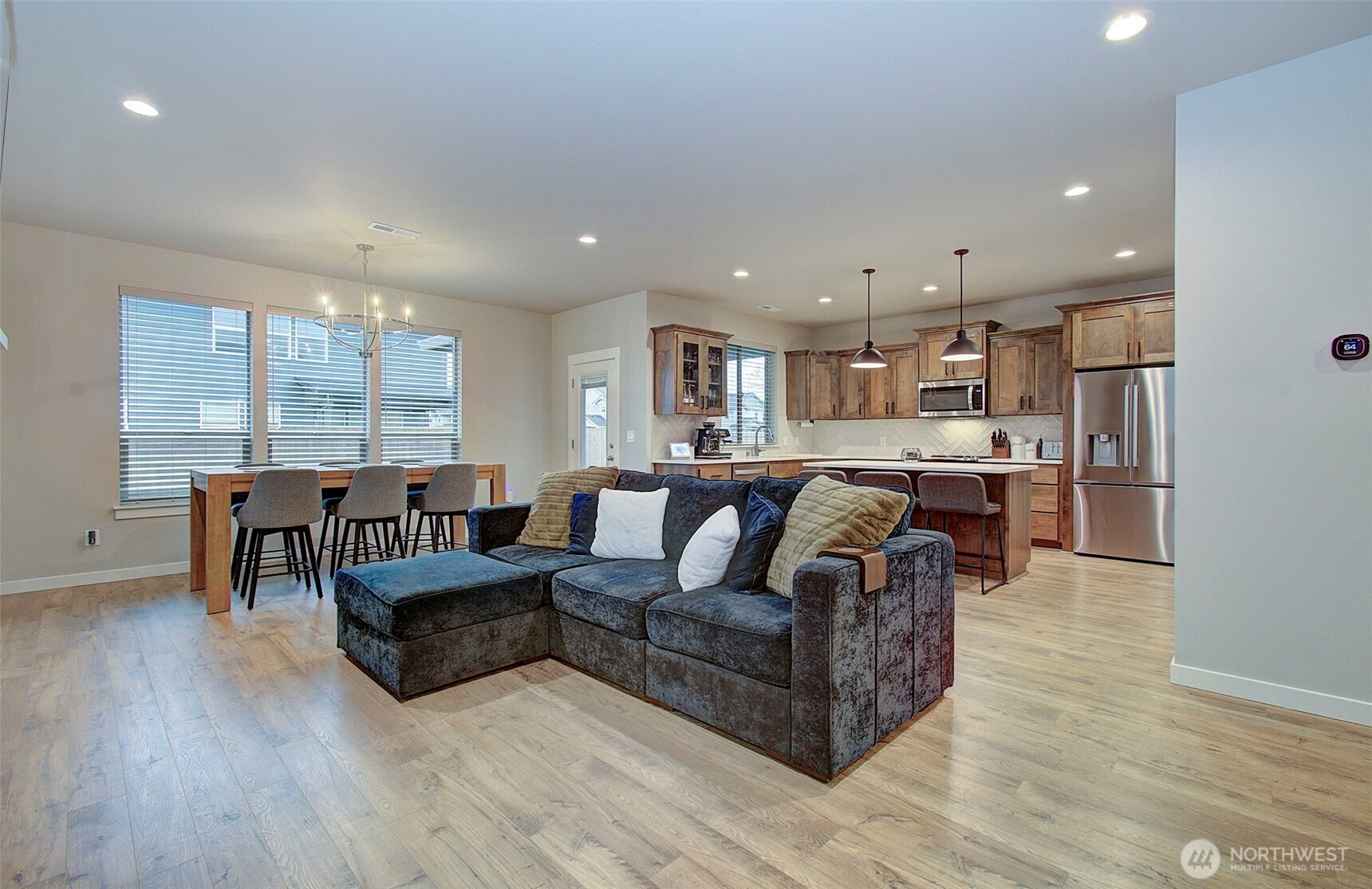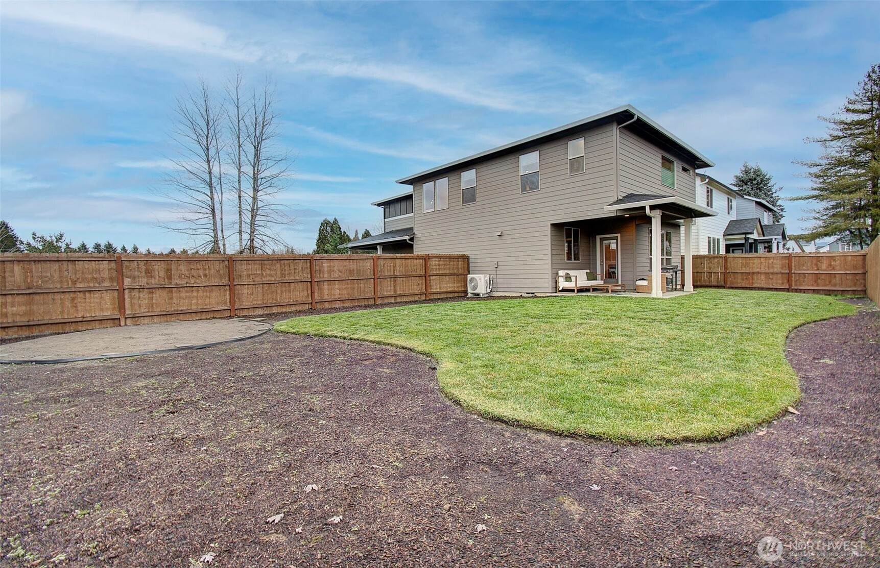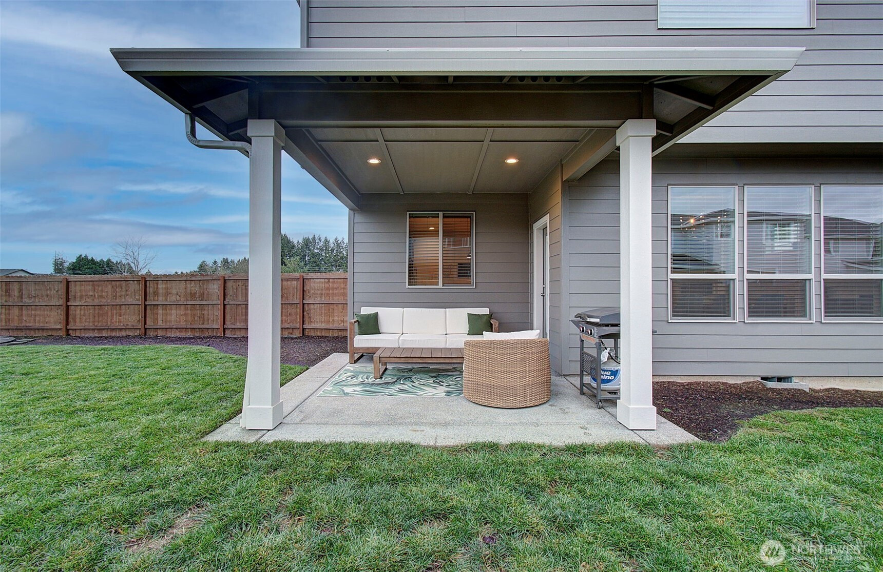 2024 build on large double corner lot near greenspace and open field. 2,295 sf with 4 bedrooms & main-floor den with French doors and 2 full baths. Quartz island kitchen with pantry, soft-close cabinets, stainless appliances and refrigerator included. Great room opens to a 13x11 covered patio and oversized fenced yard with sprinklers and above-ground pool negotiable. Primary suite features custom walk-in closet, soaking tub and walk-in shower. Washer and dryer included. Heat pump with AC, smart thermostat, luxury vinyl plank floors and finished 2-car garage. Enjoy modern finishes and plenty of smart storage. Nearly .30ac, min to shopping and schools in quiet Brush Prairie. Structural builder warranty believed transferable (buyer to verify).